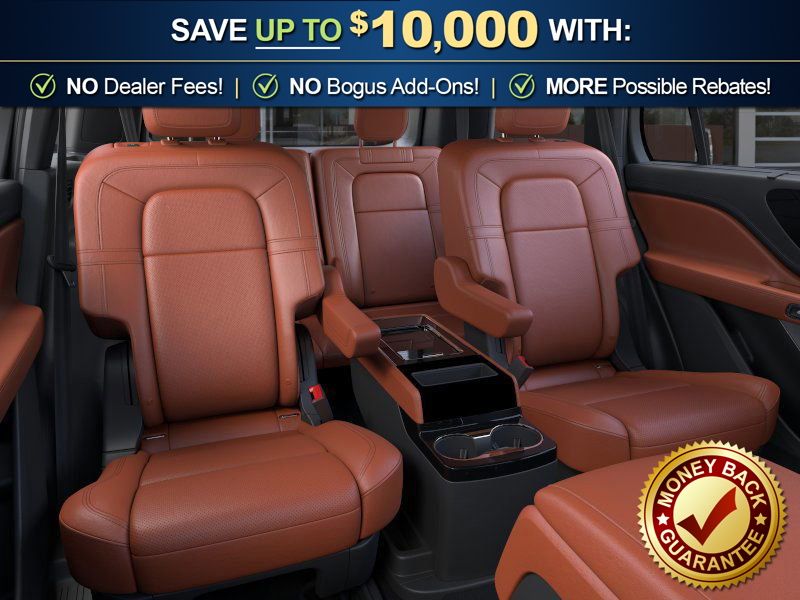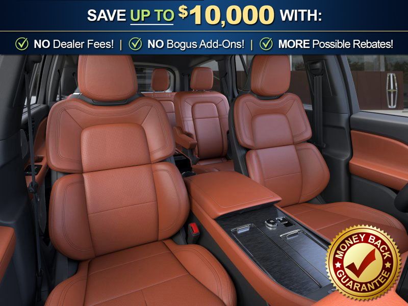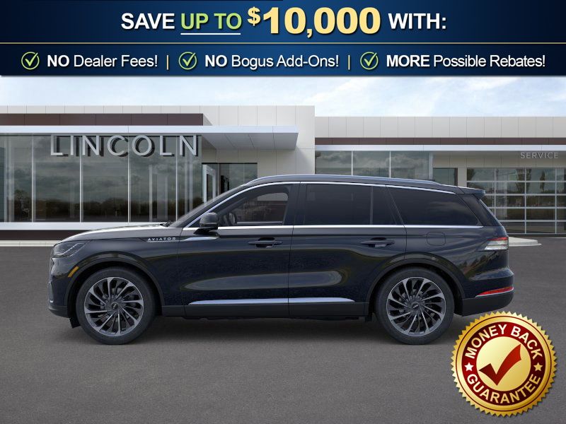 Infinite Black Metallic Clearcoat 2026 Lincoln Aviator Reserve NLT AWD 10-Speed Automatic 3.0L V6 14 Speakers, 3rd row seats: split-bench, 4-Wheel Disc Brakes, 40/Mini Console/40 Dual Captain's Chairs, ABS brakes, Adaptive suspension, Air Conditioning, Alloy wheels, AM/FM radio: SiriusXM, Apple CarPlay/Android Auto, Audio memory, Auto Heated and Ventilated Driver and Passenger Seats, Auto High-beam Headlights, Auto-dimming door mirrors, Auto-dimming Rear-View mirror, Automatic temperature control, Brake assist, Bumpers: body-color, Compass, Delay-off headlights, Driver door bin, Driver vanity mirror, Dual front impact airbags, Dual front side impact airbags, Electronic Stability Control, Emergency communication system: 911 Assist, Four wheel independent suspension, Front anti-roll bar, Front Bucket Seats, Front Center Armrest, Front dual zone A/C, Front reading lights, Full Rear Console, Fully automatic headlights, Garage door transmitter, Genuine wood console insert, Genuine wood dashboard insert, Heads-Up Display, Heated door mirrors, Heated front seats, Heated steering wheel, HVAC memory, Illuminated entry, Knee airbag, Leather steering wheel, Lincoln App, Lincoln BlueCruise Equipped (4-Years Included), Lincoln Connectivity Package (4-Years), Lincoln Digital Experience, Low tire pressure warning, Memory seat, Navigation system: Google Maps, Occupant sensing airbag, Outside temperature display, Overhead airbag, Overhead console, Panic alarm, Passenger door bin, Passenger vanity mirror, Power door mirrors, Power driver seat, Power Liftgate, Power moonroof: Panoramic Vista Roof, Power passenger seat, Power steering, Power windows, Premium Leather Front Captain's Chairs, Radio data system, Radio: Revel Audio System with 14 Speakers, Rain sensing wipers, Rear air conditioning, Rear anti-roll bar, Rear audio controls, Rear dual zone A/C, Rear reading lights, Rear window defroster, Rear window wiper, Remote keyless entry, Security system, SiriusXM, Speed control, Speed-Sensitive Wipers, Split folding rear seat, Spoiler, Steering wheel memory, Steering wheel mounted A/C controls, Steering wheel mounted audio controls, Tachometer, Telescoping steering wheel, Tilt steering wheel, Traction control, Trip computer, Turn signal indicator mirrors, Variably intermittent wipers, Ventilated front seats, Wheels: 21" Bright-Machined Aluminum with Dark Alloy Painted Pockets, Wireless Charging Pad.