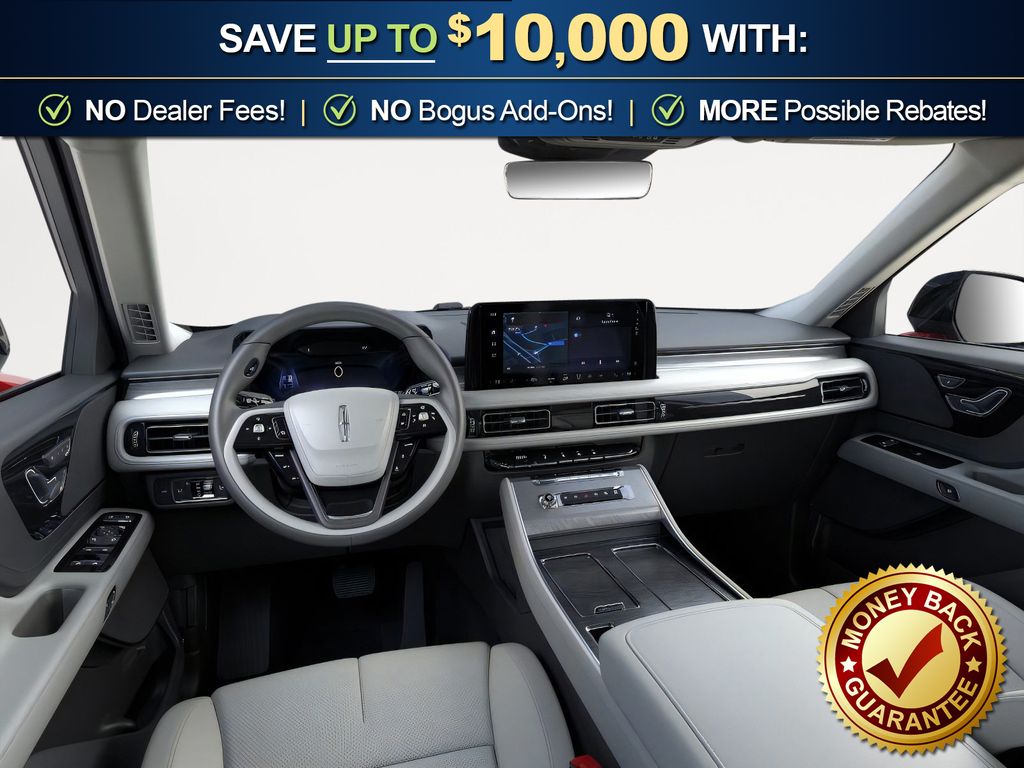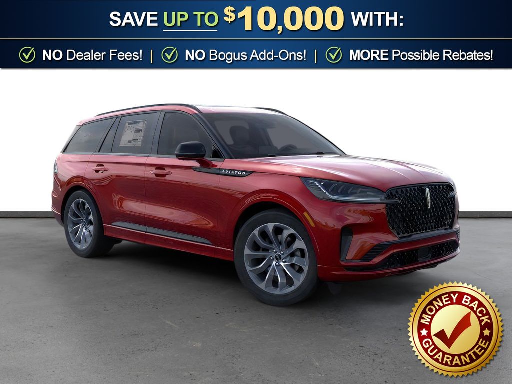 Red Carpet Tinted Clearcoat 2026 Lincoln Aviator Premiere FCT RWD 10-Speed Automatic 3.0L V6 10 Speakers, 3rd row seats: split-bench, 4-Wheel Disc Brakes, ABS brakes, Adaptive suspension, Air Conditioning, Alloy wheels, AM/FM radio: SiriusXM, Apple CarPlay/Android Auto, Audio memory, Auto High-beam Headlights, Auto-dimming door mirrors, Auto-dimming Rear-View mirror, Automatic temperature control, Black Exterior Elements, Body-Color Exterior Elements, Brake assist, Bumpers: body-color, Compass, Delay-off headlights, Driver door bin, Driver vanity mirror, Dual front impact airbags, Dual front side impact airbags, Electronic Stability Control, Emergency communication system: 911 Assist, Four wheel independent suspension, Front anti-roll bar, Front Bucket Seats, Front Center Armrest, Front dual zone A/C, Front reading lights, Fully automatic headlights, Garage door transmitter, Heated door mirrors, Heated front seats, Heated steering wheel, HVAC memory, Illuminated entry, Jet Appearance Package, Knee airbag, Leather steering wheel, Lincoln BlueCruise Equipped (4-Years Included), Lincoln Digital Experience, Low tire pressure warning, Memory seat, Navigation System, Occupant sensing airbag, Outside temperature display, Overhead airbag, Overhead console, Panic alarm, Passenger door bin, Passenger vanity mirror, Power door mirrors, Power driver seat, Power Liftgate, Power passenger seat, Power steering, Power windows, Radio data system, Rain sensing wipers, Rear air conditioning, Rear anti-roll bar, Rear audio controls, Rear reading lights, Rear window defroster, Rear window wiper, Remote keyless entry, Security system, SiriusXM, Speed control, Speed-Sensitive Wipers, Split folding rear seat, Spoiler, Steering wheel mounted A/C controls, Steering wheel mounted audio controls, Tachometer, Telescoping steering wheel, Tilt steering wheel, Traction control, Trip computer, Turn signal indicator mirrors, Variably intermittent wipers, Wheels: 20" Magnetic Bright-Machined Aluminum.