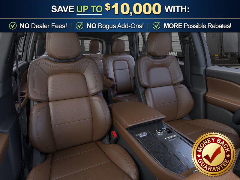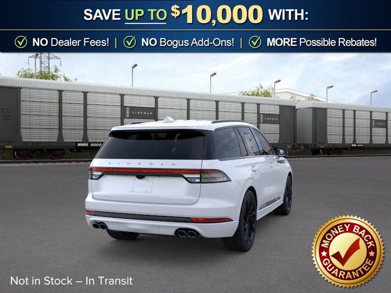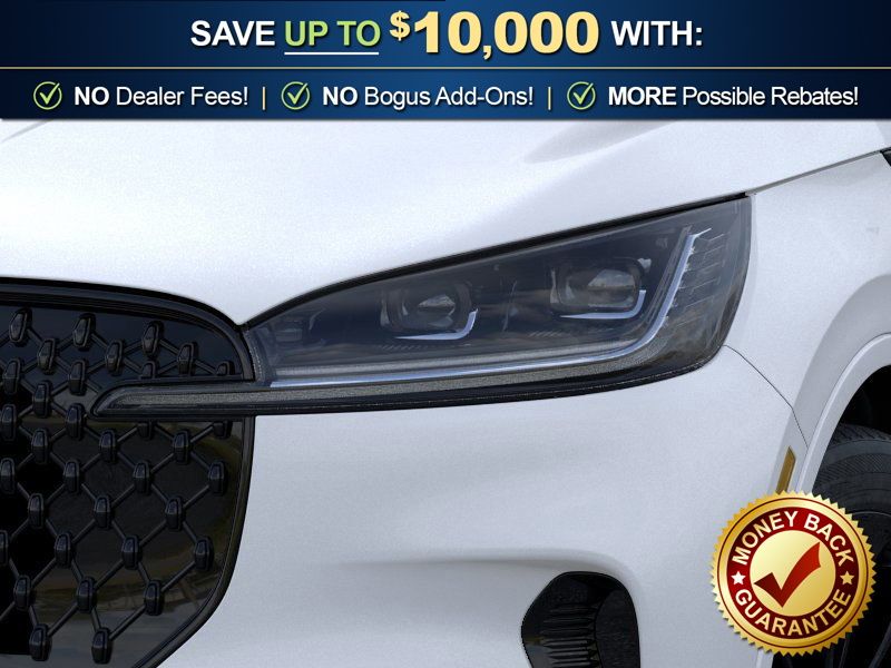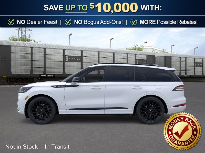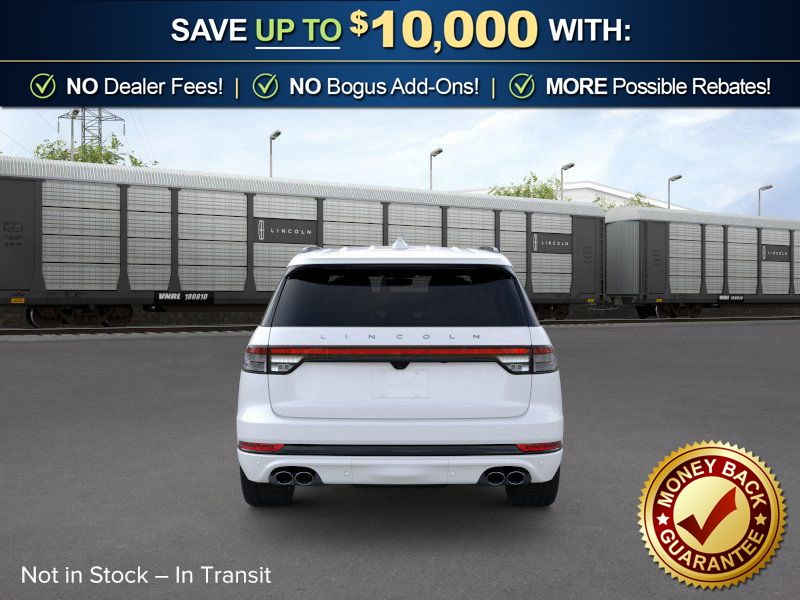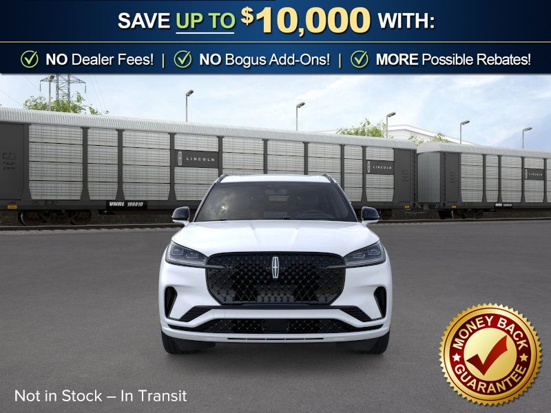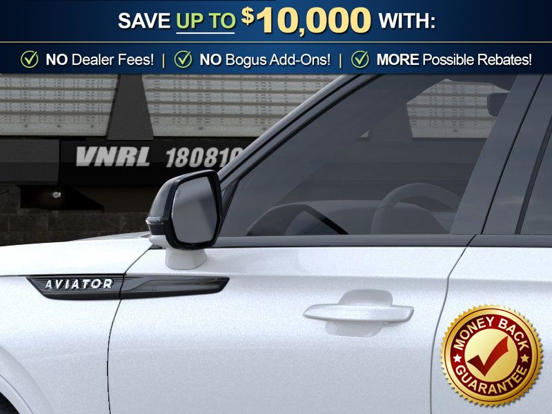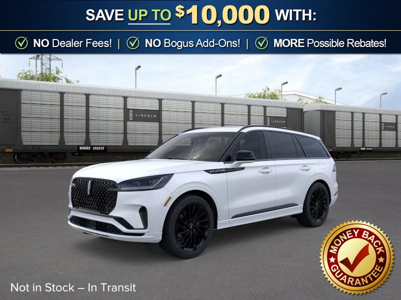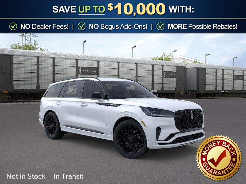 Pristine White Metallic Tri-Coat 2026 Lincoln Aviator Reserve NLT AWD 10-Speed Automatic 3.0L V6 14 Speakers, 3rd row seats: split-bench, 4-Wheel Disc Brakes, 40/Mini Console/40 Dual Captain's Chairs, ABS brakes, Adaptive suspension, Air Conditioning, Air Glide Suspension with Dynamic Lower Entry, Alloy wheels, AM/FM radio: SiriusXM, Apple CarPlay/Android Auto, Audio memory, Auto Heated and Ventilated Driver and Passenger Seats, Auto High-beam Headlights, Auto-dimming door mirrors, Auto-dimming Rear-View mirror, Automatic temperature control, Black Exterior Elements, Body-Color Exterior Elements, Brake assist, Bumpers: body-color, Compass, Delay-off headlights, Driver door bin, Driver vanity mirror, Dual front impact airbags, Dual front side impact airbags, Dynamic Handling Package, Electronic Stability Control, Emergency communication system: 911 Assist, Four wheel independent suspension, Front anti-roll bar, Front Bucket Seats, Front Center Armrest, Front dual zone A/C, Front reading lights, Fully automatic headlights, Garage door transmitter, Genuine wood console insert, Genuine wood dashboard insert, Heads-Up Display, Heated door mirrors, Heated front seats, Heated steering wheel, HVAC memory, Illuminated entry, Jet Appearance Package, Knee airbag, Leather steering wheel, Lincoln App, Lincoln BlueCruise Equipped (4-Years Included), Lincoln Connectivity Package (4-Years), Lincoln Digital Experience, Low tire pressure warning, Memory seat, Navigation system: Google Maps, Occupant sensing airbag, Outside temperature display, Overhead airbag, Overhead console, Panic alarm, Passenger door bin, Passenger vanity mirror, Power door mirrors, Power driver seat, Power Liftgate, Power moonroof: Panoramic Vista Roof, Power passenger seat, Power steering, Power windows, Premium Leather Front Captain's Chairs, Radio data system, Radio: Revel Audio System with 14 Speakers, Rain sensing wipers, Rear air conditioning, Rear anti-roll bar, Rear audio controls, Rear dual zone A/C, Rear reading lights, Rear window defroster, Rear window wiper, Remote keyless entry, Security system, SiriusXM, Speed control, Speed-Sensitive Wipers, Split folding rear seat, Spoiler, Steering wheel memory, Steering wheel mounted A/C controls, Steering wheel mounted audio controls, Tachometer, Telescoping steering wheel, Tilt steering wheel, Traction control, Trip computer, Turn signal indicator mirrors, Variably intermittent wipers, Ventilated front seats, Wheels: 21" Bright-Machined Aluminum with Dark Alloy Painted Pockets, Wheels: 22" Black Aluminum, Wireless Charging Pad.