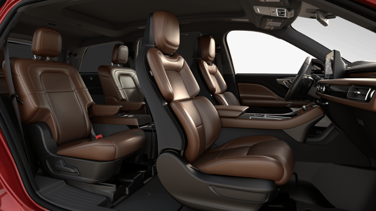 Red Carpet Tinted Clearcoat 2026 Lincoln Aviator Reserve NLT AWD 10-Speed Automatic 3.0L V6 14 Speakers, 3rd row seats: split-bench, 4-Wheel Disc Brakes, 40/Mini Console/40 Dual Captain's Chairs, ABS brakes, Adaptive suspension, Advanced Heads-Up Display, Air Conditioning, Air Glide Suspension w/Dynamic Lower Entry, Alloy wheels, AM/FM radio: SiriusXM, Apple CarPlay/Android Auto, Audio memory, Auto Air Refresh, Auto High-beam Headlights, Auto-dimming door mirrors, Auto-dimming Rear-View mirror, Automatic temperature control, Black Exterior Elements, Body-Color Exterior Elements, Brake assist, Bumpers: body-color, Compass, Delay-off headlights, Driver door bin, Driver vanity mirror, Dual front impact airbags, Dual front side impact airbags, Dynamic Handling Package, Electronic Stability Control, Emergency communication system: 911 Assist, Exterior Parking Camera Rear, Four wheel independent suspension, Front anti-roll bar, Front Bucket Seats, Front Center Armrest, Front dual zone A/C, Front reading lights, Full Rear Console, Fully automatic headlights, Garage door transmitter, Genuine wood console insert, Genuine wood dashboard insert, Heads-Up Display, Heated door mirrors, Heated front seats, Heated steering wheel, HVAC memory, Illuminated entry, Jet Appearance Package, Knee airbag, Leather steering wheel, Lincoln BlueCruise Equipped (4-Years Included), Lincoln Connectivity Package (4-years included), Lincoln Digital Experience, Low tire pressure warning, Memory seat, Navigation System, Occupant sensing airbag, Outside temperature display, Overhead airbag, Overhead console, Panic alarm, Passenger door bin, Passenger vanity mirror, Power door mirrors, Power driver seat, Power Liftgate, Power moonroof: Panoramic Vista Roof, Power passenger seat, Power steering, Power windows, Premium Lthr Heated/Ventilated Fnt Captain's Chairs, Radio data system, Radio: Revel Audio System w/14 Speakers, Rain sensing wipers, Rear air conditioning, Rear anti-roll bar, Rear audio controls, Rear dual zone A/C, Rear reading lights, Rear window defroster, Rear window wiper, Remote keyless entry, Security system, SiriusXM, Speed control, Speed-Sensitive Wipers, Split folding rear seat, Spoiler, Steering wheel memory, Steering wheel mounted A/C controls, Steering wheel mounted audio controls, Tachometer, Telescoping steering wheel, Tilt steering wheel, Traction control, Trip computer, Turn signal indicator mirrors, Variably intermittent wipers, Ventilated front seats, Wheels: 21" Bright-Machined Aluminum, Wheels: 22" Black Aluminum w/Adaptive Suspension, Wireless Charging Pad.