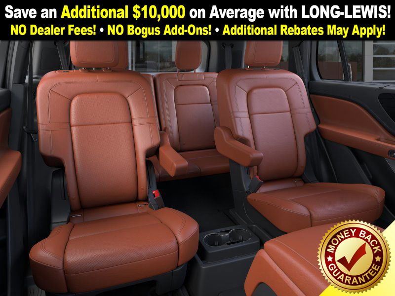 Dealer Discount of $1,438 off MSRP Infinite Black Metallic Clearcoat 2026 Lincoln Aviator Reserve NLT RWD 10-Speed Automatic 3.0L V6 14 Speakers, 30-Way Perfect Position Seats w/Active Motion, 3rd row seats: split-bench, 4-Wheel Disc Brakes, 40/Mini Console/40 Dual Captain's Chairs, ABS brakes, Adaptive suspension, Advanced Heads-Up Display, Air Conditioning, All-Weather 1st & 2nd Row Floor Liners (16A), Alloy wheels, AM/FM radio: SiriusXM, Apple CarPlay/Android Auto, Audio memory, Auto Air Refresh, Auto High-beam Headlights, Auto-dimming door mirrors, Auto-dimming Rear-View mirror, Automatic temperature control, Brake assist, Bumpers: body-color, Cargo Area Cover, Compass, Delay-off headlights, Driver door bin, Driver vanity mirror, Dual front impact airbags, Dual front side impact airbags, Electronic Stability Control, Emergency communication system: 911 Assist, Exterior Parking Camera Rear, Four wheel independent suspension, Front anti-roll bar, Front Bucket Seats, Front Center Armrest, Front dual zone A/C, Front reading lights, Fully automatic headlights, Garage door transmitter, Genuine wood console insert, Genuine wood dashboard insert, Heads-Up Display, Heated & Ventilated Rear Seats, Heated door mirrors, Heated front seats, Heated steering wheel, HVAC memory, Illuminated entry, Knee airbag, Leather steering wheel, Lincoln BlueCruise Equipped (4-Years Included), Lincoln Connectivity Package (4-years included), Lincoln Digital Experience, Low tire pressure warning, Luxury Package, Memory seat, Navigation System, Occupant sensing airbag, Outside temperature display, Overhead airbag, Overhead console, Panic alarm, Passenger door bin, Passenger vanity mirror, Power door mirrors, Power driver seat, Power Liftgate, Power moonroof: Panoramic Vista Roof, Power passenger seat, Power steering, Power windows, Premium Lthr Heated/Ventilated Fnt Captain's Chairs, Radio data system, Radio: Revel Audio System w/14 Speakers, Radio: Revel Ultima 3D Audio System w/28 Speakers, Rain sensing wipers, Rear air conditioning, Rear anti-roll bar, Rear audio controls, Rear dual zone A/C, Rear reading lights, Rear window defroster, Rear window wiper, Remote keyless entry, Security system, SiriusXM, Speed control, Speed-Sensitive Wipers, Split folding rear seat, Spoiler, Steering wheel memory, Steering wheel mounted A/C controls, Steering wheel mounted audio controls, Tachometer, Telescoping steering wheel, Tilt steering wheel, Traction control, Trip computer, Turn signal indicator mirrors, Variably intermittent wipers, Ventilated front seats, Wheels: 21" Bright-Machined Aluminum, Wireless Charging Pad.