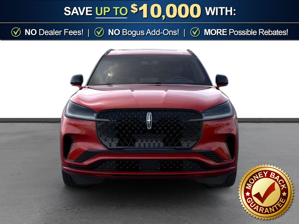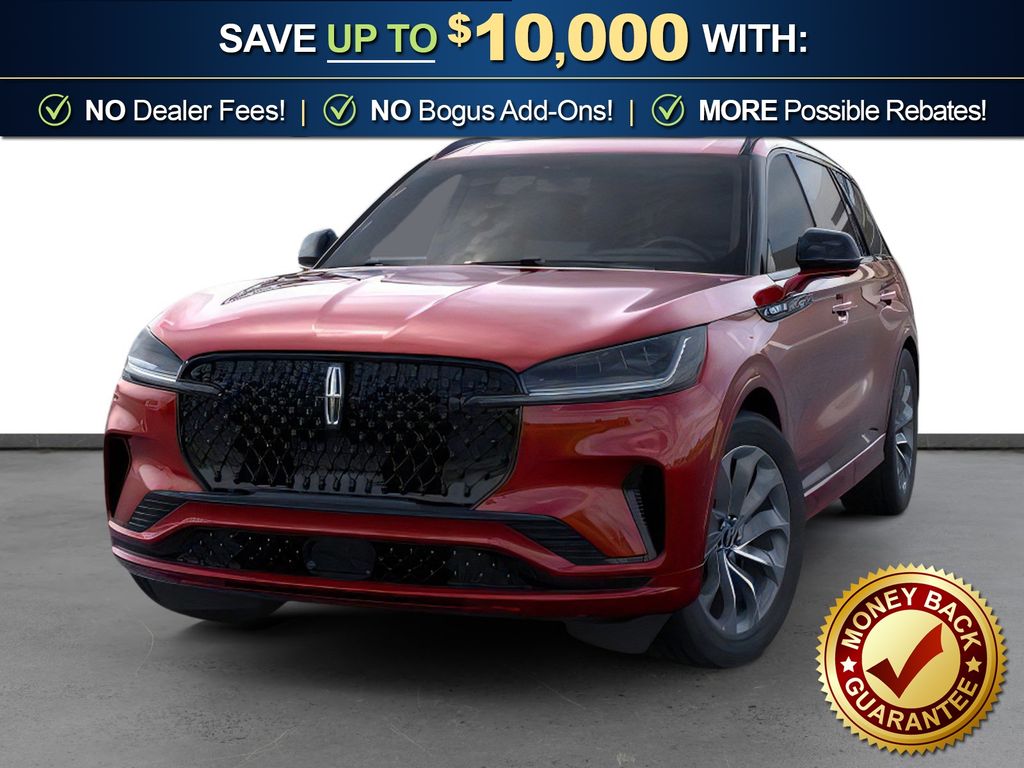 Red Carpet Tinted Clearcoat 2026 Lincoln Aviator Premiere NLT RWD 10-Speed Automatic 3.0L V6 10 Speakers, 3rd row seats: split-bench, 4-Wheel Disc Brakes, ABS brakes, Adaptive suspension, Air Conditioning, Alloy wheels, AM/FM radio: SiriusXM, Apple CarPlay/Android Auto, Audio memory, Auto High-beam Headlights, Auto-dimming door mirrors, Auto-dimming Rear-View mirror, Automatic temperature control, Black Exterior Elements, Body-Color Exterior Elements, Brake assist, Bumpers: body-color, Compass, Delay-off headlights, Driver door bin, Driver vanity mirror, Dual front impact airbags, Dual front side impact airbags, Electronic Stability Control, Emergency communication system: 911 Assist, Four wheel independent suspension, Front anti-roll bar, Front Bucket Seats, Front Center Armrest, Front dual zone A/C, Front reading lights, Fully automatic headlights, Garage door transmitter, Heated door mirrors, Heated front seats, Heated steering wheel, HVAC memory, Illuminated entry, Jet Appearance Package, Knee airbag, Leather steering wheel, Lincoln BlueCruise Equipped (4-Years Included), Lincoln Digital Experience, Low tire pressure warning, Memory seat, Navigation System, Occupant sensing airbag, Outside temperature display, Overhead airbag, Overhead console, Panic alarm, Passenger door bin, Passenger vanity mirror, Power door mirrors, Power driver seat, Power Liftgate, Power passenger seat, Power steering, Power windows, Radio data system, Rain sensing wipers, Rear air conditioning, Rear anti-roll bar, Rear audio controls, Rear reading lights, Rear window defroster, Rear window wiper, Remote keyless entry, Security system, SiriusXM, Speed control, Speed-Sensitive Wipers, Split folding rear seat, Spoiler, Steering wheel mounted A/C controls, Steering wheel mounted audio controls, Tachometer, Telescoping steering wheel, Tilt steering wheel, Traction control, Trip computer, Turn signal indicator mirrors, Variably intermittent wipers, Wheels: 20" Magnetic Bright-Machined Aluminum.