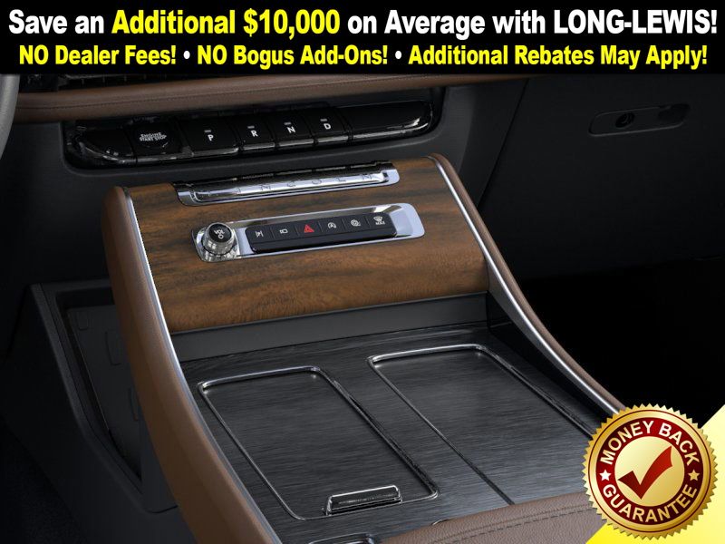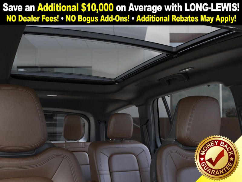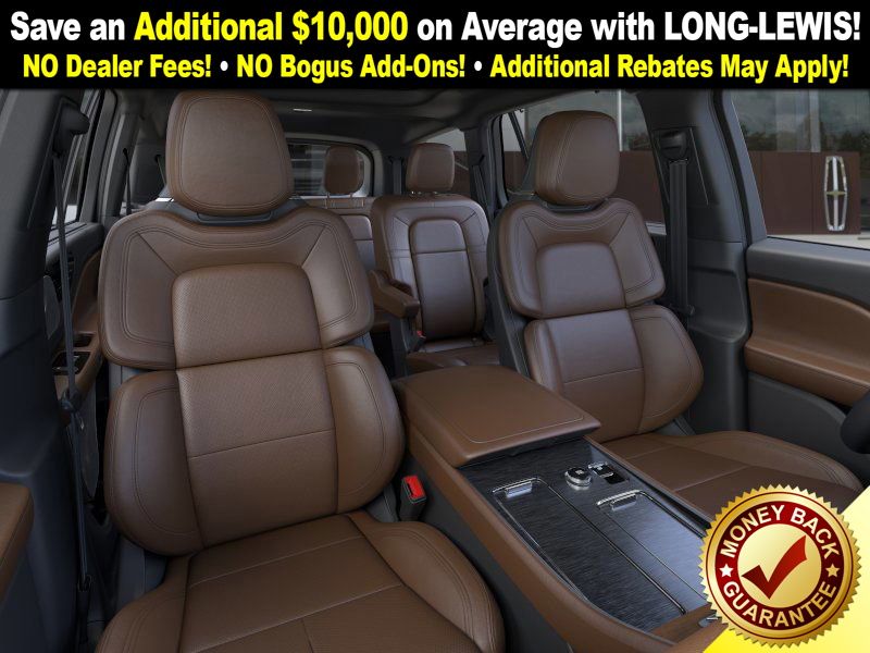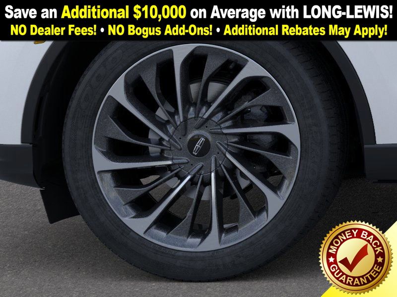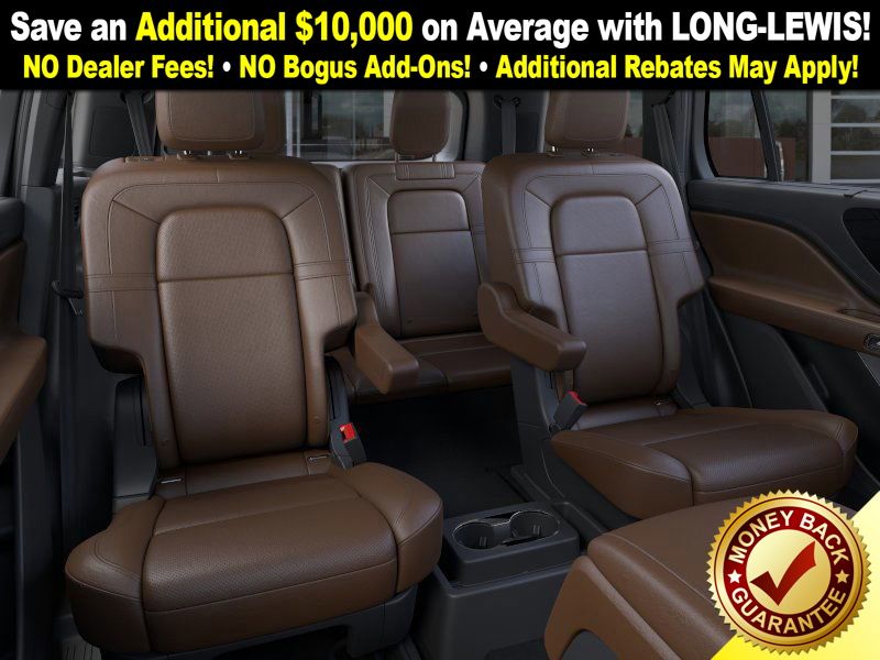 Lincoln Connectivity Package (4-years included), 14 Speakers, 3rd row seats: split-bench, 4-Wheel Disc Brakes, 40/Mini Console/40 Dual Captain's Chairs, ABS brakes, Adaptive suspension, Advanced Heads-Up Display, Air Conditioning, Alloy wheels, AM/FM radio: SiriusXM, Apple CarPlay/Android Auto, Audio memory, Auto Air Refresh, Auto High-beam Headlights, Auto-dimming door mirrors, Auto-dimming Rear-View mirror, Automatic temperature control, Brake assist, Bumpers: body-color, Compass, Delay-off headlights, Driver door bin, Driver vanity mirror, Dual front impact airbags, Dual front side impact airbags, Electronic Stability Control, Emergency communication system: 911 Assist, Exterior Parking Camera Rear, Four wheel independent suspension, Front anti-roll bar, Front Bucket Seats, Front Center Armrest, Front dual zone A/C, Front reading lights, Fully automatic headlights, Garage door transmitter, Genuine wood console insert, Genuine wood dashboard insert, Heads-Up Display, Heated door mirrors, Heated front seats, Heated steering wheel, HVAC memory, Illuminated entry, Knee airbag, Leather steering wheel, Lincoln BlueCruise Equipped (4-Years Included), Lincoln Digital Experience, Low tire pressure warning, Memory seat, Navigation System, Occupant sensing airbag, Outside temperature display, Overhead airbag, Overhead console, Panic alarm, Passenger door bin, Passenger vanity mirror, Power door mirrors, Power driver seat, Power Liftgate, Power moonroof: Panoramic Vista Roof, Power passenger seat, Power steering, Power windows, Premium Lthr Heated/Ventilated Fnt Captain's Chairs, Radio data system, Radio: Revel Audio System w/14 Speakers, Rain sensing wipers, Rear air conditioning, Rear anti-roll bar, Rear audio controls, Rear dual zone A/C, Rear reading lights, Rear window defroster, Rear window wiper, Remote keyless entry, Security system, SiriusXM, Speed control, Speed-Sensitive Wipers, Split folding rear seat, Spoiler, Steering wheel memory, Steering wheel mounted A/C controls, Steering wheel mounted audio controls, Tachometer, Telescoping steering wheel, Tilt steering wheel, Traction control, Trip computer, Turn signal indicator mirrors, Variably intermittent wipers, Ventilated front seats, Wheels: 21" Bright-Machined Aluminum, and Wireless Charging Pad.