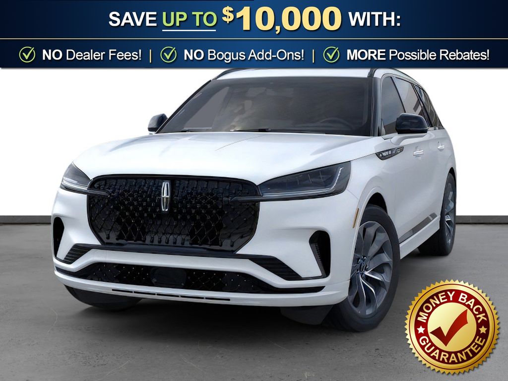 Pristine White Metallic Tri-Coat 2026 Lincoln Aviator Premiere FCT RWD 10-Speed Automatic 3.0L V6 10 Speakers, 3rd row seats: split-bench, 4-Wheel Disc Brakes, ABS brakes, Adaptive suspension, Air Conditioning, Alloy wheels, AM/FM radio: SiriusXM, Apple CarPlay/Android Auto, Audio memory, Auto Air Refresh, Auto High-beam Headlights, Auto-dimming door mirrors, Auto-dimming Rear-View mirror, Automatic temperature control, Black Exterior Elements, Body-Color Exterior Elements, Brake assist, Bumpers: body-color, Compass, Delay-off headlights, Driver door bin, Driver vanity mirror, Dual front impact airbags, Dual front side impact airbags, Electronic Stability Control, Emergency communication system: 911 Assist, Equipment Group 101A Premiere II, Four wheel independent suspension, Front anti-roll bar, Front Bucket Seats, Front Center Armrest, Front dual zone A/C, Front reading lights, Fully automatic headlights, Garage door transmitter, Heads-Up Display, Heated door mirrors, Heated Front Driver and Passenger Seats, Heated front seats, Heated steering wheel, HVAC memory, Illuminated entry, Jet Appearance Package, Knee airbag, Leather steering wheel, Lincoln App, Lincoln BlueCruise Equipped (4-Years Included), Lincoln Connectivity Package (4-Years), Lincoln Digital Experience, Lincoln Soft Touch Comfort Seats, Low tire pressure warning, Memory seat, Navigation system: Google Maps, Occupant sensing airbag, Outside temperature display, Overhead airbag, Overhead console, Panic alarm, Panoramic Vista Roof with Power Shade, Passenger door bin, Passenger vanity mirror, Power door mirrors, Power driver seat, Power Liftgate, Power passenger seat, Power steering, Power Tilt Telescoping Steering Column with Memory, Power windows, Radio data system, Radio: Lincoln Premium AM/FM/HD Audio System with 10 Speakers, Rain sensing wipers, Rear air conditioning, Rear anti-roll bar, Rear audio controls, Rear reading lights, Rear window defroster, Rear window wiper, Remote keyless entry, Security system, SiriusXM, Speed control, Speed-Sensitive Wipers, Split folding rear seat, Spoiler, Steering wheel mounted A/C controls, Steering wheel mounted audio controls, Tachometer, Telescoping steering wheel, Tilt steering wheel, Traction control, Trip computer, Turn signal indicator mirrors, Variably intermittent wipers, Wheels: 20" Magnetic Bright-Machined Aluminum, Wheels: 21" Bright Machined Aluminum with Dark Alloy Painted Pockets, Wireless Charging. Price includes: $4000 - Retail Customer Cash. Exp. 03/31/2026