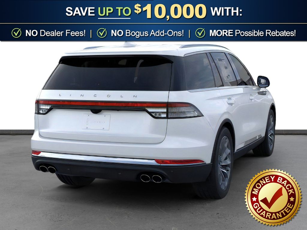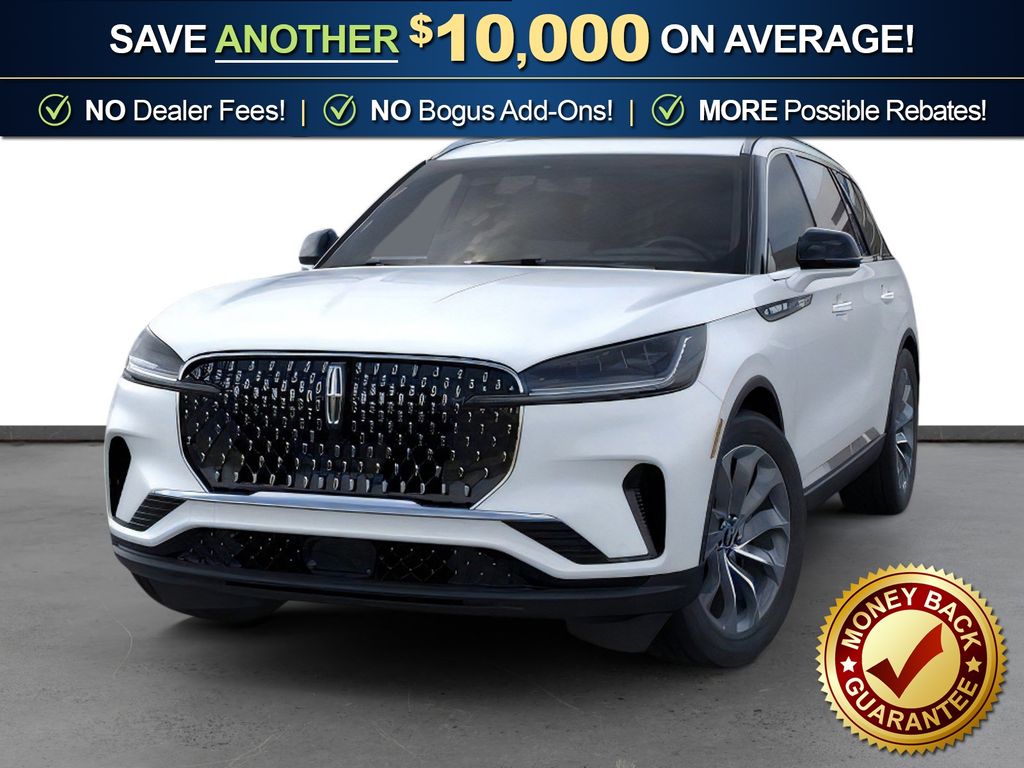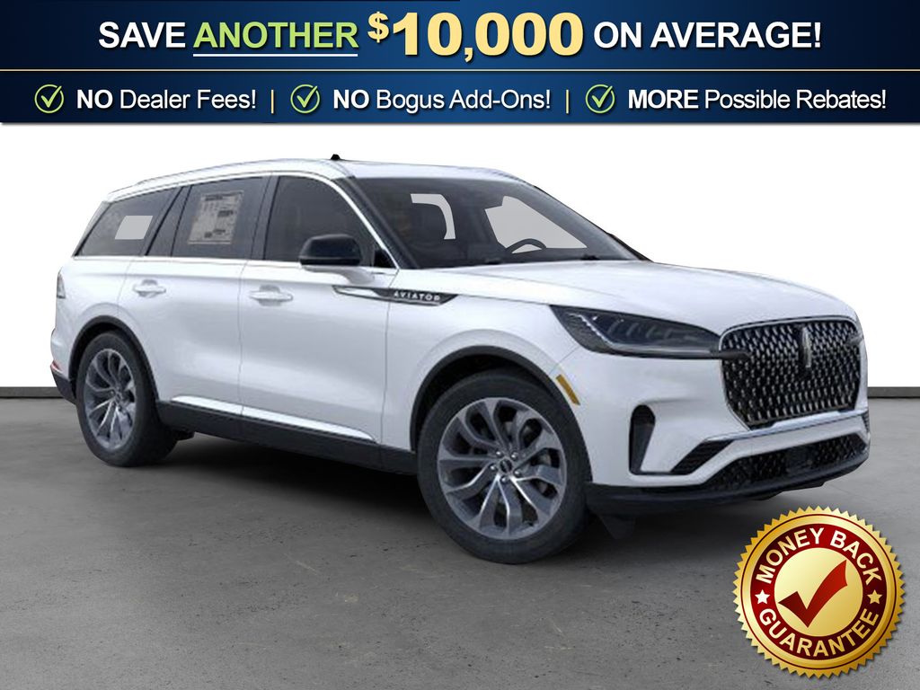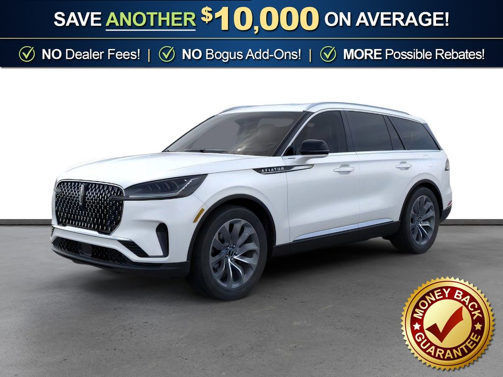 Pristine White Metallic Tri-Coat 2026 Lincoln Aviator Premiere FCT RWD 10-Speed Automatic 3.0L V6 10 Speakers, 3rd row seats: split-bench, 4-Wheel Disc Brakes, ABS brakes, Adaptive suspension, Air Conditioning, Alloy wheels, AM/FM radio: SiriusXM, Apple CarPlay/Android Auto, Audio memory, Auto Air Refresh, Auto High-beam Headlights, Auto-dimming door mirrors, Auto-dimming Rear-View mirror, Automatic temperature control, Brake assist, Bumpers: body-color, Compass, Delay-off headlights, Driver door bin, Driver vanity mirror, Dual front impact airbags, Dual front side impact airbags, Electronic Stability Control, Emergency communication system: 911 Assist, Equipment Group 101A Premiere II, Four wheel independent suspension, Front anti-roll bar, Front Bucket Seats, Front Center Armrest, Front dual zone A/C, Front reading lights, Fully automatic headlights, Garage door transmitter, Heads-Up Display, Heated door mirrors, Heated Front Driver and Passenger Seats, Heated front seats, Heated steering wheel, HVAC memory, Illuminated entry, Knee airbag, Leather steering wheel, Lincoln App, Lincoln BlueCruise Equipped (4-Years Included), Lincoln Connectivity Package (4-Years), Lincoln Digital Experience, Lincoln Soft Touch Comfort Seats, Low tire pressure warning, Memory seat, Navigation system: Google Maps, Occupant sensing airbag, Outside temperature display, Overhead airbag, Overhead console, Panic alarm, Panoramic Vista Roof with Power Shade, Passenger door bin, Passenger vanity mirror, Power door mirrors, Power driver seat, Power Liftgate, Power passenger seat, Power steering, Power Tilt Telescoping Steering Column with Memory, Power windows, Radio data system, Radio: Lincoln Premium AM/FM/HD Audio System with 10 Speakers, Rain sensing wipers, Rear air conditioning, Rear anti-roll bar, Rear audio controls, Rear reading lights, Rear window defroster, Rear window wiper, Remote keyless entry, Security system, SiriusXM, Speed control, Speed-Sensitive Wipers, Split folding rear seat, Spoiler, Steering wheel mounted A/C controls, Steering wheel mounted audio controls, Tachometer, Telescoping steering wheel, Tilt steering wheel, Traction control, Trip computer, Turn signal indicator mirrors, Variably intermittent wipers, Wheels: 20" Magnetic Bright-Machined Aluminum, Wheels: 21" Bright Machined Aluminum with Dark Alloy Painted Pockets, Wireless Charging. Price includes: $4000 - Retail Customer Cash. Exp. 03/31/2026