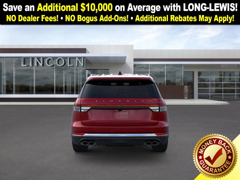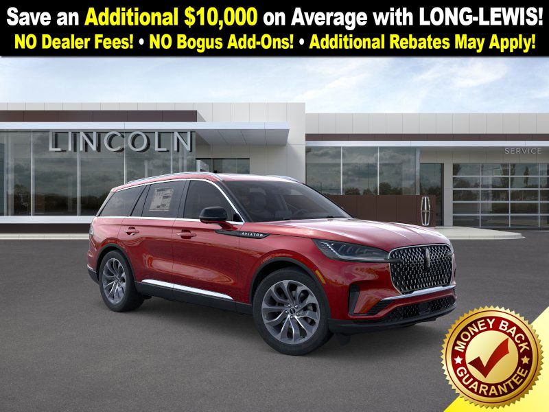 Dealer Discount of $869 off MSRP Red Carpet Tinted Clearcoat 2026 Lincoln Aviator Premiere FCT RWD 10-Speed Automatic 3.0L V6 10 Speakers, 3rd row seats: split-bench, 4-Wheel Disc Brakes, ABS brakes, Adaptive suspension, Air Conditioning, Alloy wheels, AM/FM radio: SiriusXM, Apple CarPlay/Android Auto, Audio memory, Auto High-beam Headlights, Auto-dimming door mirrors, Auto-dimming Rear-View mirror, Automatic temperature control, Brake assist, Bumpers: body-color, Compass, Delay-off headlights, Driver door bin, Driver vanity mirror, Dual front impact airbags, Dual front side impact airbags, Electronic Stability Control, Emergency communication system: 911 Assist, Exterior Parking Camera Rear, Four wheel independent suspension, Front anti-roll bar, Front Bucket Seats, Front Center Armrest, Front dual zone A/C, Front reading lights, Fully automatic headlights, Garage door transmitter, Heated door mirrors, Heated front seats, Heated steering wheel, HVAC memory, Illuminated entry, Knee airbag, Leather steering wheel, Lincoln BlueCruise Equipped (4-Years Included), Lincoln Connectivity Package (4-years included), Lincoln Digital Experience, Lincoln Soft Touch Heated Comfort Seats, Low tire pressure warning, Memory seat, Navigation System, Occupant sensing airbag, Outside temperature display, Overhead airbag, Overhead console, Panic alarm, Passenger door bin, Passenger vanity mirror, Power door mirrors, Power driver seat, Power Liftgate, Power passenger seat, Power steering, Power windows, Radio data system, Radio: Lincoln Premium AM/FM/HD Audio System, Rain sensing wipers, Rear air conditioning, Rear anti-roll bar, Rear audio controls, Rear reading lights, Rear window defroster, Rear window wiper, Remote keyless entry, Security system, SiriusXM, Speed control, Speed-Sensitive Wipers, Split folding rear seat, Spoiler, Steering wheel mounted A/C controls, Steering wheel mounted audio controls, Tachometer, Telescoping steering wheel, Tilt steering wheel, Traction control, Trip computer, Turn signal indicator mirrors, Variably intermittent wipers, Wheels: 20" Magnetic Bright-Machined Aluminum, Wheels: 21" Bright Machined Aluminum.