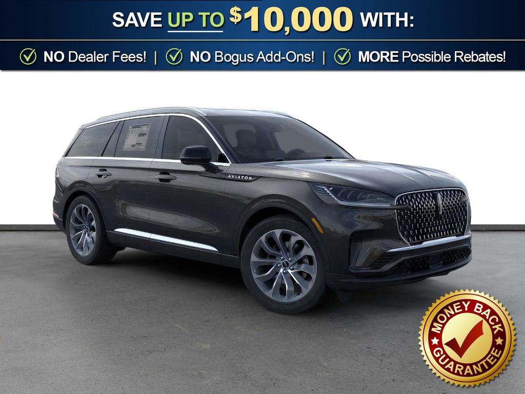 Dealer Discount of $2,625 off MSRP Infinite Black Metallic Clearcoat 2026 Lincoln Aviator Premiere FCT RWD 10-Speed Automatic 3.0L V6 10 Speakers, 3rd row seats: split-bench, 4-Wheel Disc Brakes, ABS brakes, Adaptive suspension, Air Conditioning, Alloy wheels, AM/FM radio: SiriusXM, Apple CarPlay/Android Auto, Audio memory, Auto High-beam Headlights, Auto-dimming door mirrors, Auto-dimming Rear-View mirror, Automatic temperature control, Brake assist, Bumpers: body-color, Compass, Delay-off headlights, Driver door bin, Driver vanity mirror, Dual front impact airbags, Dual front side impact airbags, Electronic Stability Control, Emergency communication system: 911 Assist, Four wheel independent suspension, Front anti-roll bar, Front Bucket Seats, Front Center Armrest, Front dual zone A/C, Front reading lights, Fully automatic headlights, Garage door transmitter, Heads-Up Display, Heated door mirrors, Heated Front Driver and Passenger Seats, Heated front seats, Heated steering wheel, HVAC memory, Illuminated entry, Knee airbag, Leather steering wheel, Lincoln App, Lincoln BlueCruise Equipped (4-Years Included), Lincoln Connectivity Package (4-Years), Lincoln Digital Experience, Lincoln Soft Touch Comfort Seats, Low tire pressure warning, Memory seat, Navigation system: Google Maps, Occupant sensing airbag, Outside temperature display, Overhead airbag, Overhead console, Panic alarm, Passenger door bin, Passenger vanity mirror, Power door mirrors, Power driver seat, Power Liftgate, Power passenger seat, Power steering, Power windows, Radio data system, Radio: Lincoln Premium AM/FM/HD Audio System with 10 Speakers, Rain sensing wipers, Rear air conditioning, Rear anti-roll bar, Rear audio controls, Rear reading lights, Rear window defroster, Rear window wiper, Remote keyless entry, Security system, SiriusXM, Speed control, Speed-Sensitive Wipers, Split folding rear seat, Spoiler, Steering wheel mounted A/C controls, Steering wheel mounted audio controls, Tachometer, Telescoping steering wheel, Tilt steering wheel, Traction control, Trip computer, Turn signal indicator mirrors, Variably intermittent wipers, Wheels: 20" Magnetic Bright-Machined Aluminum, Wheels: 21" Bright Machined Aluminum with Dark Alloy Painted Pockets.