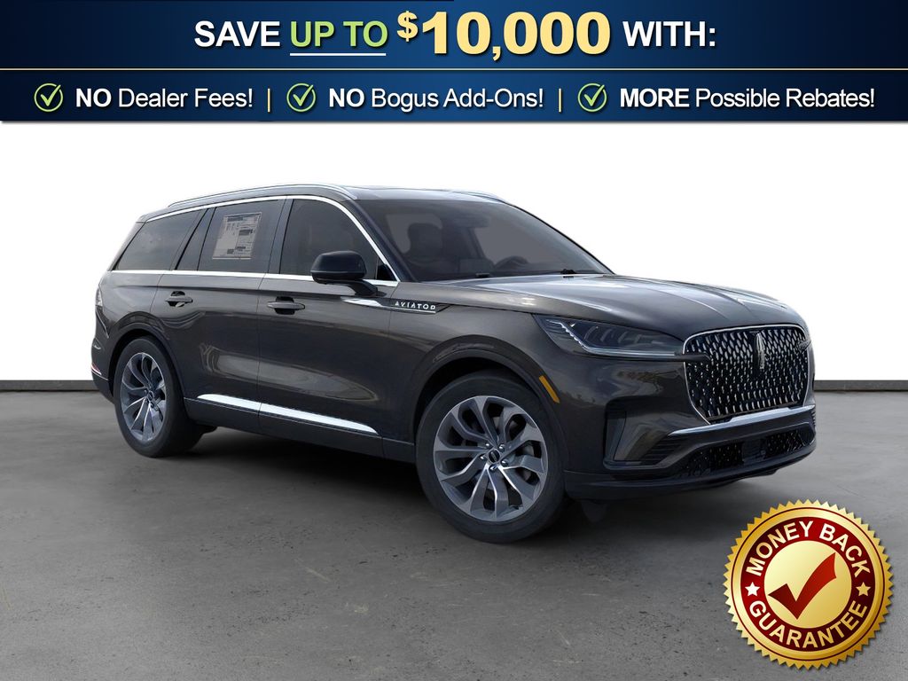 Infinite Black Metallic Clearcoat 2026 Lincoln Aviator Premiere FCT RWD 10-Speed Automatic 3.0L V6 10 Speakers, 3rd row seats: split-bench, 4-Wheel Disc Brakes, ABS brakes, Adaptive suspension, Air Conditioning, Alloy wheels, AM/FM radio: SiriusXM, Apple CarPlay/Android Auto, Audio memory, Auto High-beam Headlights, Auto-dimming door mirrors, Auto-dimming Rear-View mirror, Automatic temperature control, Brake assist, Bumpers: body-color, Compass, Delay-off headlights, Driver door bin, Driver vanity mirror, Dual front impact airbags, Dual front side impact airbags, Electronic Stability Control, Emergency communication system: 911 Assist, Four wheel independent suspension, Front anti-roll bar, Front Bucket Seats, Front Center Armrest, Front dual zone A/C, Front reading lights, Fully automatic headlights, Garage door transmitter, Heated door mirrors, Heated front seats, Heated steering wheel, HVAC memory, Illuminated entry, Knee airbag, Leather steering wheel, Lincoln BlueCruise Equipped (4-Years Included), Lincoln Digital Experience, Low tire pressure warning, Memory seat, Navigation System, Occupant sensing airbag, Outside temperature display, Overhead airbag, Overhead console, Panic alarm, Passenger door bin, Passenger vanity mirror, Power door mirrors, Power driver seat, Power Liftgate, Power passenger seat, Power steering, Power windows, Radio data system, Rain sensing wipers, Rear air conditioning, Rear anti-roll bar, Rear audio controls, Rear reading lights, Rear window defroster, Rear window wiper, Remote keyless entry, Security system, SiriusXM, Speed control, Speed-Sensitive Wipers, Split folding rear seat, Spoiler, Steering wheel mounted A/C controls, Steering wheel mounted audio controls, Tachometer, Telescoping steering wheel, Tilt steering wheel, Traction control, Trip computer, Turn signal indicator mirrors, Variably intermittent wipers, Wheels: 20" Magnetic Bright-Machined Aluminum.