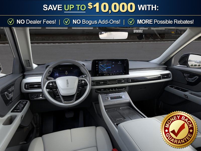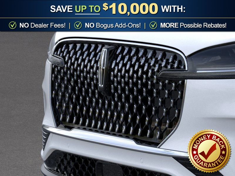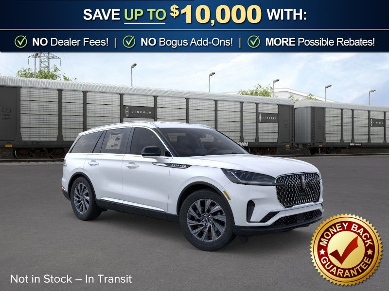 Dealer Discount of $318 off MSRP Pristine White Metallic Tri-Coat 2026 Lincoln Aviator Premiere NLT AWD 10-Speed Automatic 3.0L V6 10 Speakers, 3rd row seats: split-bench, 4-Wheel Disc Brakes, ABS brakes, Adaptive suspension, Air Conditioning, Alloy wheels, AM/FM radio: SiriusXM, Apple CarPlay/Android Auto, Audio memory, Auto High-beam Headlights, Auto-dimming door mirrors, Auto-dimming Rear-View mirror, Automatic temperature control, Brake assist, Bumpers: body-color, Compass, Delay-off headlights, Driver door bin, Driver vanity mirror, Dual front impact airbags, Dual front side impact airbags, Electronic Stability Control, Emergency communication system: 911 Assist, Four wheel independent suspension, Front anti-roll bar, Front Bucket Seats, Front Center Armrest, Front dual zone A/C, Front reading lights, Fully automatic headlights, Garage door transmitter, Heads-Up Display, Heated door mirrors, Heated Front Driver and Passenger Seats, Heated front seats, Heated steering wheel, HVAC memory, Illuminated entry, Knee airbag, Leather steering wheel, Lincoln App, Lincoln BlueCruise Equipped (4-Years Included), Lincoln Connectivity Package (4-Years), Lincoln Digital Experience, Lincoln Soft Touch Comfort Seats, Low tire pressure warning, Memory seat, Navigation system: Google Maps, Occupant sensing airbag, Outside temperature display, Overhead airbag, Overhead console, Panic alarm, Passenger door bin, Passenger vanity mirror, Power door mirrors, Power driver seat, Power Liftgate, Power passenger seat, Power steering, Power windows, Radio data system, Radio: Lincoln Premium AM/FM/HD Audio System with 10 Speakers, Rain sensing wipers, Rear air conditioning, Rear anti-roll bar, Rear audio controls, Rear reading lights, Rear window defroster, Rear window wiper, Remote keyless entry, Security system, SiriusXM, Speed control, Speed-Sensitive Wipers, Split folding rear seat, Spoiler, Steering wheel mounted A/C controls, Steering wheel mounted audio controls, Tachometer, Telescoping steering wheel, Tilt steering wheel, Traction control, Trip computer, Turn signal indicator mirrors, Variably intermittent wipers, Wheels: 20" Magnetic Bright-Machined Aluminum.