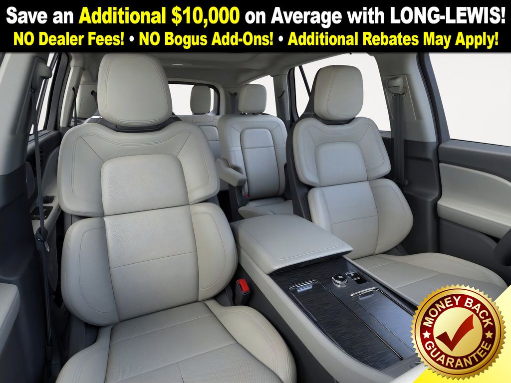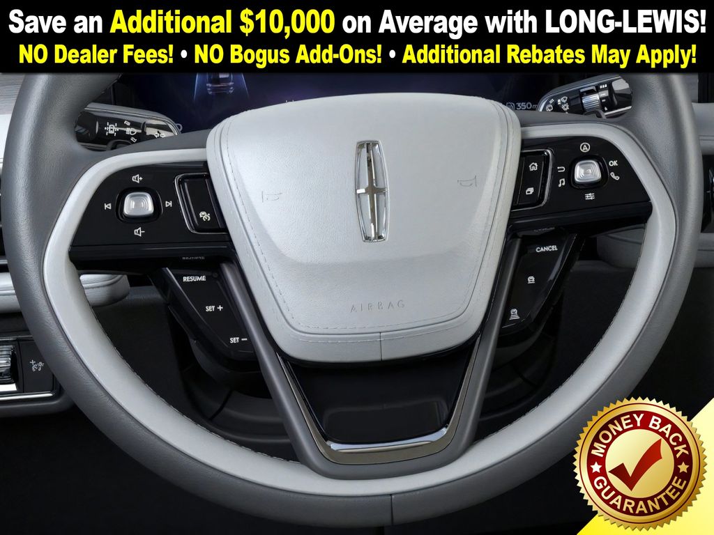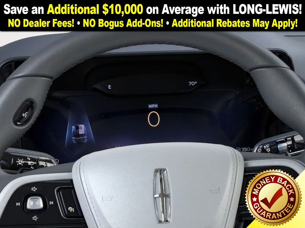 Lincoln Connectivity Package (4-years included), 14 Speakers, 3rd row seats: split-bench, 4-Wheel Disc Brakes, 40/Mini Console/40 Dual Captain's Chairs, ABS brakes, Adaptive suspension, Advanced Heads-Up Display, Air Conditioning, Alloy wheels, AM/FM radio: SiriusXM, Apple CarPlay/Android Auto, Audio memory, Auto Air Refresh, Auto High-beam Headlights, Auto-dimming door mirrors, Auto-dimming Rear-View mirror, Automatic temperature control, Brake assist, Bumpers: body-color, Compass, Delay-off headlights, Driver door bin, Driver vanity mirror, Dual front impact airbags, Dual front side impact airbags, Electronic Stability Control, Emergency communication system: 911 Assist, Exterior Parking Camera Rear, Four wheel independent suspension, Front anti-roll bar, Front Bucket Seats, Front Center Armrest, Front dual zone A/C, Front reading lights, Fully automatic headlights, Garage door transmitter, Genuine wood console insert, Genuine wood dashboard insert, Heads-Up Display, Heated door mirrors, Heated front seats, Heated steering wheel, HVAC memory, Illuminated entry, Knee airbag, Leather steering wheel, Lincoln BlueCruise Equipped (4-Years Included), Lincoln Digital Experience, Low tire pressure warning, Memory seat, Navigation System, Occupant sensing airbag, Outside temperature display, Overhead airbag, Overhead console, Panic alarm, Passenger door bin, Passenger vanity mirror, Power door mirrors, Power driver seat, Power Liftgate, Power moonroof: Panoramic Vista Roof, Power passenger seat, Power steering, Power windows, Premium Lthr Heated/Ventilated Fnt Captain's Chairs, Radio data system, Radio: Revel Audio System w/14 Speakers, Rain sensing wipers, Rear air conditioning, Rear anti-roll bar, Rear audio controls, Rear dual zone A/C, Rear reading lights, Rear window defroster, Rear window wiper, Remote keyless entry, Security system, SiriusXM, Speed control, Speed-Sensitive Wipers, Split folding rear seat, Spoiler, Steering wheel memory, Steering wheel mounted A/C controls, Steering wheel mounted audio controls, Tachometer, Telescoping steering wheel, Tilt steering wheel, Traction control, Trip computer, Turn signal indicator mirrors, Variably intermittent wipers, Ventilated front seats, Wheels: 21" Bright-Machined Aluminum, and Wireless Charging Pad.