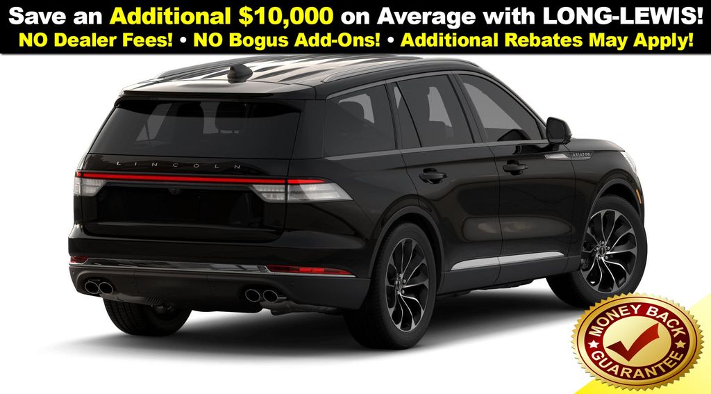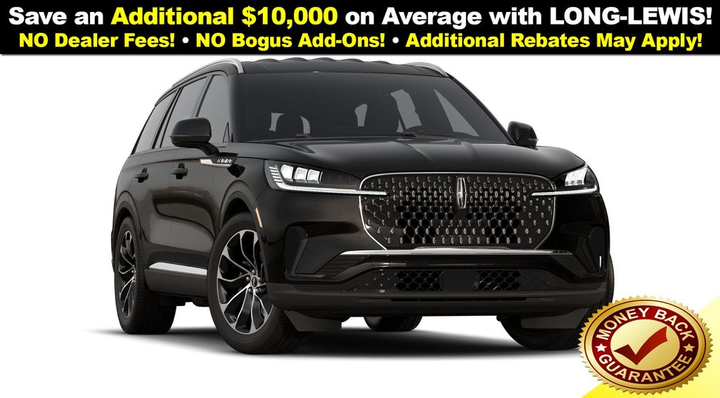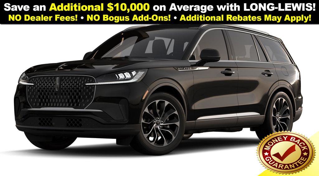 Infinite Black Metallic Clearcoat 2026 Lincoln Aviator Premiere NLT RWD 10-Speed Automatic 3.0L V6 10 Speakers, 3rd row seats: split-bench, 4-Wheel Disc Brakes, ABS brakes, Adaptive suspension, Air Conditioning, Alloy wheels, AM/FM radio: SiriusXM, Apple CarPlay/Android Auto, Audio memory, Auto High-beam Headlights, Auto-dimming door mirrors, Auto-dimming Rear-View mirror, Automatic temperature control, Brake assist, Bumpers: body-color, Compass, Delay-off headlights, Driver door bin, Driver vanity mirror, Dual front impact airbags, Dual front side impact airbags, Electronic Stability Control, Emergency communication system: 911 Assist, Exterior Parking Camera Rear, Four wheel independent suspension, Front anti-roll bar, Front Bucket Seats, Front Center Armrest, Front dual zone A/C, Front reading lights, Fully automatic headlights, Garage door transmitter, Heated door mirrors, Heated front seats, Heated steering wheel, HVAC memory, Illuminated entry, Knee airbag, Leather steering wheel, Lincoln BlueCruise Equipped (4-Years Included), Lincoln Connectivity Package (4-years included), Lincoln Digital Experience, Lincoln Soft Touch Heated Comfort Seats, Low tire pressure warning, Memory seat, Navigation System, Occupant sensing airbag, Outside temperature display, Overhead airbag, Overhead console, Panic alarm, Passenger door bin, Passenger vanity mirror, Power door mirrors, Power driver seat, Power Liftgate, Power passenger seat, Power steering, Power windows, Radio data system, Radio: Lincoln Premium AM/FM/HD Audio System, Rain sensing wipers, Rear air conditioning, Rear anti-roll bar, Rear audio controls, Rear reading lights, Rear window defroster, Rear window wiper, Remote keyless entry, Security system, SiriusXM, Speed control, Speed-Sensitive Wipers, Split folding rear seat, Spoiler, Steering wheel mounted A/C controls, Steering wheel mounted audio controls, Tachometer, Telescoping steering wheel, Tilt steering wheel, Traction control, Trip computer, Turn signal indicator mirrors, Variably intermittent wipers, Wheels: 20" Magnetic Bright-Machined Aluminum, Wheels: 21" Bright Machined Aluminum.