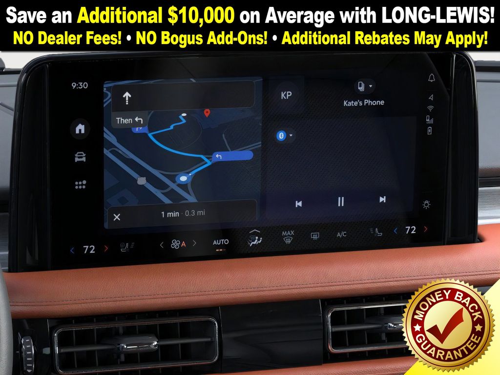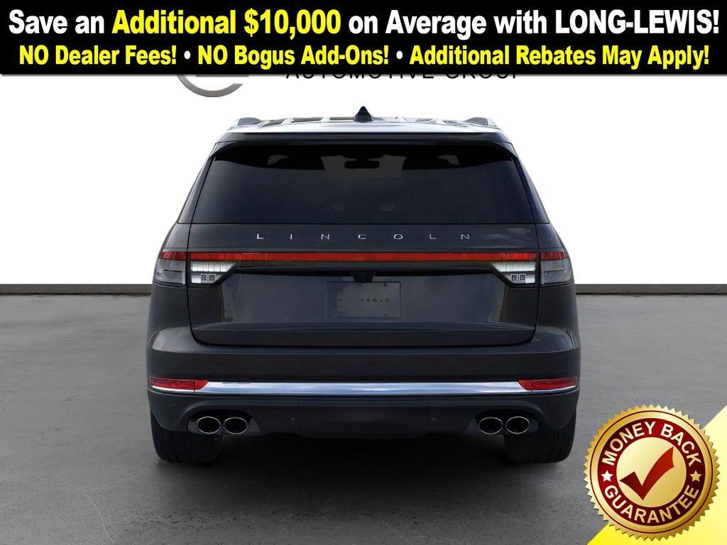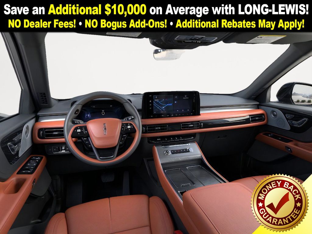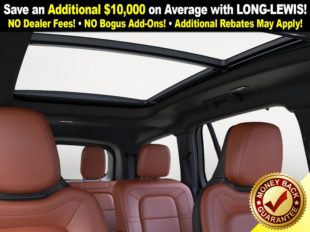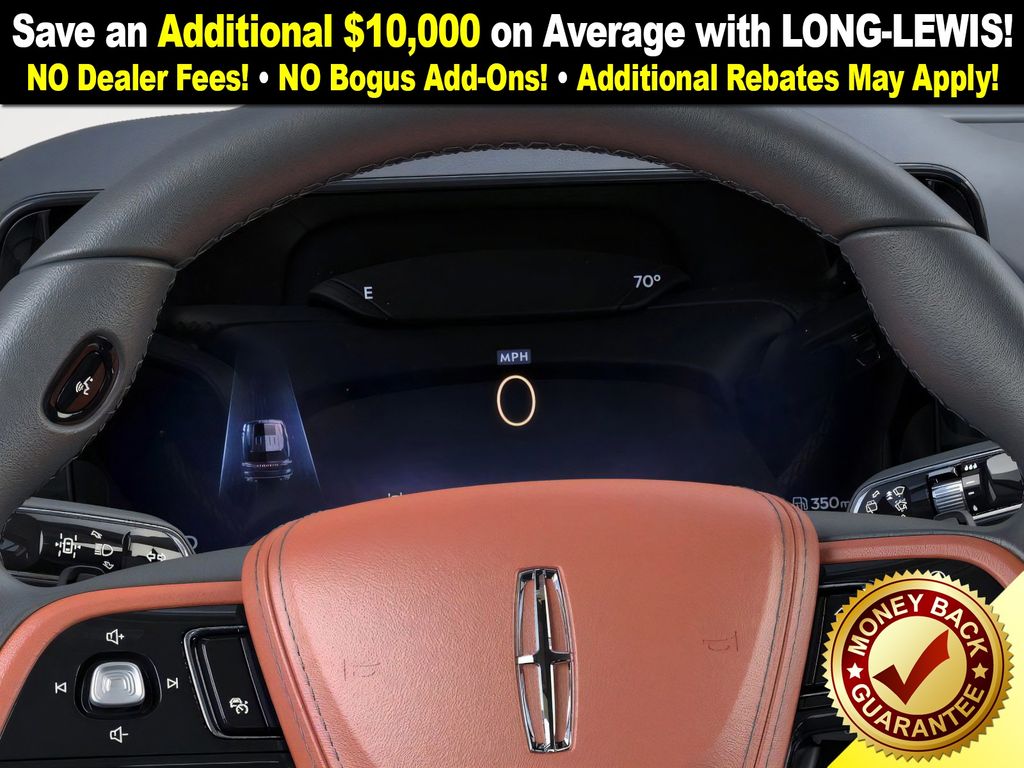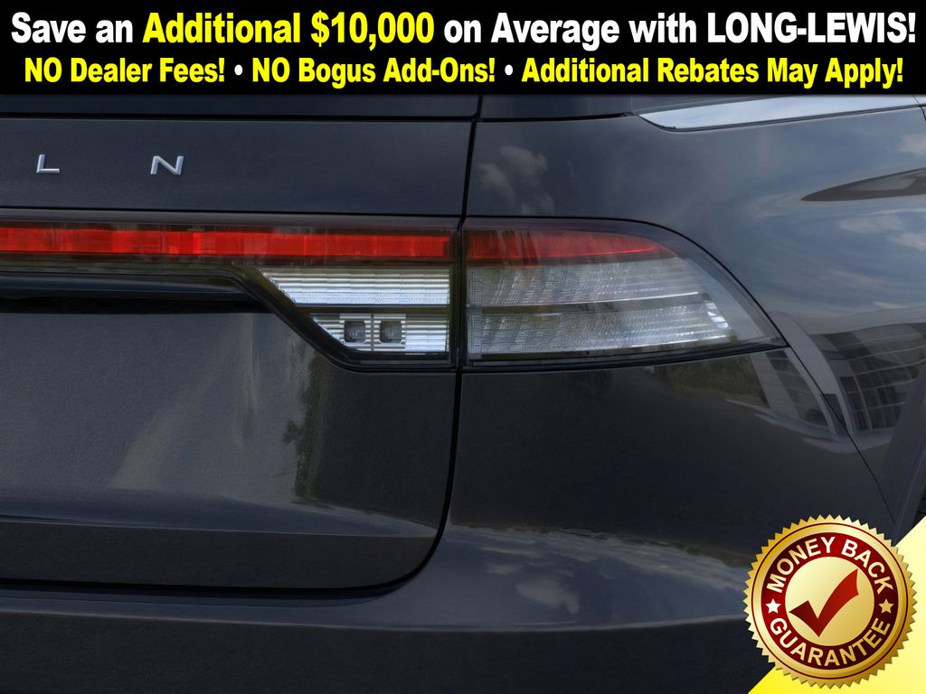 Lincoln Connectivity Package (4-years included), 14 Speakers, 3rd row seats: split-bench, 4-Wheel Disc Brakes, 40/Mini Console/40 Dual Captain's Chairs, ABS brakes, Adaptive suspension, Advanced Heads-Up Display, Air Conditioning, Alloy wheels, AM/FM radio: SiriusXM, Apple CarPlay/Android Auto, Audio memory, Auto Air Refresh, Auto High-beam Headlights, Auto-dimming door mirrors, Auto-dimming Rear-View mirror, Automatic temperature control, Brake assist, Bumpers: body-color, Compass, Delay-off headlights, Driver door bin, Driver vanity mirror, Dual front impact airbags, Dual front side impact airbags, Electronic Stability Control, Emergency communication system: 911 Assist, Exterior Parking Camera Rear, Four wheel independent suspension, Front anti-roll bar, Front Bucket Seats, Front Center Armrest, Front dual zone A/C, Front reading lights, Fully automatic headlights, Garage door transmitter, Genuine wood console insert, Genuine wood dashboard insert, Heads-Up Display, Heated door mirrors, Heated front seats, Heated steering wheel, HVAC memory, Illuminated entry, Knee airbag, Leather steering wheel, Lincoln BlueCruise Equipped (4-Years Included), Lincoln Digital Experience, Low tire pressure warning, Memory seat, Navigation System, Occupant sensing airbag, Outside temperature display, Overhead airbag, Overhead console, Panic alarm, Passenger door bin, Passenger vanity mirror, Power door mirrors, Power driver seat, Power Liftgate, Power moonroof: Panoramic Vista Roof, Power passenger seat, Power steering, Power windows, Premium Lthr Heated/Ventilated Fnt Captain's Chairs, Radio data system, Radio: Revel Audio System w/14 Speakers, Rain sensing wipers, Rear air conditioning, Rear anti-roll bar, Rear audio controls, Rear dual zone A/C, Rear reading lights, Rear window defroster, Rear window wiper, Remote keyless entry, Security system, SiriusXM, Speed control, Speed-Sensitive Wipers, Split folding rear seat, Spoiler, Steering wheel memory, Steering wheel mounted A/C controls, Steering wheel mounted audio controls, Tachometer, Telescoping steering wheel, Tilt steering wheel, Traction control, Trip computer, Turn signal indicator mirrors, Variably intermittent wipers, Ventilated front seats, Wheels: 21" Bright-Machined Aluminum, and Wireless Charging Pad.