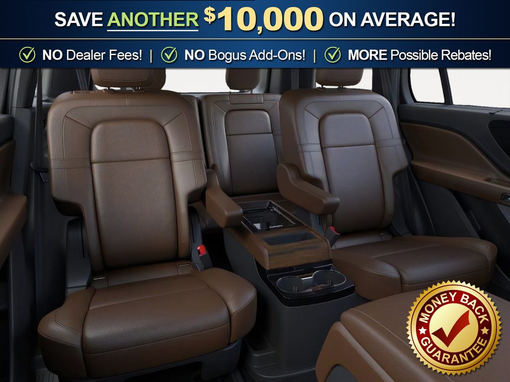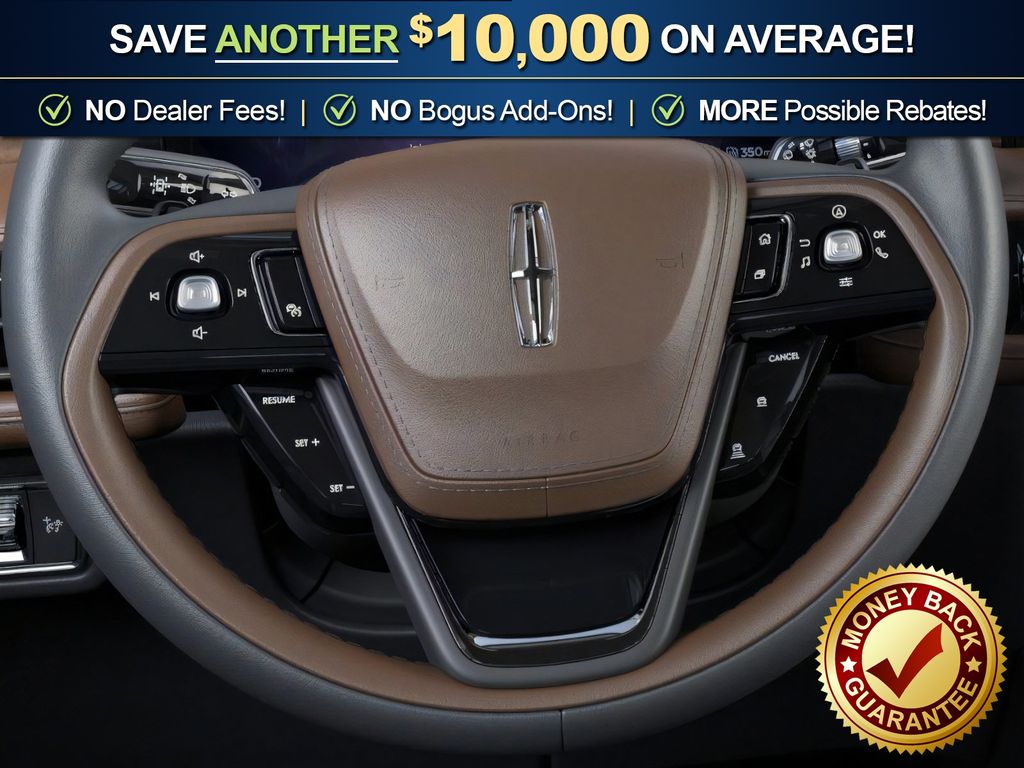 Dynamic Handling Package (Air Glide Suspension with Dynamic Lower Entry), Jet Appearance Package (40/Mini Console/40 Dual Captain's Chairs, Black Exterior Elements, Body-Color Exterior Elements, and Wheels: 22" Black Aluminum), Lincoln Connectivity Package (4-Years), 14 Speakers, 3rd row seats: split-bench, 4-Wheel Disc Brakes, ABS brakes, Adaptive suspension, Air Conditioning, Alloy wheels, AM/FM radio: SiriusXM, Apple CarPlay/Android Auto, Audio memory, Auto Heated and Ventilated Driver and Passenger Seats, Auto High-beam Headlights, Auto-dimming door mirrors, Auto-dimming Rear-View mirror, Automatic temperature control, Brake assist, Bumpers: body-color, Compass, Delay-off headlights, Driver door bin, Driver vanity mirror, Dual front impact airbags, Dual front side impact airbags, Electronic Stability Control, Emergency communication system: 911 Assist, Four wheel independent suspension, Front anti-roll bar, Front Bucket Seats, Front Center Armrest, Front dual zone A/C, Front reading lights, Full Rear Console, Fully automatic headlights, Garage door transmitter, Genuine wood console insert, Genuine wood dashboard insert, Heads-Up Display, Heated door mirrors, Heated front seats, Heated steering wheel, HVAC memory, Illuminated entry, Knee airbag, Leather steering wheel, Lincoln App, Lincoln BlueCruise Equipped (4-Years Included), Lincoln Digital Experience, Low tire pressure warning, Memory seat, Navigation system: Google Maps, Occupant sensing airbag, Outside temperature display, Overhead airbag, Overhead console, Panic alarm, Passenger door bin, Passenger vanity mirror, Power door mirrors, Power driver seat, Power Liftgate, Power moonroof: Panoramic Vista Roof, Power passenger seat, Power steering, Power windows, Premium Leather Front Captain's Chairs, Radio data system, Radio: Revel Audio System with 14 Speakers, Rain sensing wipers, Rear air conditioning, Rear anti-roll bar, Rear audio controls, Rear dual zone A/C, Rear reading lights, Rear window defroster, Rear window wiper, Remote keyless entry, Security system, SiriusXM, Speed control, Speed-Sensitive Wipers, Split folding rear seat, Spoiler, Steering wheel memory, Steering wheel mounted A/C controls, Steering wheel mounted audio controls, Tachometer, Telescoping steering wheel, Tilt steering wheel, Traction control, Trip computer, Turn signal indicator mirrors, Variably intermittent wipers, Ventilated front seats, Wheels: 21" Bright-Machined Aluminum with Dark Alloy Painted Pockets, and Wireless Charging Pad.
