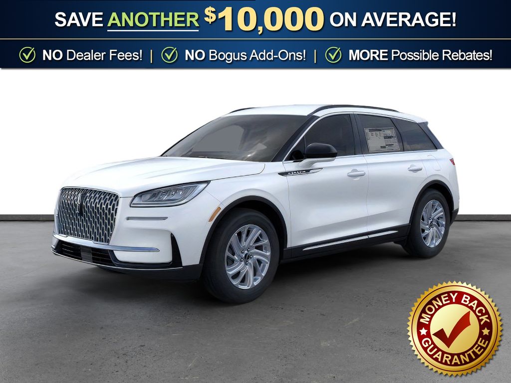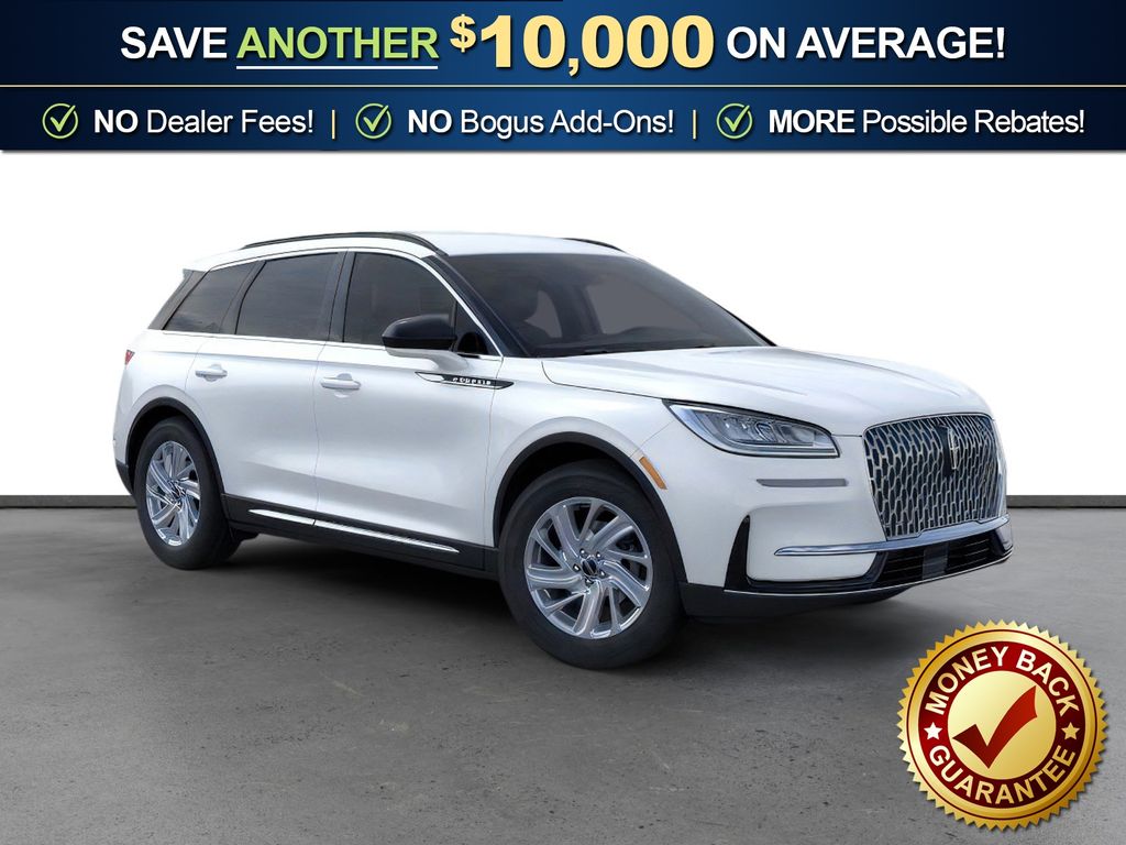 Pristine White Metallic Tri-Coat 2026 Lincoln Corsair Premiere NLT FWD 8-Speed Automatic 2.0L I4 4-Wheel Disc Brakes, 9 Speakers, ABS brakes, Air Conditioning, Alexa Built-In, Alloy wheels, AM/FM radio: SiriusXM with 360L, Apple CarPlay/Android Auto, Auto High-beam Headlights, Auto-dimming Rear-View mirror, Automatic temperature control, Brake assist, Bumpers: body-color, Compass, Delay-off headlights, Driver door bin, Driver vanity mirror, Dual front impact airbags, Dual front side impact airbags, Electronic Stability Control, Emergency communication system: 911 Assist, Exterior Parking Camera Rear, Four wheel independent suspension, Front anti-roll bar, Front Bucket Seats, Front Center Armrest, Front dual zone A/C, Front reading lights, Fully automatic headlights, Heated door mirrors, Heated front seats, Illuminated entry, Knee airbag, Leather steering wheel, Lincoln Soft Touch Heated Front Captain's Chairs, Low tire pressure warning, Memory seat, Navigation system: Connected Navigation (4-year trial), Occupant sensing airbag, Outside temperature display, Overhead airbag, Overhead console, Panic alarm, Passenger door bin, Passenger vanity mirror, Power door mirrors, Power driver seat, Power Liftgate, Power passenger seat, Power steering, Power windows, Radio data system, Radio: Lincoln Premium Audio System w/MP3, Rear anti-roll bar, Rear Parking Sensors, Rear reading lights, Rear seat center armrest, Rear window defroster, Rear window wiper, Remote keyless entry, Security system, SiriusXM w/360L Radio, Speed control, Speed-sensing steering, Speed-Sensitive Wipers, Split folding rear seat, Spoiler, Steering wheel mounted A/C controls, Steering wheel mounted audio controls, SYNC 4, Tachometer, Telescoping steering wheel, Tilt steering wheel, Traction control, Trip computer, Variably intermittent wipers, Wheels: 18" Warm Painted Alloy.