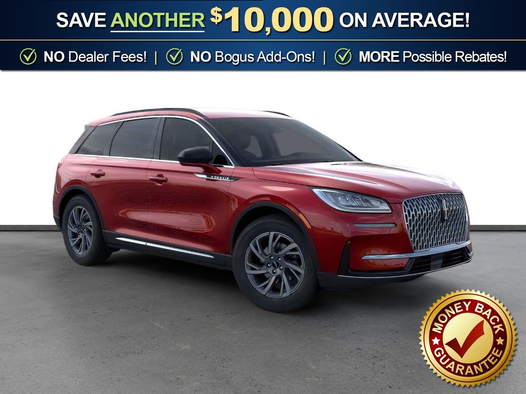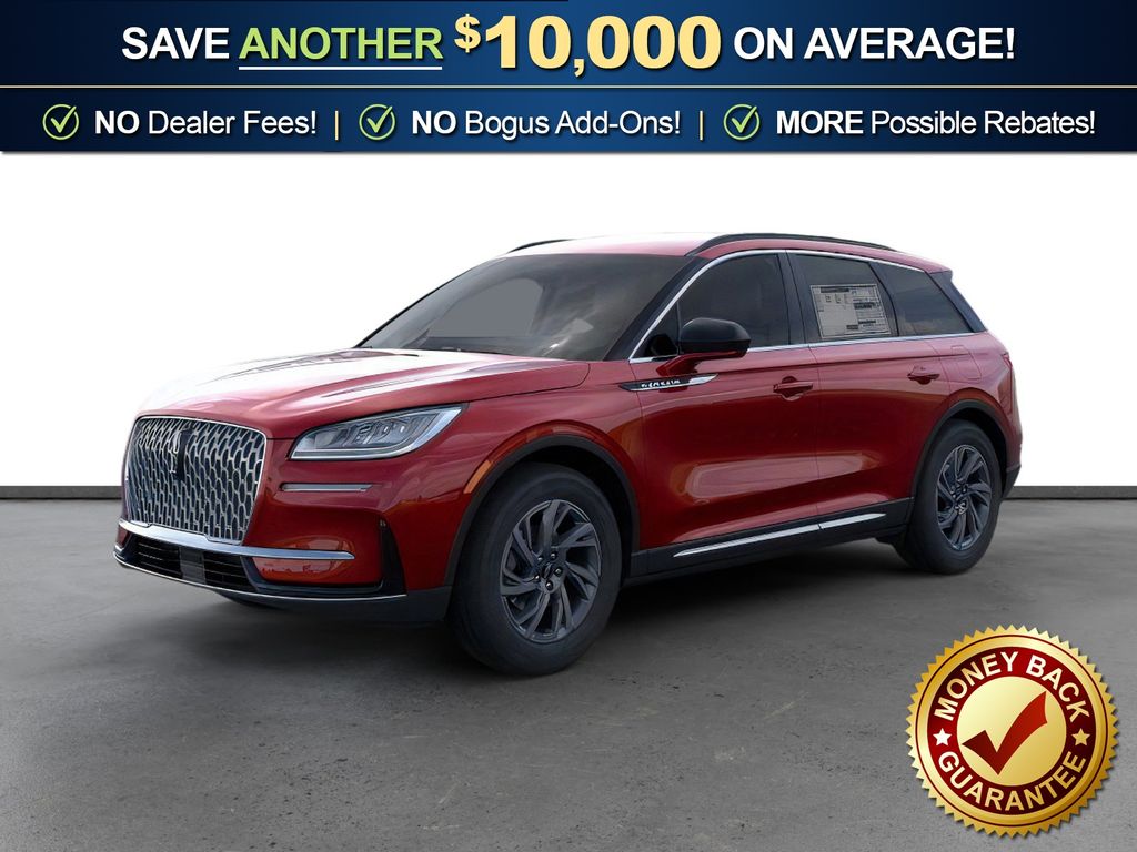 Red Carpet Metallic Tinted Clearcoat 2026 Lincoln Corsair Premiere FCT FWD 8-Speed Automatic 2.0L I4 18" Bright Machined Aluminum Wheels, 4-Wheel Disc Brakes, 9 Speakers, ABS brakes, Air Conditioning, Alexa Built-In, Alloy wheels, AM/FM radio: SiriusXM with 360L, Apple CarPlay/Android Auto, Auto High-beam Headlights, Auto-dimming Rear-View mirror, Automatic temperature control, Brake assist, Bumpers: body-color, Compass, Delay-off headlights, Driver door bin, Driver vanity mirror, Dual front impact airbags, Dual front side impact airbags, Electronic Stability Control, Emergency communication system: 911 Assist, Exterior Parking Camera Rear, Four wheel independent suspension, Front anti-roll bar, Front Bucket Seats, Front Center Armrest, Front dual zone A/C, Front reading lights, Fully automatic headlights, Heated door mirrors, Heated front seats, Illuminated entry, Knee airbag, Leather steering wheel, Lincoln Soft Touch Heated Front Captain's Chairs, Low tire pressure warning, Memory seat, Navigation system: Connected Navigation (4-year trial), Occupant sensing airbag, Outside temperature display, Overhead airbag, Overhead console, Panic alarm, Passenger door bin, Passenger vanity mirror, Power door mirrors, Power driver seat, Power Liftgate, Power passenger seat, Power steering, Power windows, Radio data system, Radio: Lincoln Premium Audio System w/MP3, Rear anti-roll bar, Rear Parking Sensors, Rear reading lights, Rear seat center armrest, Rear window defroster, Rear window wiper, Remote keyless entry, Security system, SiriusXM w/360L Radio, Speed control, Speed-sensing steering, Speed-Sensitive Wipers, Split folding rear seat, Spoiler, Steering wheel mounted A/C controls, Steering wheel mounted audio controls, SYNC 4, Tachometer, Telescoping steering wheel, Tilt steering wheel, Traction control, Trip computer, Variably intermittent wipers, Wheels: 18" Warm Painted Alloy.