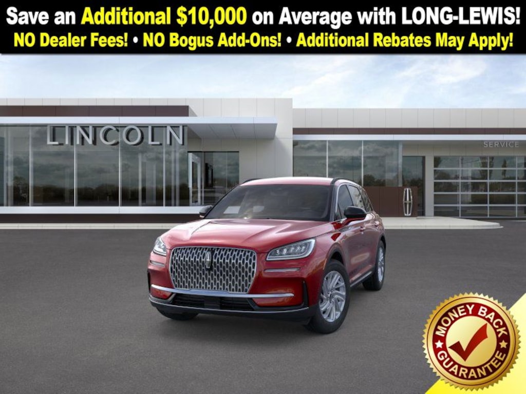 Red Carpet Metallic Tinted Clearcoat 2026 Lincoln Corsair Premiere FCT FWD 8-Speed Automatic 2.0L I4 4-Wheel Disc Brakes, 9 Speakers, ABS brakes, Air Conditioning, Alexa Built-In, Alloy wheels, AM/FM radio: SiriusXM with 360L, Apple CarPlay/Android Auto, Auto High-beam Headlights, Auto-dimming Rear-View mirror, Automatic temperature control, Brake assist, Bumpers: body-color, Compass, Delay-off headlights, Driver door bin, Driver vanity mirror, Dual front impact airbags, Dual front side impact airbags, Electronic Stability Control, Emergency communication system: 911 Assist, Exterior Parking Camera Rear, Four wheel independent suspension, Front anti-roll bar, Front Bucket Seats, Front Center Armrest, Front dual zone A/C, Front reading lights, Fully automatic headlights, Heated door mirrors, Heated front seats, Illuminated entry, Knee airbag, Leather steering wheel, Lincoln Soft Touch Heated Front Captain's Chairs, Low tire pressure warning, Memory seat, Navigation system: Connected Navigation (4-year trial), Occupant sensing airbag, Outside temperature display, Overhead airbag, Overhead console, Panic alarm, Passenger door bin, Passenger vanity mirror, Power door mirrors, Power driver seat, Power Liftgate, Power passenger seat, Power steering, Power windows, Radio data system, Radio: Lincoln Premium Audio System w/MP3, Rear anti-roll bar, Rear Parking Sensors, Rear reading lights, Rear seat center armrest, Rear window defroster, Rear window wiper, Remote keyless entry, Security system, SiriusXM w/360L Radio, Speed control, Speed-sensing steering, Speed-Sensitive Wipers, Split folding rear seat, Spoiler, Steering wheel mounted A/C controls, Steering wheel mounted audio controls, SYNC 4, Tachometer, Telescoping steering wheel, Tilt steering wheel, Traction control, Trip computer, Variably intermittent wipers, Wheels: 18" Warm Painted Alloy.