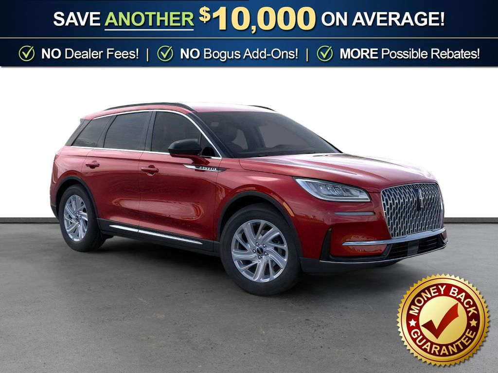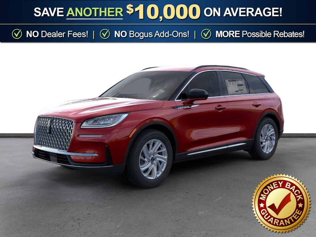 Red Carpet Metallic Tinted Clearcoat 2026 Lincoln Corsair Premiere FCT FWD 8-Speed Automatic 2.0L I4 4-Wheel Disc Brakes, 9 Speakers, ABS brakes, Air Conditioning, Alexa Built-In, Alloy wheels, AM/FM radio: SiriusXM with 360L, Apple CarPlay/Android Auto, Auto High-beam Headlights, Auto-dimming Rear-View mirror, Automatic temperature control, Brake assist, Bumpers: body-color, Compass, Delay-off headlights, Driver door bin, Driver vanity mirror, Dual front impact airbags, Dual front side impact airbags, Electronic Stability Control, Emergency communication system: 911 Assist, Exterior Parking Camera Rear, Four wheel independent suspension, Front anti-roll bar, Front Bucket Seats, Front Center Armrest, Front dual zone A/C, Front reading lights, Fully automatic headlights, Heated door mirrors, Heated front seats, Illuminated entry, Knee airbag, Leather steering wheel, Lincoln Soft Touch Heated Front Captain's Chairs, Low tire pressure warning, Memory seat, Navigation system: Connected Navigation (4-year trial), Occupant sensing airbag, Outside temperature display, Overhead airbag, Overhead console, Panic alarm, Passenger door bin, Passenger vanity mirror, Power door mirrors, Power driver seat, Power Liftgate, Power passenger seat, Power steering, Power windows, Radio data system, Radio: Lincoln Premium Audio System w/MP3, Rear anti-roll bar, Rear Parking Sensors, Rear reading lights, Rear seat center armrest, Rear window defroster, Rear window wiper, Remote keyless entry, Security system, SiriusXM w/360L Radio, Speed control, Speed-sensing steering, Speed-Sensitive Wipers, Split folding rear seat, Spoiler, Steering wheel mounted A/C controls, Steering wheel mounted audio controls, SYNC 4, Tachometer, Telescoping steering wheel, Tilt steering wheel, Traction control, Trip computer, Variably intermittent wipers, Wheels: 18" Warm Painted Alloy.