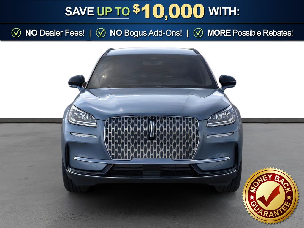 Whisper Blue Metallic Clearcoat 2026 Lincoln Corsair Premiere FCT FWD 8-Speed Automatic 2.0L I4 18" Bright Machined Aluminum Wheels, 19" Bright Machined Aluminum Wheels, 2 Additional USB Ports in Rear of Center Console, 360-Degree Camera, 4-Wheel Disc Brakes, 60/40 EasyFold Rear Seat w/Power Seatback Release, 9 Speakers, ABS brakes, Air Conditioning, Alexa Built-In, Alloy wheels, AM/FM radio: SiriusXM with 360L, Apple CarPlay/Android Auto, Auto High-beam Headlights, Auto-dimming Rear-View mirror, Automatic temperature control, Brake assist, Bumpers: body-color, Compass, Delay-off headlights, Driver door bin, Driver vanity mirror, Dual front impact airbags, Dual front side impact airbags, Electronic Stability Control, Emergency communication system: 911 Assist, Equipment Group 101A, Exterior Parking Camera Rear, Four wheel independent suspension, Frameless Auto Dimming Rearview Mirror, Front anti-roll bar, Front Bucket Seats, Front Center Armrest, Front dual zone A/C, Front Parking Sensors, Front reading lights, Fully automatic headlights, Hands-Free Liftgate, Heated door mirrors, Heated front seats, Heated Sideview Mirrors, Heated Steering Wheel, Heated/Ventilated Driver & Front Passenger Seats, Illuminated entry, Knee airbag, Leather steering wheel, Lincoln Soft Touch Heated Front Captain's Chairs, Low tire pressure warning, Memory seat, Micro-Perf Lincoln Soft Touch Captain's Chairs, Navigation system: Connected Navigation (4-year trial), Occupant sensing airbag, Outside temperature display, Overhead airbag, Overhead console, Panic alarm, Passenger door bin, Passenger vanity mirror, Phone As A Key (PAAK), Post-Collision Braking, Power door mirrors, Power driver seat, Power Liftgate, Power passenger seat, Power steering, Power Tilt/Telescoping Steering Column w/Memory, Power windows, Radio data system, Radio: Lincoln Premium Audio System w/MP3, Rain Sensing Wipers, Rear anti-roll bar, Rear Parking Sensors, Rear reading lights, Rear seat center armrest, Rear window defroster, Rear window wiper, Remote keyless entry, Reverse Brake Assist, Security system, SiriusXM w/360L Radio, Speed control, Speed-sensing steering, Speed-Sensitive Wipers, Split folding rear seat, Spoiler, Steering wheel mounted A/C controls, Steering wheel mounted audio controls, SYNC 4, Tachometer, Telescoping steering wheel, Tilt steering wheel, Traction control, Trip computer, Universal Garage Door Opener, Variably intermittent wipers, Wheels: 18" Warm Painted Alloy, Windshield Wiper De-Icer, Wireless Charging Pad.