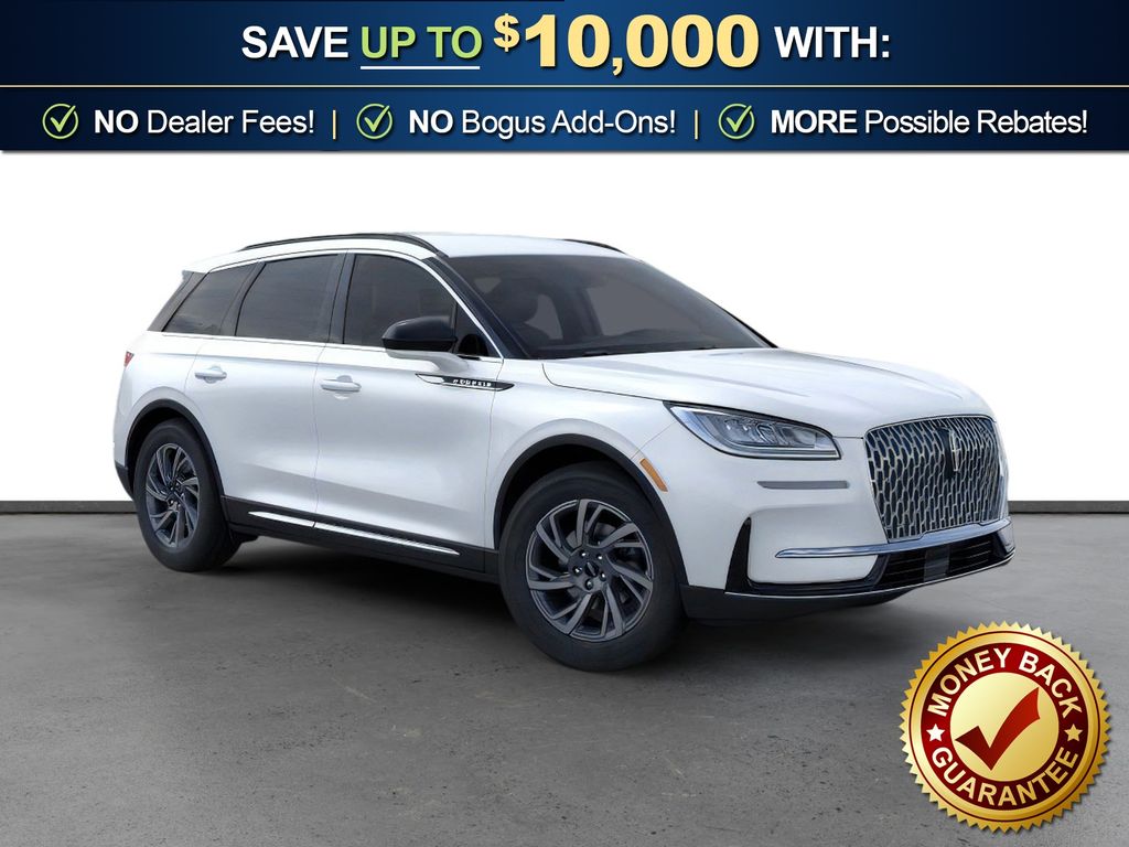 Pristine White Metallic Tri-Coat 2026 Lincoln Corsair Premiere FCT FWD 8-Speed Automatic 2.0L I4 18" Bright Machined Aluminum Wheels, 4-Wheel Disc Brakes, 9 Speakers, ABS brakes, Air Conditioning, Alexa Built-In, Alloy wheels, AM/FM radio: SiriusXM with 360L, Apple CarPlay/Android Auto, Auto High-beam Headlights, Auto-dimming Rear-View mirror, Automatic temperature control, Brake assist, Bumpers: body-color, Compass, Delay-off headlights, Driver door bin, Driver vanity mirror, Dual front impact airbags, Dual front side impact airbags, Electronic Stability Control, Emergency communication system: 911 Assist, Exterior Parking Camera Rear, Four wheel independent suspension, Front anti-roll bar, Front Bucket Seats, Front Center Armrest, Front dual zone A/C, Front reading lights, Fully automatic headlights, Heated door mirrors, Heated front seats, Illuminated entry, Knee airbag, Leather steering wheel, Lincoln Soft Touch Heated Front Captain's Chairs, Low tire pressure warning, Memory seat, Navigation system: Connected Navigation (4-year trial), Occupant sensing airbag, Outside temperature display, Overhead airbag, Overhead console, Panic alarm, Passenger door bin, Passenger vanity mirror, Power door mirrors, Power driver seat, Power Liftgate, Power passenger seat, Power steering, Power windows, Radio data system, Radio: Lincoln Premium Audio System w/MP3, Rear anti-roll bar, Rear Parking Sensors, Rear reading lights, Rear seat center armrest, Rear window defroster, Rear window wiper, Remote keyless entry, Security system, SiriusXM w/360L Radio, Speed control, Speed-sensing steering, Speed-Sensitive Wipers, Split folding rear seat, Spoiler, Steering wheel mounted A/C controls, Steering wheel mounted audio controls, SYNC 4, Tachometer, Telescoping steering wheel, Tilt steering wheel, Traction control, Trip computer, Variably intermittent wipers, Wheels: 18" Warm Painted Alloy.