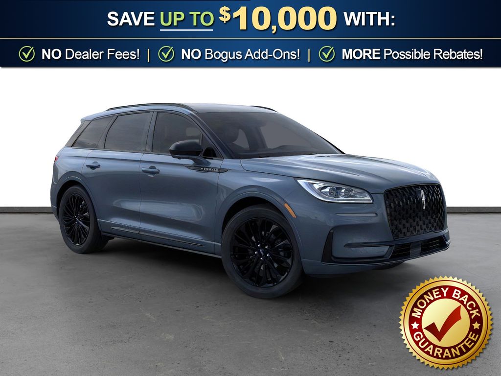 Whisper Blue Metallic Clearcoat 2026 Lincoln Corsair Plug-In Hybrid Grand Touring FCT AWD eCVT 2.5L i-VCT 2.5L i-VCT, 19" Bright Machined Aluminum Wheels, 4-Wheel Disc Brakes, 9 Speakers, ABS brakes, Adaptive suspension, Air Conditioning, Alexa Built-In, Alloy wheels, AM/FM radio: SiriusXM with 360L, Apple CarPlay/Android Auto, Auto High-beam Headlights, Auto-dimming Rear-View mirror, Automatic temperature control, Body-Color Exterior Elements, Brake assist, Bumpers: body-color, Compass, Delay-off headlights, Driver door bin, Driver vanity mirror, Dual front impact airbags, Dual front side impact airbags, Electronic Stability Control, Emergency communication system: 911 Assist, Exterior Parking Camera Rear, Four wheel independent suspension, Front anti-roll bar, Front Bucket Seats, Front Center Armrest, Front dual zone A/C, Front reading lights, Fully automatic headlights, Heated door mirrors, Heated front seats, Illuminated entry, Jet Appearance Package, Knee airbag, Leather steering wheel, Low tire pressure warning, Memory seat, Navigation system: Connected Navigation (4-year trial), Occupant sensing airbag, Outside temperature display, Overhead airbag, Overhead console, Panic alarm, Passenger door bin, Passenger vanity mirror, Pillar Black Exterior Elements, Power door mirrors, Power driver seat, Power Liftgate, Power moonroof: Panoramic Vista Roof, Power passenger seat, Power steering, Power windows, Premium Leather-Trimmed Heated Captain's Chairs, Radio data system, Radio: Lincoln Premium Audio System w/MP3, Rear anti-roll bar, Rear Parking Sensors, Rear reading lights, Rear seat center armrest, Rear window defroster, Rear window wiper, Remote keyless entry, Security system, SiriusXM w/360L Radio, Speed control, Speed-sensing steering, Speed-Sensitive Wipers, Split folding rear seat, Spoiler, Star Light Metallic Applique, Steering wheel mounted A/C controls, Steering wheel mounted audio controls, SYNC 4 Communications & Entertainment System, Tachometer, Telescoping steering wheel, Tilt steering wheel, Traction control, Trip computer, Variably intermittent wipers, Wheels: 20" Black Aluminum, 2.5L i-VCT.
