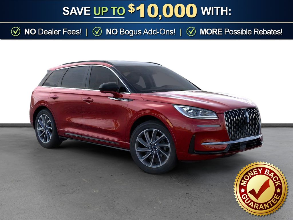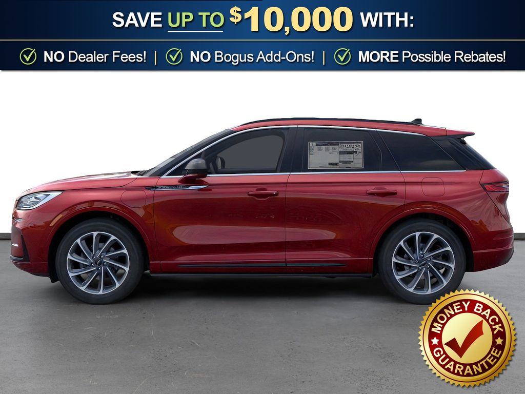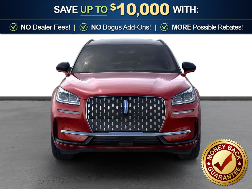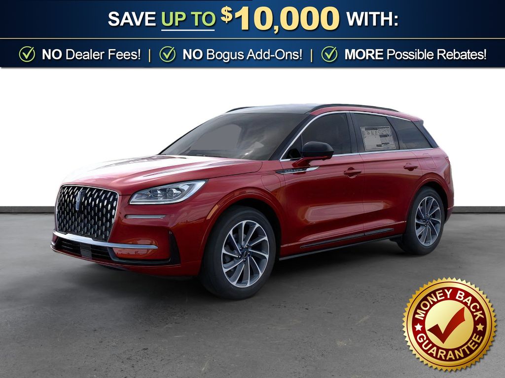 Red Carpet Metallic Tinted Clearcoat 2026 Lincoln Corsair Plug-In Hybrid Grand Touring FCT AWD eCVT 2.5L i-VCT 2.5L i-VCT, 19" Bright Machined Aluminum Wheels, 4-Wheel Disc Brakes, 9 Speakers, ABS brakes, Adaptive suspension, Air Conditioning, Alexa Built-In, Alloy wheels, AM/FM radio: SiriusXM with 360L, Apple CarPlay/Android Auto, Auto High-beam Headlights, Auto-dimming Rear-View mirror, Automatic temperature control, Brake assist, Bumpers: body-color, Compass, Delay-off headlights, Driver door bin, Driver vanity mirror, Dual front impact airbags, Dual front side impact airbags, Electronic Stability Control, Emergency communication system: 911 Assist, Exterior Parking Camera Rear, Four wheel independent suspension, Front anti-roll bar, Front Bucket Seats, Front Center Armrest, Front dual zone A/C, Front reading lights, Fully automatic headlights, Heated door mirrors, Heated front seats, Illuminated entry, Knee airbag, Leather steering wheel, Low tire pressure warning, Memory seat, Navigation system: Connected Navigation (4-year trial), Occupant sensing airbag, Outside temperature display, Overhead airbag, Overhead console, Panic alarm, Passenger door bin, Passenger vanity mirror, Power door mirrors, Power driver seat, Power Liftgate, Power moonroof: Panoramic Vista Roof, Power passenger seat, Power steering, Power windows, Premium Leather-Trimmed Heated Captain's Chairs, Radio data system, Radio: Lincoln Premium Audio System w/MP3, Rear anti-roll bar, Rear Parking Sensors, Rear reading lights, Rear seat center armrest, Rear window defroster, Rear window wiper, Remote keyless entry, Security system, SiriusXM w/360L Radio, Speed control, Speed-sensing steering, Speed-Sensitive Wipers, Split folding rear seat, Spoiler, Steering wheel mounted A/C controls, Steering wheel mounted audio controls, SYNC 4 Communications & Entertainment System, Tachometer, Telescoping steering wheel, Tilt steering wheel, Traction control, Trip computer, Variably intermittent wipers, 2.5L i-VCT.