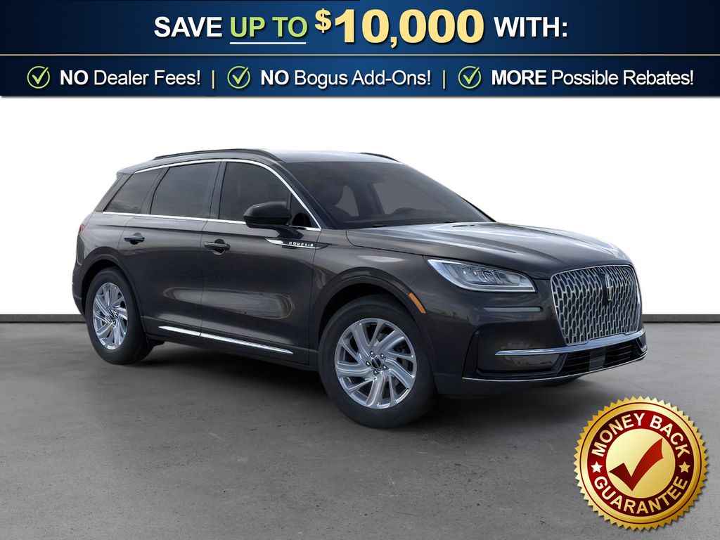 Infinite Black Metallic Clearcoat 2026 Lincoln Corsair Premiere FCT FWD 8-Speed Automatic 2.0L I4 4-Wheel Disc Brakes, 9 Speakers, ABS brakes, Air Conditioning, Alexa Built-In, Alloy wheels, AM/FM radio: SiriusXM with 360L, Apple CarPlay/Android Auto, Auto High-beam Headlights, Auto-dimming Rear-View mirror, Automatic temperature control, Brake assist, Bumpers: body-color, Compass, Delay-off headlights, Driver door bin, Driver vanity mirror, Dual front impact airbags, Dual front side impact airbags, Electronic Stability Control, Emergency communication system: 911 Assist, Equipment Group 100A, Exterior Parking Camera Rear, Four wheel independent suspension, Front anti-roll bar, Front Bucket Seats, Front Center Armrest, Front dual zone A/C, Front reading lights, Fully automatic headlights, Heated door mirrors, Heated front seats, Illuminated entry, Knee airbag, Leather steering wheel, Lincoln Soft Touch Heated Front Captain's Chairs, Low tire pressure warning, Memory seat, Navigation system: Connected Navigation (4-year trial), Occupant sensing airbag, Outside temperature display, Overhead airbag, Overhead console, Panic alarm, Passenger door bin, Passenger vanity mirror, Power door mirrors, Power driver seat, Power Liftgate, Power passenger seat, Power steering, Power windows, Radio data system, Radio: Lincoln Premium Audio System w/MP3, Rear anti-roll bar, Rear Parking Sensors, Rear reading lights, Rear seat center armrest, Rear window defroster, Rear window wiper, Remote keyless entry, Security system, SiriusXM w/360L Radio, Speed control, Speed-sensing steering, Speed-Sensitive Wipers, Split folding rear seat, Spoiler, Steering wheel mounted A/C controls, Steering wheel mounted audio controls, SYNC 4, Tachometer, Telescoping steering wheel, Tilt steering wheel, Traction control, Trip computer, Variably intermittent wipers, Wheels: 18" Warm Painted Alloy.