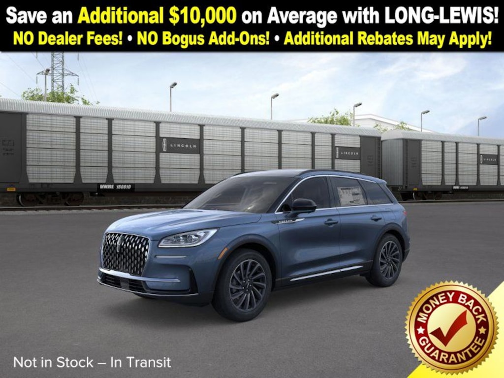 Dealer Discount of $1,879 off MSRP Whisper Blue Metallic Clearcoat 2026 Lincoln Corsair Reserve FWD 8-Speed Automatic 2.0L I4 19" Bright Machined Aluminum Wheels, 4-Wheel Disc Brakes, 9 Speakers, ABS brakes, Air Conditioning, Alexa Built-In, Alloy wheels, AM/FM radio: SiriusXM with 360L, Apple CarPlay/Android Auto, Auto High-beam Headlights, Auto-dimming Rear-View mirror, Automatic temperature control, Brake assist, Bumpers: body-color, Compass, Delay-off headlights, Driver door bin, Driver vanity mirror, Dual front impact airbags, Dual front side impact airbags, Electronic Stability Control, Emergency communication system: 911 Assist, Exterior Parking Camera Rear, Four wheel independent suspension, Front anti-roll bar, Front Bucket Seats, Front Center Armrest, Front dual zone A/C, Front reading lights, Fully automatic headlights, Heated door mirrors, Heated front seats, Illuminated entry, Knee airbag, Leather steering wheel, Low tire pressure warning, Memory seat, Navigation system: Connected Navigation (4-year trial), Occupant sensing airbag, Outside temperature display, Overhead airbag, Overhead console, Panic alarm, Panoramic Vista Roof w/Power Shade, Passenger door bin, Passenger vanity mirror, Power door mirrors, Power driver seat, Power Liftgate, Power passenger seat, Power steering, Power windows, Premium Leather-Trimmed Heated Captain's Chairs, Radio data system, Radio: Lincoln Premium Audio System w/MP3, Rear anti-roll bar, Rear Parking Sensors, Rear reading lights, Rear seat center armrest, Rear window defroster, Rear window wiper, Remote keyless entry, Security system, SiriusXM w/360L Radio, Speed control, Speed-sensing steering, Speed-Sensitive Wipers, Split folding rear seat, Spoiler, Steering wheel mounted A/C controls, Steering wheel mounted audio controls, SYNC 4, Tachometer, Telescoping steering wheel, Tilt steering wheel, Traction control, Trip computer, Variably intermittent wipers.