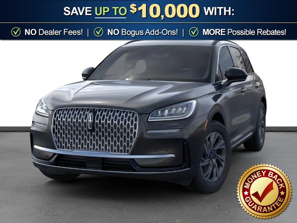 Infinite Black Metallic Clearcoat 2026 Lincoln Corsair Premiere FCT FWD 8-Speed Automatic 2.0L Turbocharged 4-Wheel Disc Brakes, 9 Speakers, ABS brakes, Air Conditioning, Alexa Built-In, Alloy wheels, AM/FM radio: SiriusXM with 360L, Apple CarPlay/Android Auto, Auto High-beam Headlights, Auto-dimming Rear-View mirror, Automatic temperature control, Brake assist, Bumpers: body-color, Compass, Connected Navigation - 4 Year Included Duration, Delay-off headlights, Driver door bin, Driver vanity mirror, Dual front impact airbags, Dual front side impact airbags, Electronic Stability Control, Emergency communication system: 911 Assist, Equipment Group 100A Premiere I, Four wheel independent suspension, Front anti-roll bar, Front Bucket Seats, Front Center Armrest, Front dual zone A/C, Front reading lights, Fully automatic headlights, Heated door mirrors, Heated Front Seats, Heated front seats, Illuminated entry, Knee airbag, Leather steering wheel, Lincoln Soft Touch Front Captain's Chairs, Low tire pressure warning, Memory seat, Navigation system: Connected Navigation (4-year trial), Occupant sensing airbag, Outside temperature display, Overhead airbag, Overhead console, Panic alarm, Passenger door bin, Passenger vanity mirror, Power door mirrors, Power driver seat, Power Liftgate, Power passenger seat, Power steering, Power windows, Radio data system, Radio: Lincoln Premium Audio System, Rear anti-roll bar, Rear Parking Sensors, Rear reading lights, Rear seat center armrest, Rear window defroster, Rear window wiper, Remote keyless entry, Security system, SiriusXM with 360L, Speed control, Speed-sensing steering, Speed-Sensitive Wipers, Split folding rear seat, Spoiler, Steering wheel mounted A/C controls, Steering wheel mounted audio controls, SYNC 4, Tachometer, Telescoping steering wheel, Tilt steering wheel, Traction control, Trip computer, Variably intermittent wipers, Wheels: 18" Bright Machined Aluminum with Dark Tarnish Finish, Wheels: 18" Warm Alloy-Painted.