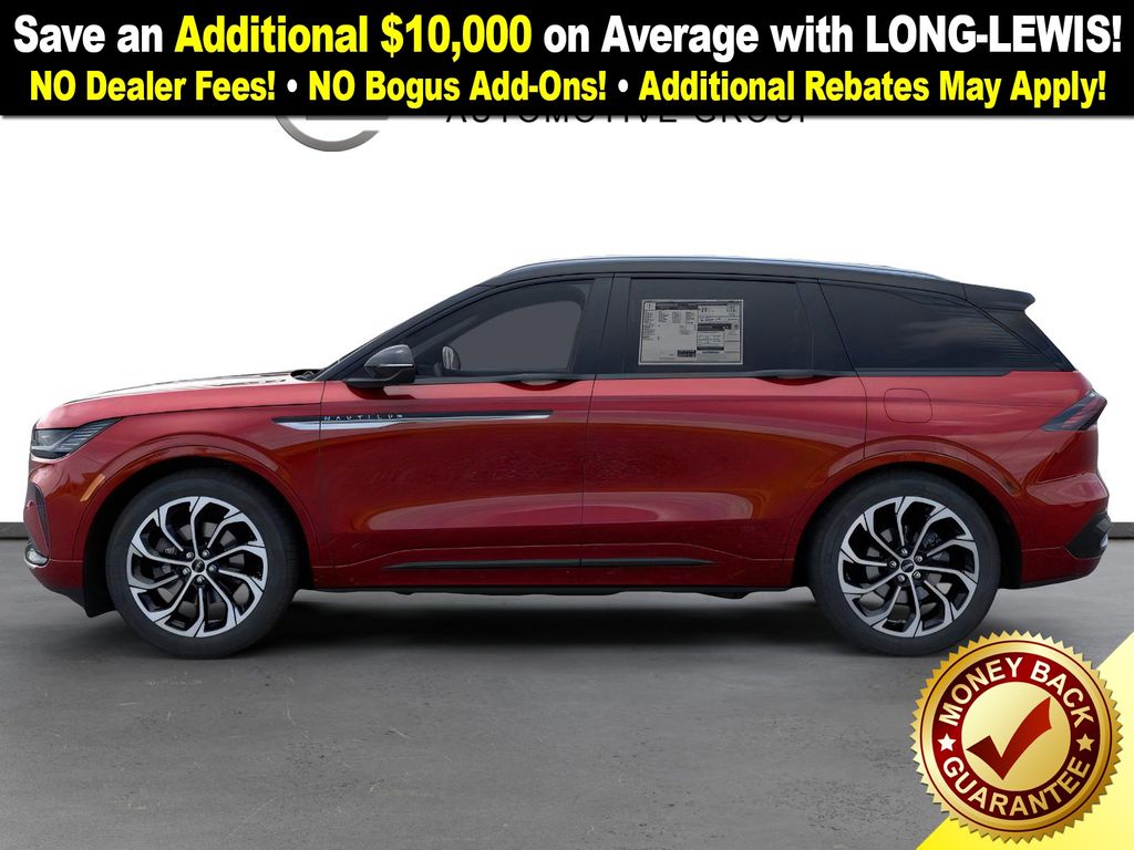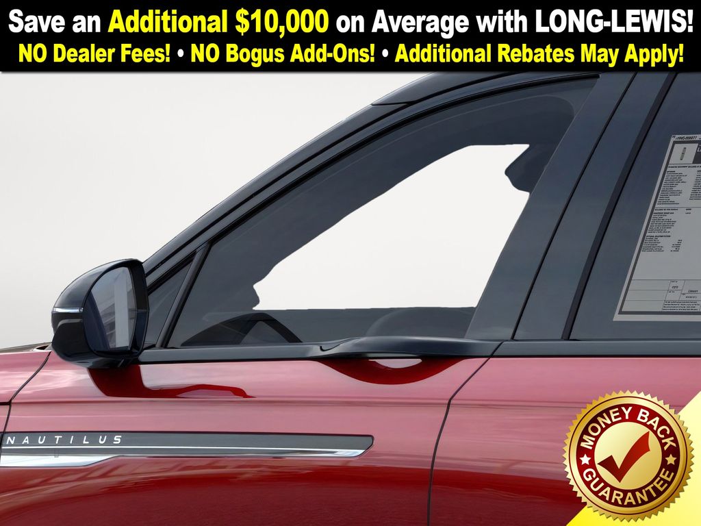 Red Carpet Metallic Tinted Clearcoat 2026 Lincoln Nautilus Reserve NLT AWD 8-Speed Automatic 2.0L GTDi 10 Speakers, 110V Power Converter, 4-Wheel Disc Brakes, ABS brakes, Adaptive suspension, Air Conditioning, Alloy wheels, AM/FM radio: SiriusXM with 360L, Apple CarPlay/Android Auto, Auto Air Refresh, Auto High-beam Headlights, Auto tilt-away steering wheel, Auto-dimming Rear-View mirror, Automatic temperature control, BlueCruise Equipped (4-Years Included), Brake assist, Bumpers: body-color, Compass, Delay-off headlights, Digital Scent, Driver door bin, Driver vanity mirror, Dual front impact airbags, Dual front side impact airbags, Electronic Stability Control, Emergency communication system: 911 Assist, Equipment Group 203A Reserve III, Exterior Parking Camera Rear, Four wheel independent suspension, Front anti-roll bar, Front Bucket Seats, Front Center Armrest w/Storage, Front dual zone A/C, Front reading lights, Fully automatic headlights, Garage door transmitter, Hands-Free Power Liftgate, Heated door mirrors, Heated front seats, Heated steering wheel, Illuminated entry, Knee airbag, Leather steering wheel, Lincoln Connectivity Package, Lincoln Digital Experience, Low tire pressure warning, Memory seat, Navigation System, Occupant sensing airbag, Outside temperature display, Overhead airbag, Overhead console, Panic alarm, Panoramic Vista Roof with Powershade, Passenger door bin, Passenger vanity mirror, Power door mirrors, Power driver seat, Power Liftgate, Power passenger seat, Power steering, Power windows, Premium Leather Trimmed Captain's Chairs, Premium Leather-Trimmed Heated/Ventilated Captain's Chairs, Radio data system, Radio: AM/FM Revel Audio System, Radio: AM/FM Revel Ultima 3D Audio System, Rain sensing wipers, Rear anti-roll bar, Rear Heated Seats with Switch Control, Rear reading lights, Rear seat center armrest, Rear window defroster, Rear window wiper, Remote keyless entry, Security system, SiriusXM with 360L, SiriusXM with 360L (4 Year Plan), Speed control, Speed-sensing steering, Speed-Sensitive Wipers, Split folding rear seat, Spoiler, Steering wheel memory, Steering wheel mounted audio controls, Tachometer, Telescoping steering wheel, Tilt steering wheel, Traction control, Trip computer, Turn signal indicator mirrors, Variably intermittent wipers, Ventilated front seats.
