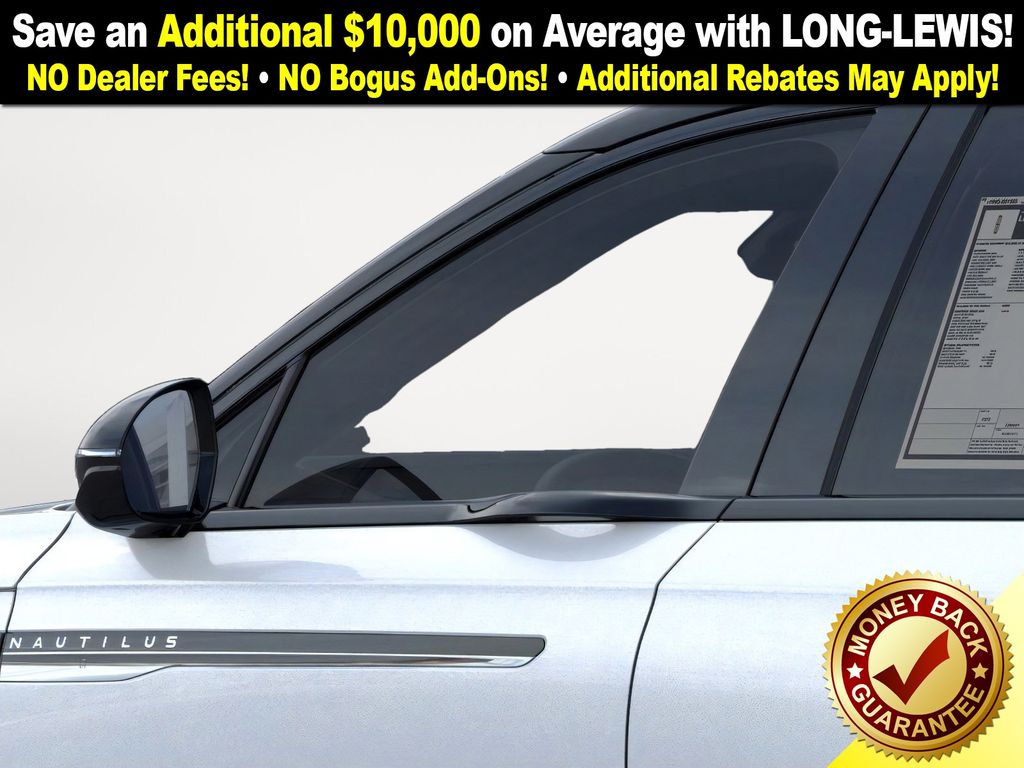 White Platinum Clearcoat Metallic 2026 Lincoln Nautilus Reserve FCT AWD 8-Speed Automatic 2.0L GTDi 10 Speakers, 110V Power Converter, 4-Wheel Disc Brakes, ABS brakes, Adaptive suspension, Air Conditioning, Alloy wheels, AM/FM radio: SiriusXM with 360L, Apple CarPlay/Android Auto, Auto Air Refresh, Auto High-beam Headlights, Auto tilt-away steering wheel, Auto-dimming Rear-View mirror, Automatic temperature control, BlueCruise Equipped (4-Years Included), Brake assist, Bumpers: body-color, Compass, Delay-off headlights, Digital Scent, Driver door bin, Driver vanity mirror, Dual front impact airbags, Dual front side impact airbags, Electronic Stability Control, Emergency communication system: 911 Assist, Equipment Group 203A Reserve III, Exterior Parking Camera Rear, Four wheel independent suspension, Front anti-roll bar, Front Bucket Seats, Front Center Armrest w/Storage, Front dual zone A/C, Front reading lights, Fully automatic headlights, Garage door transmitter, Hands-Free Power Liftgate, Heated door mirrors, Heated front seats, Heated steering wheel, Illuminated entry, Knee airbag, Leather steering wheel, Lincoln Connectivity Package, Lincoln Digital Experience, Low tire pressure warning, Memory seat, Navigation System, Occupant sensing airbag, Outside temperature display, Overhead airbag, Overhead console, Panic alarm, Panoramic Vista Roof with Powershade, Passenger door bin, Passenger vanity mirror, Power door mirrors, Power driver seat, Power Liftgate, Power passenger seat, Power steering, Power windows, Premium Leather Trimmed Captain's Chairs, Premium Leather-Trimmed Heated/Ventilated Captain's Chairs, Radio data system, Radio: AM/FM Revel Audio System, Radio: AM/FM Revel Ultima 3D Audio System, Rain sensing wipers, Rear anti-roll bar, Rear Heated Seats with Switch Control, Rear reading lights, Rear seat center armrest, Rear window defroster, Rear window wiper, Remote keyless entry, Security system, SiriusXM with 360L, SiriusXM with 360L (4 Year Plan), Speed control, Speed-sensing steering, Speed-Sensitive Wipers, Split folding rear seat, Spoiler, Steering wheel memory, Steering wheel mounted audio controls, Tachometer, Telescoping steering wheel, Tilt steering wheel, Traction control, Trip computer, Turn signal indicator mirrors, Variably intermittent wipers, Ventilated front seats.