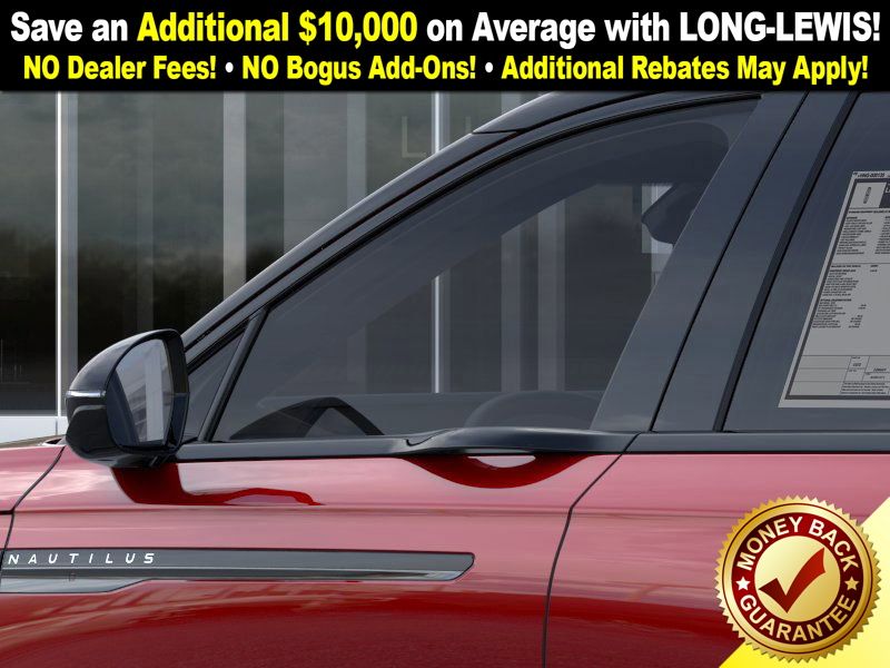 Red Carpet Metallic Tinted Clearcoat 2026 Lincoln Nautilus Reserve FCT AWD 8-Speed Automatic 2.0L GTDi 10 Speakers, 110V Power Converter, 4-Wheel Disc Brakes, ABS brakes, Adaptive suspension, Air Conditioning, Alloy wheels, AM/FM radio: SiriusXM with 360L, Apple CarPlay/Android Auto, Auto Air Refresh, Auto High-beam Headlights, Auto tilt-away steering wheel, Auto-dimming Rear-View mirror, Automatic temperature control, Black Exterior Elements, BlueCruise Equipped (4-Years Included), Body-Color Exterior Elements, Brake assist, Bumpers: body-color, Compass, Delay-off headlights, Digital Scent, Driver door bin, Driver vanity mirror, Dual front impact airbags, Dual front side impact airbags, Electronic Stability Control, Emergency communication system: 911 Assist, Equipment Group 203A Reserve III, Exterior Parking Camera Rear, Four wheel independent suspension, Front anti-roll bar, Front Bucket Seats, Front Center Armrest w/Storage, Front dual zone A/C, Front reading lights, Fully automatic headlights, Garage door transmitter, Hands-Free Power Liftgate, Heated door mirrors, Heated front seats, Heated steering wheel, Illuminated entry, Jet Appearance Package, Knee airbag, Leather steering wheel, Lincoln Connectivity Package, Lincoln Digital Experience, Low tire pressure warning, Memory seat, Navigation System, Occupant sensing airbag, Outside temperature display, Overhead airbag, Overhead console, Panic alarm, Passenger door bin, Passenger vanity mirror, Power door mirrors, Power driver seat, Power Liftgate, Power passenger seat, Power steering, Power windows, Premium Leather Trimmed Captain's Chairs, Radio data system, Radio: AM/FM Revel Audio System, Radio: AM/FM Revel Ultima 3D Audio System, Rain sensing wipers, Rear anti-roll bar, Rear reading lights, Rear seat center armrest, Rear window defroster, Rear window wiper, Remote keyless entry, Security system, Speed control, Speed-sensing steering, Speed-Sensitive Wipers, Split folding rear seat, Spoiler, Steering wheel memory, Steering wheel mounted audio controls, Tachometer, Telescoping steering wheel, Tilt steering wheel, Traction control, Trip computer, Turn signal indicator mirrors, Variably intermittent wipers, Ventilated front seats, Wheels: 21" Bright Machined Aluminum.