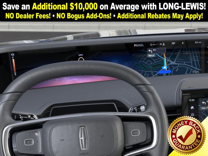 Equipment Group 102A (110V Power Converter, 19" Bright Machined Aluminum Wheels, Auto Air Refresh, BlueCruise Equipped (4-Years Included), Digital Scent, Hands-Free Power Liftgate, Lincoln Soft Touch Heated Front Captain's Chairs, Panoramic Vista Roof with Powershade, Radio: AM/FM Revel Audio System, Rear Heated Seats with Switch Control, SiriusXM with 360L, and Ventilated Front Seats), Lincoln Connectivity Package, 10 Speakers, 4-Wheel Disc Brakes, ABS brakes, Air Conditioning, Alloy wheels, AM/FM radio: SiriusXM with 360L, Apple CarPlay/Android Auto, Auto High-beam Headlights, Auto tilt-away steering wheel, Auto-dimming Rear-View mirror, Automatic temperature control, Brake assist, Bumpers: body-color, Compass, Delay-off headlights, Driver door bin, Driver vanity mirror, Dual front impact airbags, Dual front side impact airbags, Electronic Stability Control, Emergency communication system: 911 Assist, Exterior Parking Camera Rear, Four wheel independent suspension, Front anti-roll bar, Front Bucket Seats, Front Center Armrest w/Storage, Front dual zone A/C, Front reading lights, Fully automatic headlights, Garage door transmitter, Heated door mirrors, Heated front seats, Heated steering wheel, Illuminated entry, Knee airbag, Leather steering wheel, Lincoln Digital Experience, Low tire pressure warning, Memory seat, Navigation System, Occupant sensing airbag, Outside temperature display, Overhead airbag, Overhead console, Panic alarm, Passenger door bin, Passenger vanity mirror, Power door mirrors, Power driver seat, Power Liftgate, Power passenger seat, Power steering, Power windows, Radio data system, Radio: AM/FM Premium Audio, Rain sensing wipers, Rear anti-roll bar, Rear reading lights, Rear seat center armrest, Rear window defroster, Rear window wiper, Remote keyless entry, Security system, SiriusXM with 360L (4 Year Plan), Speed control, Speed-sensing steering, Speed-Sensitive Wipers, Split folding rear seat, Spoiler, Steering wheel memory, Steering wheel mounted audio controls, Tachometer, Telescoping steering wheel, Tilt steering wheel, Traction control, Trip computer, Turn signal indicator mirrors, Variably intermittent wipers, and Wheels: 20" Bright Machined Aluminum. Price includes: $1000 - Wishlist Bonus Cash. Exp. 01/02/2026
