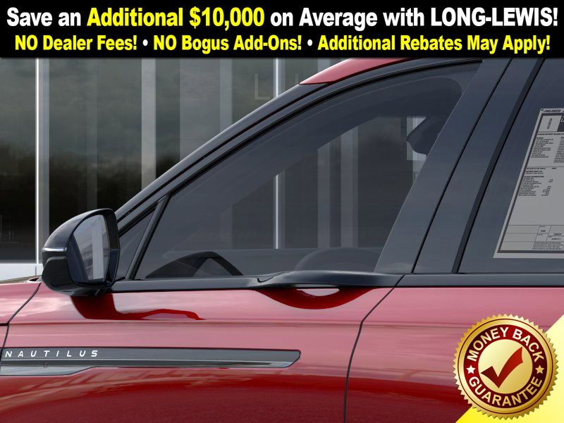 Red Carpet Metallic Tinted Clearcoat 2026 Lincoln Nautilus Premiere FCT AWD 8-Speed Automatic 2.0L GTDi 10 Speakers, 19" Bright Machined Aluminum Wheels, 4-Wheel Disc Brakes, ABS brakes, Air Conditioning, Alloy wheels, AM/FM radio: SiriusXM with 360L, Apple CarPlay/Android Auto, Auto High-beam Headlights, Auto tilt-away steering wheel, Auto-dimming Rear-View mirror, Automatic temperature control, Black Exterior Elements, BlueCruise Equipped (4-Years Included), Body-Color Exterior Elements, Brake assist, Bumpers: body-color, Compass, Delay-off headlights, Driver door bin, Driver vanity mirror, Dual front impact airbags, Dual front side impact airbags, Electronic Stability Control, Emergency communication system: 911 Assist, Equipment Group 101A, Exterior Parking Camera Rear, Four wheel independent suspension, Front anti-roll bar, Front Bucket Seats, Front Center Armrest w/Storage, Front dual zone A/C, Front reading lights, Fully automatic headlights, Garage door transmitter, Heated door mirrors, Heated front seats, Heated steering wheel, Illuminated entry, Jet Appearance Package, Knee airbag, Leather steering wheel, Lincoln Connectivity Package, Lincoln Digital Experience, Lincoln Soft Touch Heated Front Captain's Chairs, Low tire pressure warning, Memory seat, Navigation System, Occupant sensing airbag, Outside temperature display, Overhead airbag, Overhead console, Panic alarm, Passenger door bin, Passenger vanity mirror, Power door mirrors, Power driver seat, Power Liftgate, Power passenger seat, Power steering, Power windows, Radio data system, Radio: AM/FM Premium Audio, Rain sensing wipers, Rear anti-roll bar, Rear reading lights, Rear seat center armrest, Rear window defroster, Rear window wiper, Remote keyless entry, Security system, Speed control, Speed-sensing steering, Speed-Sensitive Wipers, Split folding rear seat, Spoiler, Steering wheel memory, Steering wheel mounted audio controls, Tachometer, Telescoping steering wheel, Tilt steering wheel, Traction control, Trip computer, Turn signal indicator mirrors, Variably intermittent wipers, Wheels: 20" Bright Machined Aluminum.