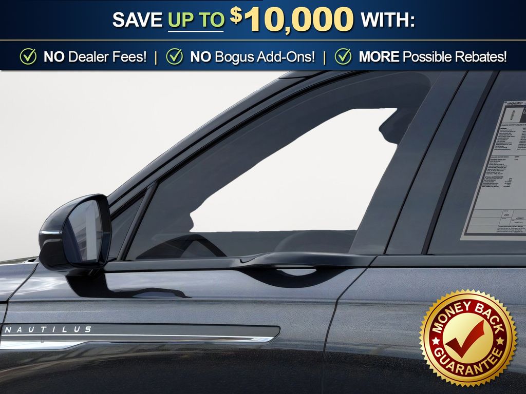 Infinite Black Metallic Clearcoat 2026 Lincoln Nautilus Reserve NLT AWD 8-Speed Automatic 2.0L GTDi 10 Speakers, 110V Power Converter, 4-Wheel Disc Brakes, ABS brakes, Adaptive suspension, Air Conditioning, Alloy wheels, AM/FM radio: SiriusXM with 360L, Apple CarPlay/Android Auto, Auto Air Refresh, Auto High-beam Headlights, Auto tilt-away steering wheel, Auto-dimming Rear-View mirror, Automatic temperature control, BlueCruise Equipped (4-Years Included), Brake assist, Bumpers: body-color, Compass, Delay-off headlights, Digital Scent, Driver door bin, Driver vanity mirror, Dual front impact airbags, Dual front side impact airbags, Electronic Stability Control, Emergency communication system: 911 Assist, Equipment Group 203A Reserve III, Exterior Parking Camera Rear, Four wheel independent suspension, Front anti-roll bar, Front Bucket Seats, Front Center Armrest w/Storage, Front dual zone A/C, Front reading lights, Fully automatic headlights, Garage door transmitter, Hands-Free Power Liftgate, Heated door mirrors, Heated front seats, Heated steering wheel, Illuminated entry, Knee airbag, Leather steering wheel, Lincoln Connectivity Package, Lincoln Digital Experience, Low tire pressure warning, Memory seat, Navigation System, Occupant sensing airbag, Outside temperature display, Overhead airbag, Overhead console, Panic alarm, Panoramic Vista Roof with Powershade, Passenger door bin, Passenger vanity mirror, Power door mirrors, Power driver seat, Power Liftgate, Power passenger seat, Power steering, Power windows, Premium Leather Trimmed Captain's Chairs, Premium Leather-Trimmed Heated/Ventilated Captain's Chairs, Radio data system, Radio: AM/FM Revel Audio System, Radio: AM/FM Revel Ultima 3D Audio System, Rain sensing wipers, Rear anti-roll bar, Rear Heated Seats with Switch Control, Rear reading lights, Rear seat center armrest, Rear window defroster, Rear window wiper, Remote keyless entry, Security system, SiriusXM with 360L, SiriusXM with 360L (4 Year Plan), Speed control, Speed-sensing steering, Speed-Sensitive Wipers, Split folding rear seat, Spoiler, Steering wheel memory, Steering wheel mounted audio controls, Tachometer, Telescoping steering wheel, Tilt steering wheel, Traction control, Trip computer, Turn signal indicator mirrors, Variably intermittent wipers, Ventilated front seats, Wheels: 21" Bright Machined Aluminum.