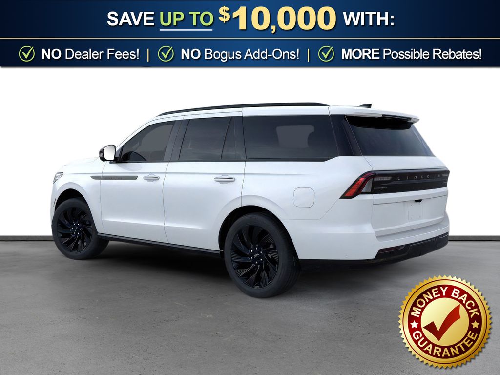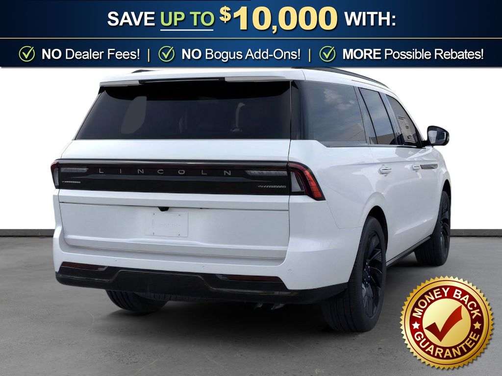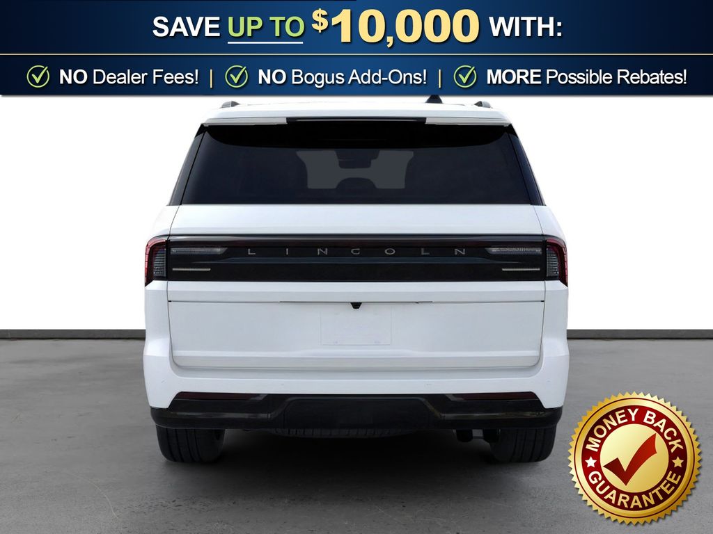 Star White Metallic Tri-Coat 2026 Lincoln Navigator Reserve fctp 4WD 10-Speed Automatic 3.5L V6 4WD, Blk Onyx Prem Lthr Surf Leather, 26mm Engine Radiator, 28 Speakers, 2nd Row Heated & Ventilated Dual Captain's Chair, 3rd row seats: split-bench, 4-Wheel Disc Brakes, ABS brakes, Adaptive suspension, Air Conditioning, Alloy wheels, AM/FM radio: SiriusXM with 360L, Apple CarPlay/Android Auto, Audio memory, Auto Heated/Ventilated Premium Leather Captain's Chairs, Auto High-beam Headlights, Auto Start-Stop Technology, Auto tilt-away steering wheel, Auto-dimming door mirrors, Auto-dimming Rear-View mirror, Auto-leveling suspension, Automatic temperature control, Black Accent Badge, Black Accent Interior Pack, Black Beltline Molding, Black Painted Roof Rails, BlueCruise Equipped (4-Years Included), Brake assist, Bumpers: body-color, Compass, Delay-off headlights, Driver door bin, Driver vanity mirror, Driver's Seat Mounted Armrest, Dual front impact airbags, Dual front side impact airbags, Electronic Stability Control, Emergency communication system: 911 Assist, Exterior Parking Camera Rear, Four wheel independent suspension, Front anti-roll bar, Front Bucket Seats, Front Bumper Fascia, Front dual zone A/C, Front reading lights, Fully automatic headlights, Garage door transmitter, Heated door mirrors, Heated front seats, Heated rear seats, Heated steering wheel, Heavy-Duty Trailer Tow Package, HVAC memory, Illuminated entry, Jet Appearance Package, Leather steering wheel, Lincoln App, Lincoln Connectivity Package (4-Years Included), Lincoln Digital Experience, Lincoln Lit Star, Lincoln Security Package, Low tire pressure warning, Memory seat, Navigation system: Connected Navigation (1-year trial), Occupant sensing airbag, Outside temperature display, Overhead airbag, Overhead console, Panic alarm, Passenger door bin, Passenger seat mounted armrest, Passenger vanity mirror, Power adjustable rear head restraints, Power door mirrors, Power driver seat, Power moonroof: Panoramic Vista Roof, Power passenger seat, Power steering, Power windows, Radio data system, Radio: Revel Ultima 3D Audio System, Rain sensing wipers, Rear air conditioning, Rear anti-roll bar, Rear audio controls, Rear reading lights, Rear window defroster, Rear window wiper, Reclining 3rd row seat, Remote keyless entry, Security system, SiriusXM with 360L (3 Months Trial), Speed control, Speed-sensing steering, Speed-Sensitive Wipers, Split folding rear seat, Spoiler, Steering wheel memory, Steering wheel mounted audio controls, Tachometer, Telescoping steering wheel, Tilt steering wheel, Traction control, Trailer Brake Controller, Trip computer, Turn signal indicator mirrors, Unique Lincoln Grille Pillar Black Surround, Variably intermittent wipers, Ventilated front seats, Wheels: 22" Dark Tarnished Aluminum, Wheels: 22" High-Gloss Ebony Aluminum, 4WD, Blk Onyx Prem Lthr Surf Leather.