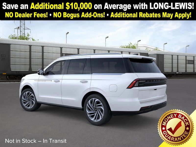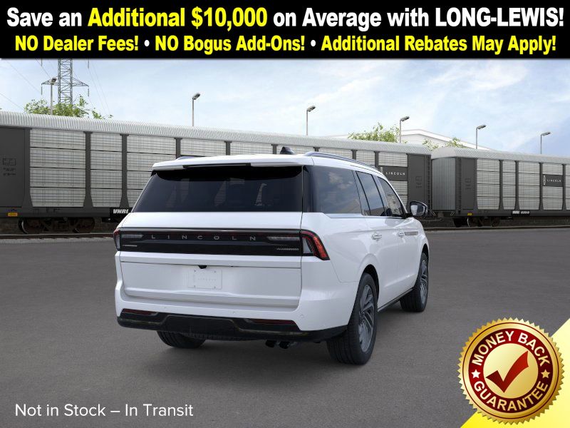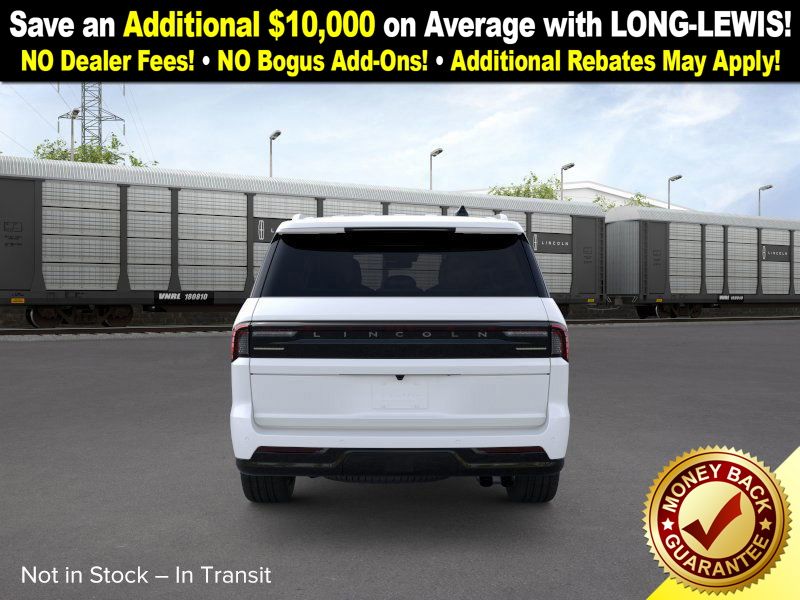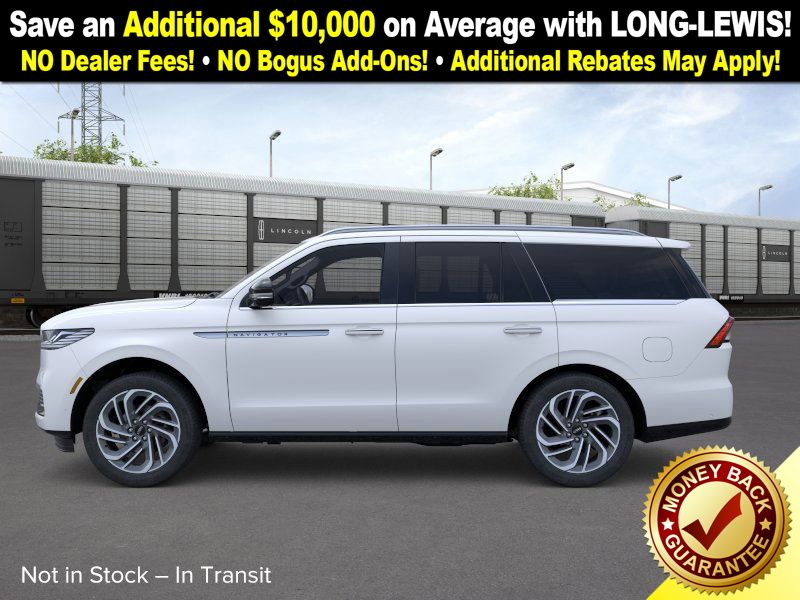 Star White Metallic Tri-Coat 2026 Lincoln Navigator Reserve NLT 4WD 10-Speed Automatic 3.5L V6 4WD, Hot Coco Prem Ltr Surf Leather, 26mm Engine Radiator, 28 Speakers, 2nd Row Heated & Ventilated Dual Captain's Chair, 3rd row seats: split-bench, 4-Wheel Disc Brakes, ABS brakes, Adaptive suspension, Air Conditioning, Alloy wheels, AM/FM radio: SiriusXM with 360L, Apple CarPlay/Android Auto, Audio memory, Auto Heated/Ventilated Premium Leather Captain's Chairs, Auto High-beam Headlights, Auto Start-Stop Technology, Auto tilt-away steering wheel, Auto-dimming door mirrors, Auto-dimming Rear-View mirror, Auto-leveling suspension, Automatic temperature control, Brake assist, Bumpers: body-color, Compass, Delay-off headlights, Driver door bin, Driver vanity mirror, Driver's Seat Mounted Armrest, Dual front impact airbags, Dual front side impact airbags, Electronic Stability Control, Emergency communication system: 911 Assist, Exterior Parking Camera Rear, Four wheel independent suspension, Front anti-roll bar, Front Bucket Seats, Front dual zone A/C, Front reading lights, Fully automatic headlights, Garage door transmitter, Heated door mirrors, Heated front seats, Heated rear seats, Heated steering wheel, Heavy-Duty Trailer Tow Package, HVAC memory, Illuminated entry, Leather steering wheel, Lincoln Connect, Lincoln Connectivity Package (4-Years Included), Lincoln Digital Experience, Lincoln Security Package, Low tire pressure warning, Memory seat, Navigation system: Connected Navigation (1-year trial), Occupant sensing airbag, Outside temperature display, Overhead airbag, Overhead console, Panic alarm, Passenger door bin, Passenger seat mounted armrest, Passenger vanity mirror, Power adjustable rear head restraints, Power door mirrors, Power driver seat, Power moonroof: Panoramic Vista Roof, Power passenger seat, Power steering, Power windows, Radio data system, Radio: Revel Ultima 3D Audio System, Rain sensing wipers, Rear air conditioning, Rear anti-roll bar, Rear audio controls, Rear reading lights, Rear window defroster, Rear window wiper, Reclining 3rd row seat, Remote keyless entry, Security system, SiriusXM with 360L (3 Months Trial), Speed control, Speed-sensing steering, Speed-Sensitive Wipers, Split folding rear seat, Spoiler, Steering wheel memory, Steering wheel mounted audio controls, Tachometer, Telescoping steering wheel, Tilt steering wheel, Traction control, Trailer Brake Controller, Trip computer, Turn signal indicator mirrors, Variably intermittent wipers, Ventilated front seats, Wheels: 22" Dark Tarnished Aluminum, 4WD, Hot Coco Prem Ltr Surf Leather.