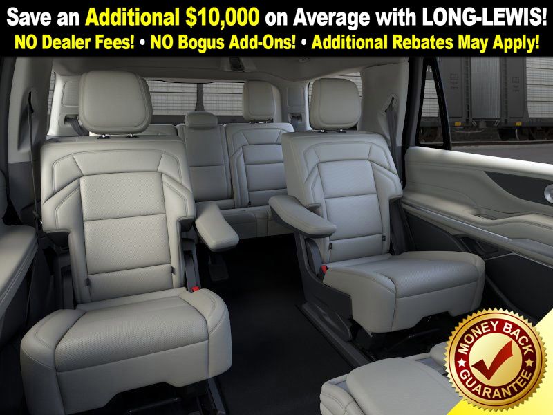 Lincoln Connectivity Package (4-Years Included), Lincoln Security Package, 4WD, Md Lt Spc Gry Prm Lth Sur Leather, 28 Speakers, 3rd row seats: split-bench, 4-Wheel Disc Brakes, ABS brakes, Adaptive suspension, Air Conditioning, Alloy wheels, AM/FM radio: SiriusXM with 360L, Apple CarPlay/Android Auto, Audio memory, Auto Heated/Ventilated Premium Leather Captain's Chairs, Auto High-beam Headlights, Auto Start-Stop Technology, Auto tilt-away steering wheel, Auto-dimming door mirrors, Auto-dimming Rear-View mirror, Auto-leveling suspension, Automatic temperature control, Brake assist, Bumpers: body-color, Compass, Delay-off headlights, Driver door bin, Driver vanity mirror, Driver's Seat Mounted Armrest, Dual front impact airbags, Dual front side impact airbags, Electronic Stability Control, Emergency communication system: 911 Assist, Exterior Parking Camera Rear, Four wheel independent suspension, Front anti-roll bar, Front Bucket Seats, Front dual zone A/C, Front reading lights, Fully automatic headlights, Garage door transmitter, Heated door mirrors, Heated front seats, Heated rear seats, Heated steering wheel, HVAC memory, Illuminated entry, Leather steering wheel, Lincoln Connect, Lincoln Digital Experience, Low tire pressure warning, Memory seat, Navigation system: Connected Navigation (1-year trial), Occupant sensing airbag, Outside temperature display, Overhead airbag, Overhead console, Panic alarm, Passenger door bin, Passenger seat mounted armrest, Passenger vanity mirror, Power adjustable rear head restraints, Power door mirrors, Power driver seat, Power moonroof: Panoramic Vista Roof, Power passenger seat, Power steering, Power windows, Radio data system, Radio: Revel Ultima 3D Audio System, Rain sensing wipers, Rear air conditioning, Rear anti-roll bar, Rear audio controls, Rear reading lights, Rear window defroster, Rear window wiper, Reclining 3rd row seat, Remote keyless entry, Security system, SiriusXM with 360L (3 Months Trial), Speed control, Speed-sensing steering, Speed-Sensitive Wipers, Split folding rear seat, Spoiler, Steering wheel memory, Steering wheel mounted audio controls, Tachometer, Telescoping steering wheel, Tilt steering wheel, Traction control, Trip computer, Turn signal indicator mirrors, Variably intermittent wipers, Ventilated front seats, and Wheels: 22" Dark Tarnished Aluminum.