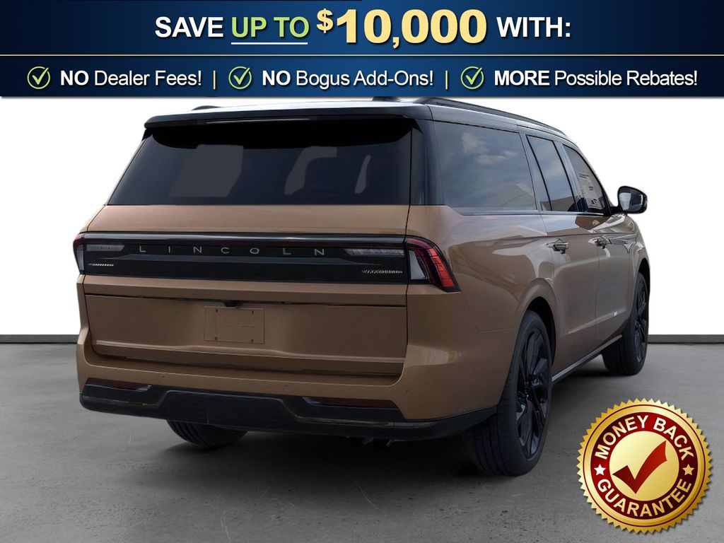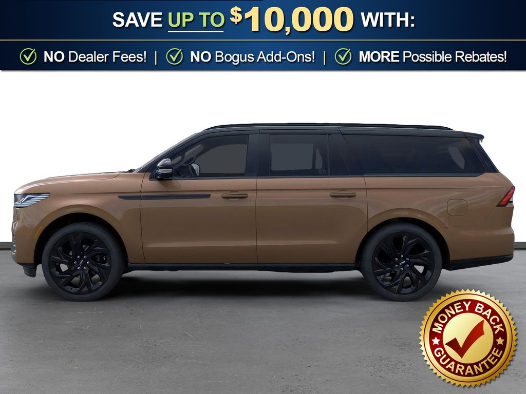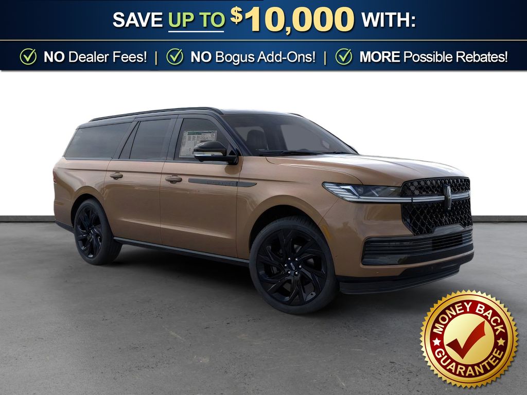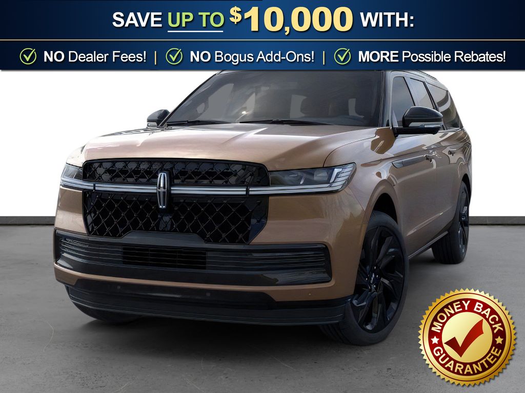 Sunrise Copper Metallic Pearlcoat 2026 Lincoln Navigator L Black Label NLT 4WD 10-Speed Automatic 3.5L V6 28 Speakers, 3rd row seats: split-bench, 4-Wheel Disc Brakes, ABS brakes, Adaptive suspension, Adjustable pedals, Air Conditioning, All-Weather Floor Liners with Front and Rear Carpet Floor Mats, Alloy wheels, AM/FM radio: SiriusXM with 360L, Apple CarPlay/Android Auto, Audio memory, Auto High-beam Headlights, Auto Start-Stop Technology, Auto tilt-away steering wheel, Auto-dimming door mirrors, Auto-dimming Rear-View mirror, Auto-leveling suspension, Automatic temperature control, Black Accent Badge, Black Beltline Molding, Black Label Special Edition Package, Black Painted Roof, Black Painted Roof Rails, BlueCruise Equipped (4-Years Included), Brake assist, Bumpers: body-color, Compass, Delay-off headlights, Driver door bin, Driver vanity mirror, Driver's Seat Mounted Armrest, Dual front impact airbags, Dual front side impact airbags, Electronic Stability Control, Emergency communication system: 911 Assist, Enlighten Theme, Exterior Parking Camera Rear, Four wheel independent suspension, Front anti-roll bar, Front Bucket Seats, Front Bumper Fascia, Front dual zone A/C, Front reading lights, Fully automatic headlights, Garage door transmitter, Head restraints memory, Heated door mirrors, Heated front seats, Heated rear seats, Heated steering wheel, HVAC memory, Illuminated entry, Leather steering wheel, Lincoln App, Lincoln Connectivity Package (4-Years Included), Lincoln Digital Experience, Lincoln Security Package, Low tire pressure warning, Memory seat, Navigation system: Connected Navigation (1-year trial), Occupant sensing airbag, Outside temperature display, Overhead airbag, Overhead console, Panic alarm, Passenger door bin, Passenger seat mounted armrest, Passenger vanity mirror, Pedal memory, Power adjustable front head restraints, Power adjustable rear head restraints, Power door mirrors, Power driver seat, Power moonroof: Panoramic Vista Roof, Power passenger seat, Power steering, Power windows, Radio data system, Radio: Revel Ultima 3D Audio System, Rain sensing wipers, Rear air conditioning, Rear anti-roll bar, Rear audio controls, Rear reading lights, Rear seat center armrest, Rear window defroster, Rear window wiper, Reclining 3rd row seat, Remote keyless entry, Security system, SiriusXM with 360L (3 Months Trial), Speed control, Speed-sensing steering, Speed-Sensitive Wipers, Split folding rear seat, Spoiler, Steering wheel memory, Steering wheel mounted audio controls, Tachometer, Telescoping steering wheel, Tilt steering wheel, Traction control, Trip computer, Turn signal indicator mirrors, Unique Lincoln Grille Pillar Black Surround, Variably intermittent wipers, Ventilated front seats, Ventilated rear seats, Wheels: 22" High-Gloss Ebony Aluminum, Wheels: 24" High-Gloss Ebony Aluminum.