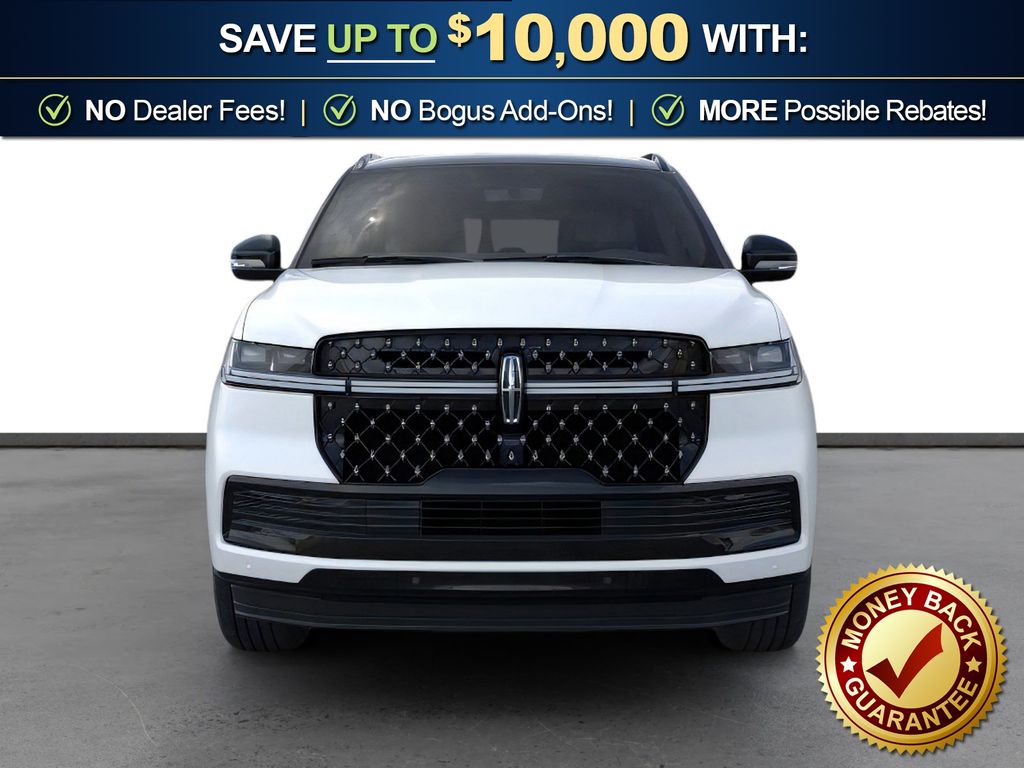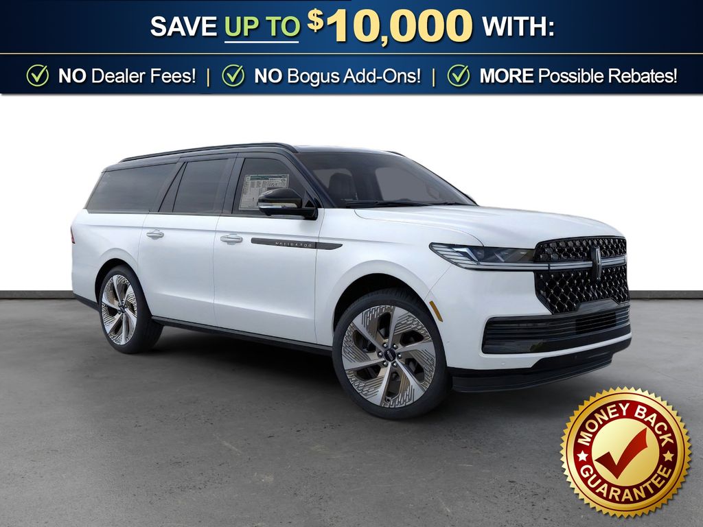 Star White Metallic Tri-Coat 2026 Lincoln Navigator L Black Label NLT 4WD 10-Speed Automatic 3.5L V6 28 Speakers, 3rd row seats: split-bench, 4-Wheel Disc Brakes, ABS brakes, Adaptive suspension, Adjustable pedals, Air Conditioning, All-Weather Floor Liners with Front and Rear Carpet Floor Mats, Alloy wheels, AM/FM radio: SiriusXM with 360L, Apple CarPlay/Android Auto, Atmospheric Theme, Audio memory, Auto Heated/Ventilated Opulence Leather Captain's Chairs, Auto High-beam Headlights, Auto Start-Stop Technology, Auto tilt-away steering wheel, Auto-dimming door mirrors, Auto-dimming Rear-View mirror, Auto-leveling suspension, Automatic temperature control, Black Beltline Molding, Black Label Special Edition, Black Painted Roof, Black Painted Roof Rails, BlueCruise Equipped (4-Years Included), Brake assist, Bumpers: body-color, Compass, Delay-off headlights, Driver door bin, Driver vanity mirror, Driver's Seat Mounted Armrest, Dual front impact airbags, Dual front side impact airbags, Electronic Stability Control, Emergency communication system: 911 Assist, Enlighten Theme, Exterior Parking Camera Rear, Four wheel independent suspension, Front anti-roll bar, Front Bucket Seats, Front dual zone A/C, Front License Plate Bracket, Front reading lights, Fully automatic headlights, Garage door transmitter, Head restraints memory, Heated door mirrors, Heated front seats, Heated rear seats, Heated steering wheel, HVAC memory, Illuminated entry, Leather steering wheel, Lincoln App, Lincoln Connectivity Package (4-Years Included), Lincoln Digital Experience, Lincoln Security Package, Low tire pressure warning, Memory seat, Navigation system: Connected Navigation (1-year trial), Occupant sensing airbag, Outside temperature display, Overhead airbag, Overhead console, Panic alarm, Passenger door bin, Passenger seat mounted armrest, Passenger vanity mirror, Pedal memory, Power adjustable front head restraints, Power adjustable rear head restraints, Power door mirrors, Power driver seat, Power moonroof: Panoramic Vista Roof, Power passenger seat, Power steering, Power windows, Radio data system, Radio: Revel Ultima 3D Audio System, Rain sensing wipers, Rear air conditioning, Rear anti-roll bar, Rear audio controls, Rear reading lights, Rear seat center armrest, Rear window defroster, Rear window wiper, Reclining 3rd row seat, Remote keyless entry, Security system, SiriusXM with 360L (3 Months Trial), Speed control, Speed-sensing steering, Speed-Sensitive Wipers, Split folding rear seat, Spoiler, Steering wheel memory, Steering wheel mounted audio controls, Tachometer, Telescoping steering wheel, Tilt steering wheel, Traction control, Trip computer, Turn signal indicator mirrors, Variably intermittent wipers, Ventilated front seats, Ventilated rear seats, Wheels: 22" High-Gloss Ebony Aluminum.