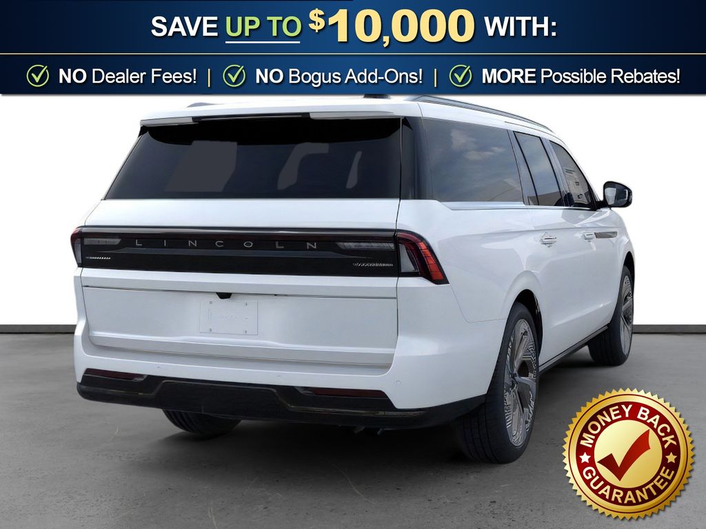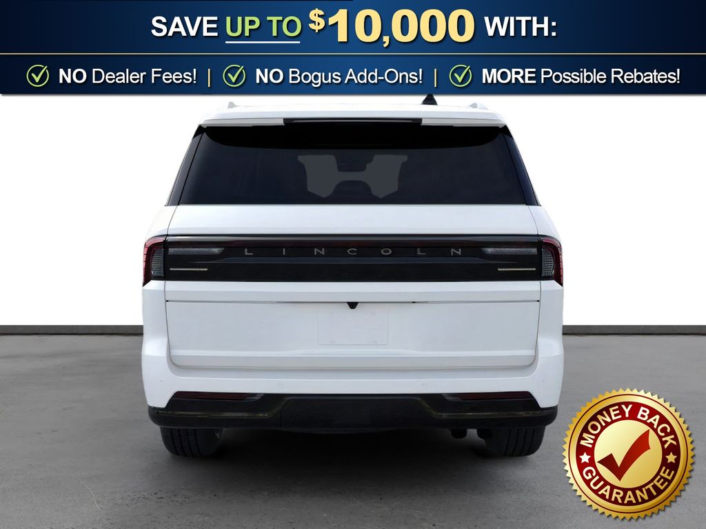 Star White Metallic Tri-Coat 2026 Lincoln Navigator L Black Label NLT 4WD 10-Speed Automatic 3.5L V6 28 Speakers, 3rd row seats: split-bench, 4-Wheel Disc Brakes, ABS brakes, Adaptive suspension, Adjustable pedals, Air Conditioning, Alloy wheels, AM/FM radio: SiriusXM with 360L, Apple CarPlay/Android Auto, Atmospheric Theme, Audio memory, Auto Heated/Ventilated Opulence Leather Captain's Chairs, Auto High-beam Headlights, Auto Start-Stop Technology, Auto tilt-away steering wheel, Auto-dimming door mirrors, Auto-dimming Rear-View mirror, Auto-leveling suspension, Automatic temperature control, BlueCruise Equipped (4-Years Included), Brake assist, Bumpers: body-color, Compass, Delay-off headlights, Driver door bin, Driver vanity mirror, Driver's Seat Mounted Armrest, Dual front impact airbags, Dual front side impact airbags, Electronic Stability Control, Emergency communication system: 911 Assist, Enlighten Theme, Exterior Parking Camera Rear, Four wheel independent suspension, Front anti-roll bar, Front Bucket Seats, Front dual zone A/C, Front reading lights, Fully automatic headlights, Garage door transmitter, Head restraints memory, Heated door mirrors, Heated front seats, Heated rear seats, Heated steering wheel, HVAC memory, Illuminated entry, Leather steering wheel, Lincoln App, Lincoln Connectivity Package (4-Years Included), Lincoln Digital Experience, Lincoln Security Package, Low tire pressure warning, Memory seat, Navigation system: Connected Navigation (1-year trial), Occupant sensing airbag, Outside temperature display, Overhead airbag, Overhead console, Panic alarm, Passenger door bin, Passenger seat mounted armrest, Passenger vanity mirror, Pedal memory, Power adjustable front head restraints, Power adjustable rear head restraints, Power door mirrors, Power driver seat, Power moonroof: Panoramic Vista Roof, Power passenger seat, Power steering, Power windows, Radio data system, Radio: Revel Ultima 3D Audio System, Rain sensing wipers, Rear air conditioning, Rear anti-roll bar, Rear audio controls, Rear reading lights, Rear seat center armrest, Rear window defroster, Rear window wiper, Reclining 3rd row seat, Remote keyless entry, Security system, SiriusXM with 360L (3 Months Trial), Speed control, Speed-sensing steering, Speed-Sensitive Wipers, Split folding rear seat, Spoiler, Steering wheel memory, Steering wheel mounted audio controls, Tachometer, Telescoping steering wheel, Tilt steering wheel, Traction control, Trip computer, Turn signal indicator mirrors, Variably intermittent wipers, Ventilated front seats, Ventilated rear seats, Wheels: 22" High-Gloss Ebony Aluminum.