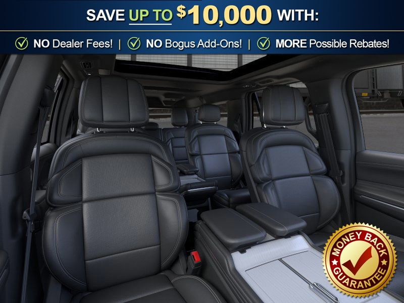 Lincoln Connectivity Package (4-Years Included), Lincoln Security Package, 28 Speakers, 3rd row seats: split-bench, 4-Wheel Disc Brakes, ABS brakes, Adaptive suspension, Air Conditioning, Alloy wheels, AM/FM radio: SiriusXM with 360L, Apple CarPlay/Android Auto, Audio memory, Auto Heated/Ventilated Premium Leather Captain's Chairs, Auto High-beam Headlights, Auto Start-Stop Technology, Auto tilt-away steering wheel, Auto-dimming door mirrors, Auto-dimming Rear-View mirror, Auto-leveling suspension, Automatic temperature control, BlueCruise Equipped (4-Years Included), Brake assist, Bumpers: body-color, Compass, Delay-off headlights, Driver door bin, Driver vanity mirror, Driver's Seat Mounted Armrest, Dual front impact airbags, Dual front side impact airbags, Electronic Stability Control, Emergency communication system: 911 Assist, Exterior Parking Camera Rear, Four wheel independent suspension, Front anti-roll bar, Front Bucket Seats, Front dual zone A/C, Front reading lights, Fully automatic headlights, Garage door transmitter, Heated door mirrors, Heated front seats, Heated rear seats, Heated steering wheel, HVAC memory, Illuminated entry, Leather steering wheel, Lincoln App, Lincoln Digital Experience, Low tire pressure warning, Memory seat, Navigation system: Connected Navigation (1-year trial), Occupant sensing airbag, Outside temperature display, Overhead airbag, Overhead console, Panic alarm, Passenger door bin, Passenger seat mounted armrest, Passenger vanity mirror, Power adjustable rear head restraints, Power door mirrors, Power driver seat, Power moonroof: Panoramic Vista Roof, Power passenger seat, Power steering, Power windows, Radio data system, Radio: Revel Ultima 3D Audio System, Rain sensing wipers, Rear air conditioning, Rear anti-roll bar, Rear audio controls, Rear reading lights, Rear window defroster, Rear window wiper, Reclining 3rd row seat, Remote keyless entry, Security system, SiriusXM with 360L (3 Months Trial), Speed control, Speed-sensing steering, Speed-Sensitive Wipers, Split folding rear seat, Spoiler, Steering wheel memory, Steering wheel mounted audio controls, Tachometer, Telescoping steering wheel, Tilt steering wheel, Traction control, Trip computer, Turn signal indicator mirrors, Variably intermittent wipers, Ventilated front seats, and Wheels: 22" Dark Tarnished Aluminum.