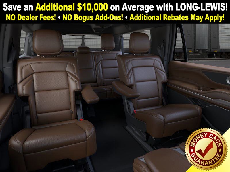Lincoln Connectivity Package (4-Years Included), Lincoln Security Package, 28 Speakers, 3rd row seats: split-bench, 4-Wheel Disc Brakes, ABS brakes, Adaptive suspension, Air Conditioning, Alloy wheels, AM/FM radio: SiriusXM with 360L, Apple CarPlay/Android Auto, Audio memory, Auto Heated/Ventilated Premium Leather Captain's Chairs, Auto High-beam Headlights, Auto Start-Stop Technology, Auto tilt-away steering wheel, Auto-dimming door mirrors, Auto-dimming Rear-View mirror, Auto-leveling suspension, Automatic temperature control, Brake assist, Bumpers: body-color, Compass, Delay-off headlights, Driver door bin, Driver vanity mirror, Driver's Seat Mounted Armrest, Dual front impact airbags, Dual front side impact airbags, Electronic Stability Control, Emergency communication system: 911 Assist, Exterior Parking Camera Rear, Four wheel independent suspension, Front anti-roll bar, Front Bucket Seats, Front dual zone A/C, Front reading lights, Fully automatic headlights, Garage door transmitter, Heated door mirrors, Heated front seats, Heated rear seats, Heated steering wheel, HVAC memory, Illuminated entry, Leather steering wheel, Lincoln Connect, Lincoln Digital Experience, Low tire pressure warning, Memory seat, Navigation system: Connected Navigation (1-year trial), Occupant sensing airbag, Outside temperature display, Overhead airbag, Overhead console, Panic alarm, Passenger door bin, Passenger seat mounted armrest, Passenger vanity mirror, Power adjustable rear head restraints, Power door mirrors, Power driver seat, Power moonroof: Panoramic Vista Roof, Power passenger seat, Power steering, Power windows, Radio data system, Radio: Revel Ultima 3D Audio System, Rain sensing wipers, Rear air conditioning, Rear anti-roll bar, Rear audio controls, Rear reading lights, Rear window defroster, Rear window wiper, Reclining 3rd row seat, Remote keyless entry, Security system, SiriusXM with 360L (3 Months Trial), Speed control, Speed-sensing steering, Speed-Sensitive Wipers, Split folding rear seat, Spoiler, Steering wheel memory, Steering wheel mounted audio controls, Tachometer, Telescoping steering wheel, Tilt steering wheel, Traction control, Trip computer, Turn signal indicator mirrors, Variably intermittent wipers, Ventilated front seats, and Wheels: 22" Dark Tarnished Aluminum.