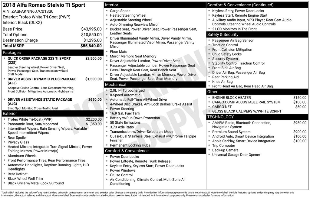 2018 Alfa Romeo Stelvio Ti AWD 8-Speed Automatic I4 Trofeo White Tri-Coat