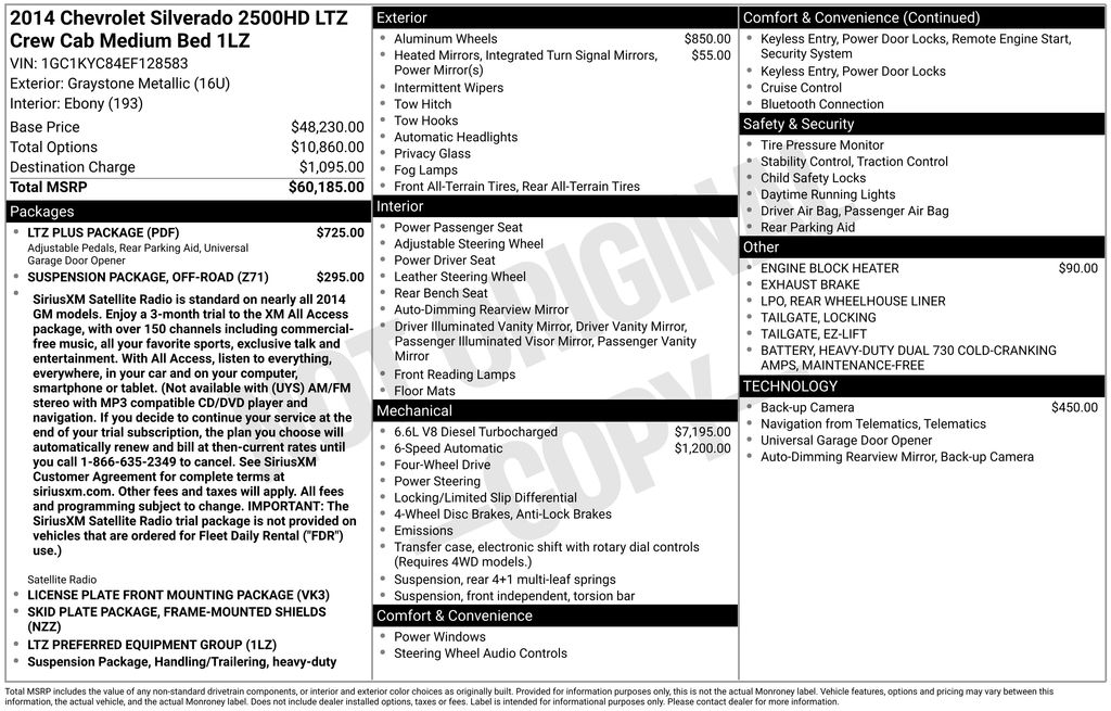 2014 Chevrolet Silverado 2500HD LTZ **Here at Long-Lewis we believe in being transparent. We have no Doc fees, or any other hidden fees. We are a one price store and give our best price up front and they are clearly marked on all our inventory.** Graystone Metallic 4WD Allison 1000 6-Speed Automatic Duramax 6.6L V8 Turbodiesel Allison 1000 6-Speed Automatic, 4WD, Ebony Leather.