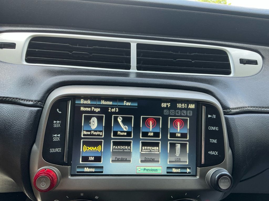 2015 Chevrolet Camaro 1LT Silver Ice Metallic 1LT RWD 6-Speed Automatic with TapShift 3.6L V6 DGI DOHC VVT 18" Painted Aluminum Wheels, 2 Front Cup Holders, 20" x 8" Front & 20" x 9" Rear Aluminum Wheels, 3-Spoke Leather-Wrapped Steering Wheel, 4-Wheel Antilock 4-Wheel Disc Brakes, 4-Wheel Disc Brakes, 6 Speakers, 6-Speaker Audio System Feature, 6-Way Power Driver Adjuster w/Power Recline, 6-Way Power Fr Passenger Adjuster w/Power Recline, ABS brakes, Air Conditioning, All-Weather Floor Mats, Alloy wheels, AM/FM radio: SiriusXM, Analog Instrumentation, Black Molded Splash Guards (LPO), Body-Color Roof Ditch Molding, Brake assist, Bumpers: body-color, Carpeted Front Floor Mats, Compass, Delay-off headlights, Driver door bin, Driver vanity mirror, Dual front impact airbags, Dual front side impact airbags, Electric Rear-Window Defogger, Electronic Cruise Control, Electronic Stability Control, Emergency communication system: OnStar Directions & Connections, Four wheel independent suspension, Front anti-roll bar, Front Bucket Seats, Front Center Armrest, Front fog lights, Front License Plate Bracket, Front reading lights, Front Sport Bucket Seats, Fully automatic headlights, High-Intensity Discharge Headlamps, Illuminated entry, LATCH System, Leather Shift Knob, Leather-Wrapped Shift Knob, Low tire pressure warning, Maintenance-Free Battery, Manual Rake & Telescopic Steering Column, Occupant sensing airbag, OnStar 6 Months Directions & Connections Plan, Outside temperature display, Overhead airbag, Panic alarm, Passenger door bin, Passenger vanity mirror, Power door mirrors, Power driver seat, Power passenger seat, Power Programmable Door Locks, Power steering, Power Sunroof w/Express-Open & Venting, Power windows, Preferred Equipment Group 1LT, Premium audio system: Chevrolet MyLink, Radio data system, Radio: AM/FM Stereo w/Color Touch, Rear anti-roll bar, Rear Spoiler, Rear Vision Camera, Rear Vision Package, Rear window defroster, Remote Keyless Entry, Remote keyless entry, Remote Vehicle Starter System, RS Package, Security system, Separate Daytime Running Lamps, SiriusXM Satellite Radio, Speed control, Speed-sensing steering, Sport Cloth Seat Trim, StabiliTrak, Stainless-Steel Dual-Outlet Exhaust, Steering Wheel Mounted Audio Controls, Steering wheel mounted audio controls, Tachometer, Telescoping steering wheel, Tilt steering wheel, Tire Sealant & Inflator Kit, Traction control, Trip computer, Ultrasonic Rear Park Assist, USB Port Audio System Feature, Variably intermittent wipers.