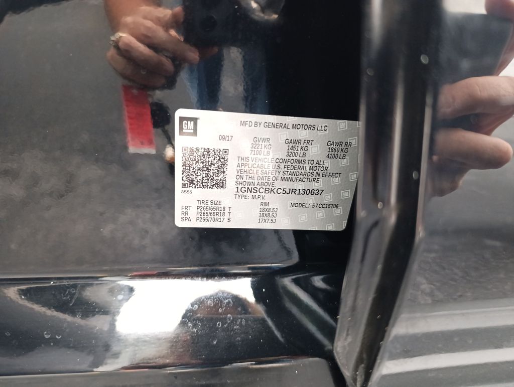Recent Arrival! Jet Black/Dark Ash Leather, 18" x 8.5" Aluminum Wheels, 1st & 2nd Row Color-Keyed Carpeted Floor Mats, 2nd Row 60/40 Split-Folding Manual Bench, 3.08 Rear Axle Ratio, 3rd Row Manual 60/40 Split-Folding Fold Flat Bench, 3rd row seats: split-bench, 4-Wheel Antilock Disc Brakes w/Brake Assist, 4-Wheel Disc Brakes, 5 12-Volt Auxiliary Power Outlets, 9 Speakers, ABS brakes, Adjustable pedals, Air Conditioning, Alloy wheels, AM/FM radio: SiriusXM, Apple CarPlay/Android Auto, Auto High-beam Headlights, Auto-Dimming Inside Rear-View Mirror, Auto-dimming Rear-View mirror, Automatic temperature control, Black Assist Steps, Bluetooth® For Phone, Bose Premium 9-Speaker System, Brake assist, Bumpers: body-color, Cargo Net, CD player, Color-Keyed Carpeting Floor Covering, Compass, Delay-off headlights, Driver door bin, Driver Inboard & Front Passenger Airbags, Driver vanity mirror, Dual front impact airbags, Dual front side impact airbags, Electronic Cruise Control w/Set & Resume Speed, Electronic Stability Control, Emergency communication system: OnStar Guidance, Enhanced Driver Alert Package (Y86), Extended-Range Remote Keyless Entry, Exterior Parking Camera Rear, Floor Console, Forward Collision Alert, Front anti-roll bar, Front Bucket Seats, Front Center Armrest, Front dual zone A/C, Front Heated Reclining Bucket Seats, Front Passenger 6-Way Power Seat Adjuster, Front reading lights, Front wheel independent suspension, Fully automatic headlights, Garage door transmitter, HD Radio, Heated door mirrors, Heated front seats, Illuminated entry, IntelliBeam Headlamps, Lane Keep Assist w/Lane Departure Warning, Leather-Appointed Seat Trim, Leather-Wrapped Steering Wheel, Low Speed Forward Automatic Braking, Low tire pressure warning, Memory seat, Memory Settings, Occupant sensing airbag, OnStar Basic Plan For 5 Years, Outside temperature display, Overhead airbag, Overhead console, Panic alarm, Passenger door bin, Passenger vanity mirror, Pedal memory, Power door mirrors, Power driver seat, Power Liftgate, Power passenger seat, Power steering, Power windows, Power-Adjustable Accelerator & Brake Pedals, Preferred Equipment Group 1LT, Premium audio system: Chevrolet MyLink, Premium Smooth Ride Suspension Package, Radio: Chevrolet MyLink AM/FM Stereo, Radio: Chevrolet MyLink w/Nav/AM/FM Stereo, Rain sensing wipers, Rear air conditioning, Rear anti-roll bar, Rear Park Assist w/Audible Warning, Rear reading lights, Rear seat center armrest, Rear window defroster, Rear window wiper, Remote keyless entry, Remote Vehicle Start, Roof rack: rails only, Roof-Mounted Luggage Rack Side Rails, Security system, Single-Slot CD/MP3 Player, SiriusXM NavTraffic, SiriusXM Satellite Radio, Speed control, Speed-sensing steering, Split folding rear seat, Spoiler, Steering wheel mounted audio controls, Tachometer, Telescoping steering wheel, Tilt steering wheel, Traction control, Trip computer, Universal Home Remote, Variably intermittent wipers, Voltmeter, Jet Black/Dark Ash Leather.