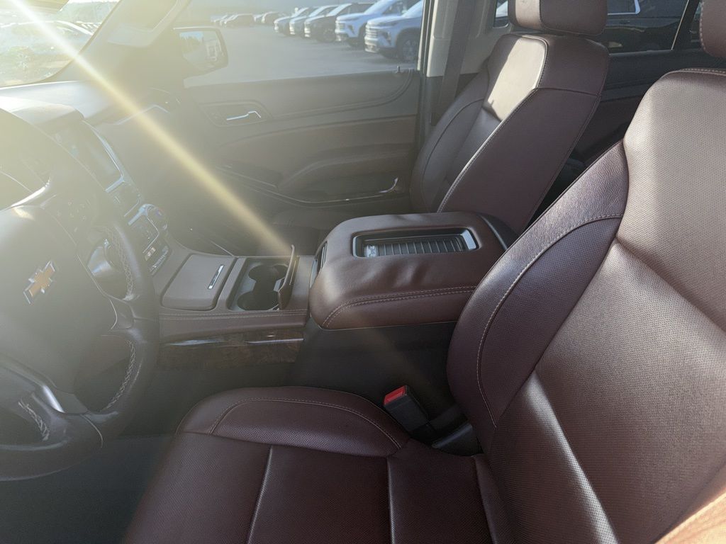 Cocoa/Mahogany Leather, 10 Speakers, 1st & 2nd Row Color-Keyed Carpeted Floor Mats, 3rd Row 60/40 Power Fold Split-Bench, 3rd row seats: split-bench, 4-Wheel Antilock Disc Brakes w/Brake Assist, 4-Wheel Disc Brakes, 5 12-Volt Auxiliary Power Outlets, ABS brakes, Adaptive suspension, Adjustable pedals, Air Conditioning, Alloy wheels, AM/FM radio: SiriusXM, Apple CarPlay/Android Auto, Auto High-beam Headlights, Auto-dimming door mirrors, Auto-Dimming Inside Rear-View Mirror, Auto-dimming Rear-View mirror, Automatic temperature control, Black Assist Steps w/Chrome Accent Strip, Bluetooth® For Phone, Bodyside moldings, Bose Centerpoint Premium 10-Speaker Surround Sound, Brake assist, Bumpers: body-color, Cargo Net, CD player, Color-Keyed Carpeting Floor Covering, Compass, Delay-off headlights, Driver door bin, Driver Inboard & Front Passenger Airbags, Driver vanity mirror, Dual front impact airbags, Dual front side impact airbags, Electronic Cruise Control w/Set & Resume Speed, Electronic Stability Control, Emergency communication system: OnStar Guidance, Enhanced Driver Alert Package (Y86), Enhanced Driver Information Center, Exterior Parking Camera Rear, Floor Console, Fog Lamps, Forward Collision Alert, Front & Rear Park Assist, Front anti-roll bar, Front Bucket Seats, Front Center Armrest, Front dual zone A/C, Front fog lights, Front Heated Reclining Bucket Seats, Front Passenger 6-Way Power Seat Adjuster, Front reading lights, Front wheel independent suspension, Fully automatic headlights, Garage door transmitter, Hands Free Power Liftgate, HD Radio, Head-Up Display, Heated & Ventilated Driver & Front Passenger Seats, Heated 2nd Row Seats, Heated door mirrors, Heated front seats, Heated Leather Wrapped Steering Wheel, Heated rear seats, Heated steering wheel, High-Intensity Discharge Headlights, Illuminated entry, Integrated Trailer Brake Controller, IntelliBeam Headlamps, Lane Change Alert w/Side Blind Zone Alert, Lane Keep Assist w/Lane Departure Warning, Low Speed Forward Automatic Braking, Low tire pressure warning, Magnetic Ride Control Suspension Package, Max Trailering Package, Memory seat, Memory Settings, Navigation System, Occupant sensing airbag, OnStar Basic Plan For 5 Years, Outside temperature display, Overhead airbag, Overhead console, Panic alarm, Passenger door bin, Passenger vanity mirror, Passive Entry System, Pedal memory, Perforated Leather-Appointed Seat Trim, Power door mirrors, Power driver seat, Power Liftgate, Power passenger seat, Power Release 2nd Row Bucket Seats, Power steering, Power Tilt & Telescopic Steering Column, Power windows, Power-Adjustable Accelerator & Brake Pedals, Power-Folding Heated Outside Mirrors, Preferred Equipment Group 1LZ, Premium audio system: Chevrolet MyLink, Push Button Keyless Start, Radio: Chevrolet MyLink w/Nav/AM/FM Stereo, Rain sensing wipers, Rear air conditioning, Rear anti-roll bar, Rear Cross-Traffic Alert, Rear reading lights, Rear window defroster, Rear window wiper, Remote Keyless Entry, Remote keyless entry, Remote Vehicle Start, Roof rack: rails only, Roof-Mounted Luggage Rack Side Rails, Security system, Single-Slot CD/MP3 Player, SiriusXM NavTraffic, SiriusXM Satellite Radio, Speed control, Speed-sensing steering, Split folding rear seat, Spoiler, Steering wheel memory, Steering wheel mounted audio controls, Tachometer, Telescoping steering wheel, Tilt steering wheel, Traction control, Trip computer, Turn signal indicator mirrors, Universal Home Remote, Variably intermittent wipers, Ventilated front seats, Voltmeter, Wheels: 20" x 9" Polished-Aluminum, Wireless Charging, Cocoa/Mahogany Leather.