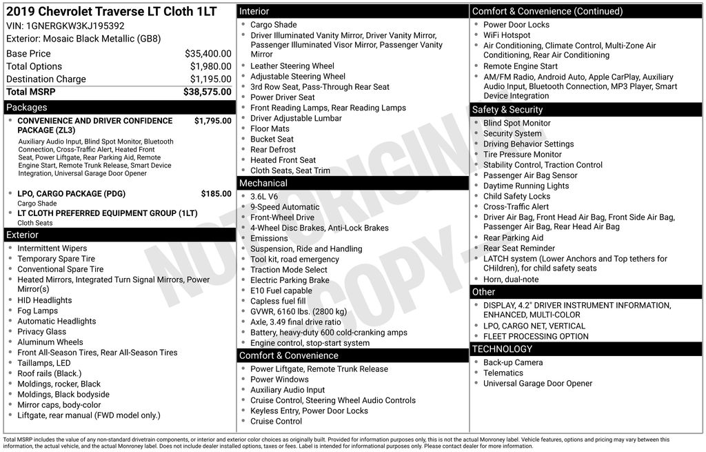 2019 Chevrolet Traverse LT SUV V6 SIDI VVT