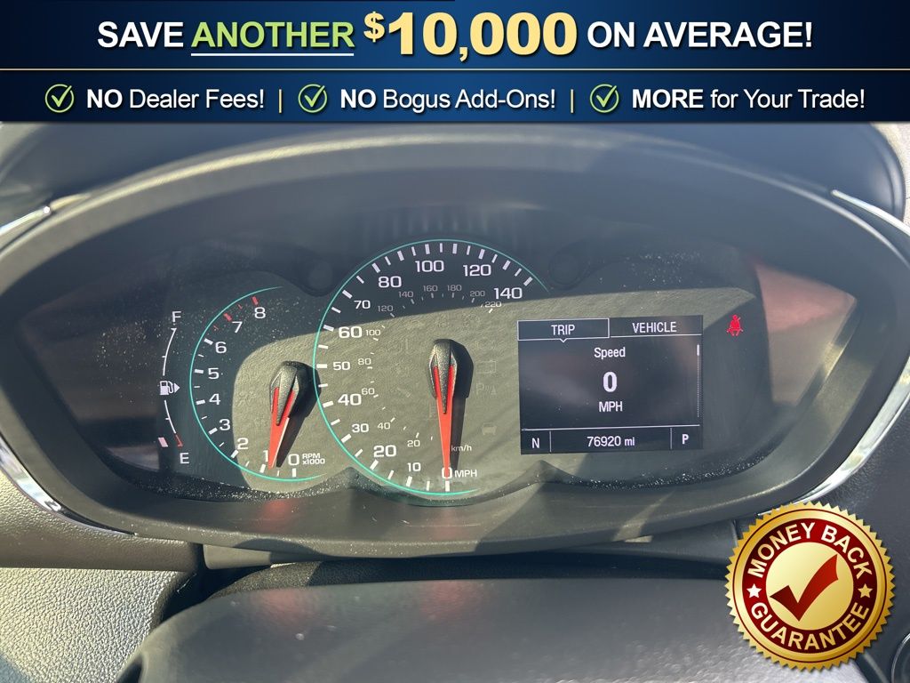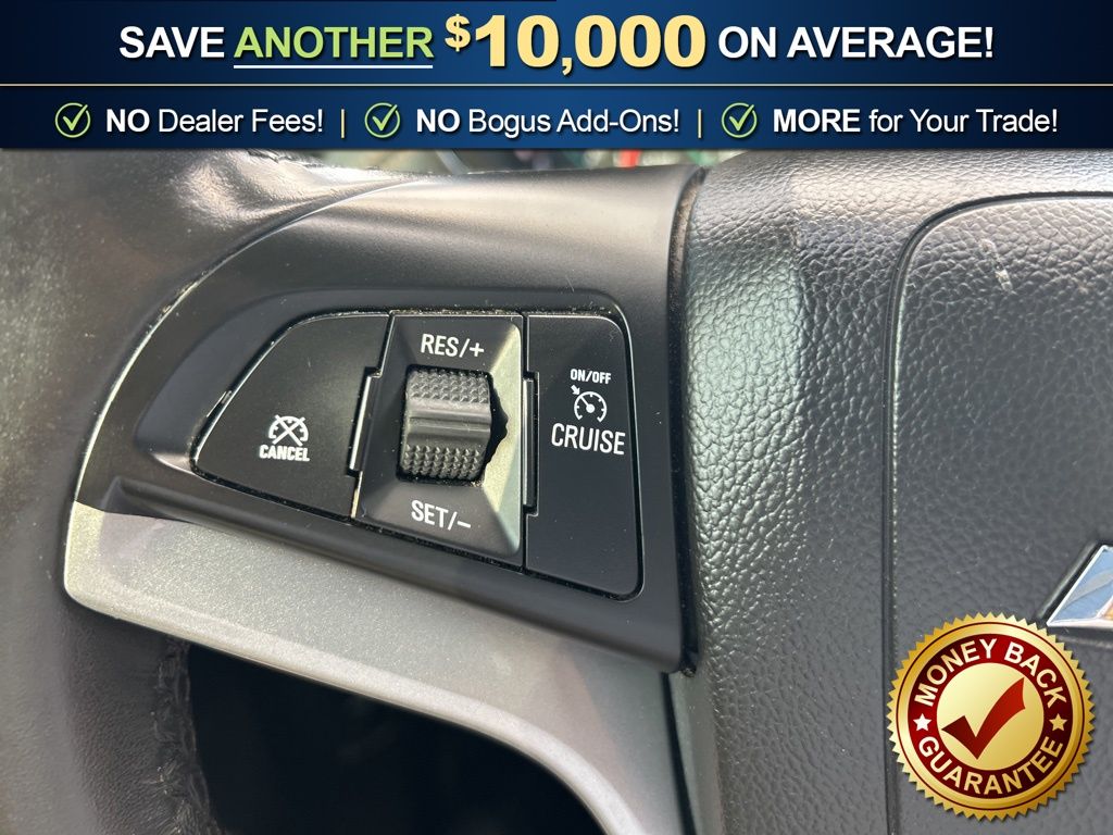 16" Aluminum Wheels, 2 Spare Keys Key System, 2 USB Ports w/Auxiliary Input Jack, 2-Way Manual Front Passenger Seat Adjuster, 3-Spoke Leather-Wrapped Steering Wheel, 3.53 Final Drive Axle Ratio, 4-Way Manual Driver Seat Adjuster, 6 Speakers, 6-Speaker Audio System Feature, 6-Way Power Driver Seat Adjuster, ABS brakes, Air Conditioning, Alloy wheels, AM/FM radio: SiriusXM, Apple CarPlay/Android Auto, Body-Color Door Handles w/Chrome Accent, Brake assist, Bumpers: body-color, Compass, Delay-off headlights, Deluxe Cloth Seat Trim, Deluxe Cloth/Leatherette Seat Trim, Driver door bin, Driver vanity mirror, Driver's Seat Mounted Armrest, Dual front impact airbags, Dual front side impact airbags, Electronic Stability Control, Emergency communication system: OnStar and Chevrolet connected services capable, Exterior Parking Camera Rear, Front anti-roll bar, Front Bucket Seats, Front Bucket Seats w/Driver Power Lumbar, Front License Plate Bracket, Front reading lights, Front wheel independent suspension, Fully automatic headlights, Heated door mirrors, Illuminated entry, Keyless Open w/Panic Alarm, Keyless Start, Knee airbag, Low tire pressure warning, LT Convenience Package, Occupant sensing airbag, Outside temperature display, Overhead airbag, Panic alarm, Passenger door bin, Passenger vanity mirror, Power door mirrors, Power steering, Power windows, Preferred Equipment Group 1LT, Premium audio system: Chevrolet MyLink, Radio data system, Radio: Chevrolet Infotainment 3 System, Rear seat center armrest, Rear side impact airbag, Rear window defroster, Rear window wiper, Remote keyless entry, Roof rack: rails only, Security system, SiriusXM Radio, Speed control, Speed-sensing steering, Split folding rear seat, Spoiler, Steering wheel mounted audio controls, Tachometer, Telescoping steering wheel, Tilt steering wheel, Traction control, Trip computer, Variably intermittent wipers.