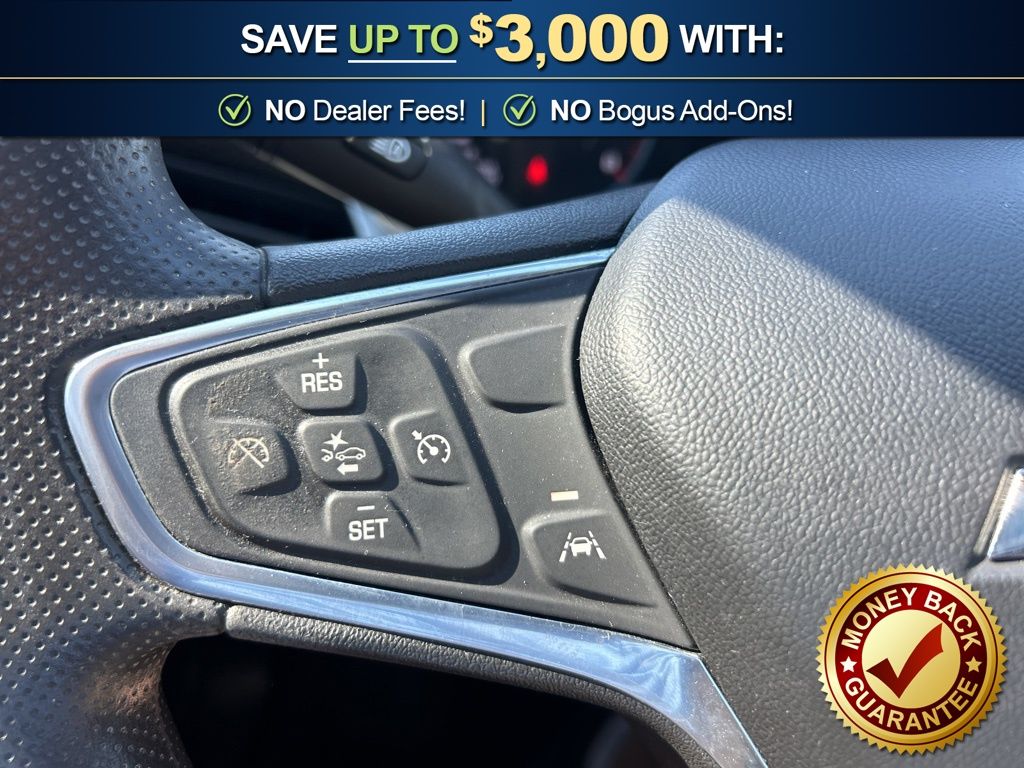 Jet Black Cloth, 16" Aluminum Wheels, 4-Wheel Disc Brakes, 6 Speakers, 6-Speaker Audio System Feature, 6-Way Manual Driver Seat Adjuster, 6-Way Manual Front Passenger Seat Adjuster, 8-Way Power Driver Seat Adjuster, ABS brakes, Air Conditioning, Alloy wheels, AM/FM radio, Automatic Emergency Braking, Brake assist, Bumpers: body-color, Compass, Delay-off headlights, Driver Confidence Package, Driver Confidence Package II, Driver door bin, Driver vanity mirror, Dual front impact airbags, Dual front side impact airbags, Electronic Stability Control, Emergency communication system: OnStar and Chevrolet connected services capable, Exterior Parking Camera Rear, Following Distance Indicator, Forward Collision Alert, Four wheel independent suspension, Front anti-roll bar, Front Bucket Seats, Front Center Armrest, Front License Plate Bracket, Front Pedestrian Braking, Front reading lights, Fully automatic headlights, Illuminated entry, IntelliBeam Automatic High-Beam On/Off, Knee airbag, Lane Change Alert w/Side Blind Zone Alert, Lane Keep Assist w/Lane Departure Warning, Low tire pressure warning, Occupant sensing airbag, Outside Power-Adjustable Body-Color Mirrors, Outside temperature display, Overhead airbag, Overhead console, Panic alarm, Passenger door bin, Passenger vanity mirror, Power door mirrors, Power Driver Lumbar Control Seat Adjuster, Power steering, Power windows, Preferred Equipment Group 1FL, Premium audio system: Chevrolet Infotainment 3, Premium Cloth Seat Trim, Radio data system, Radio: Chevrolet Infotainment 3 System, Rear anti-roll bar, Rear Cross Traffic Alert, Rear Park Assist, Rear side impact airbag, Rear window defroster, Remote keyless entry, Security system, Speed control, Split folding rear seat, Steering wheel mounted audio controls, Tachometer, Telescoping steering wheel, Tilt steering wheel, Traction control, Trip computer, Variably intermittent wipers, Voltmeter, Wireless Apple CarPlay/Android Auto, Wireless Apple CarPlay/Wireless Android Auto, Jet Black Cloth.